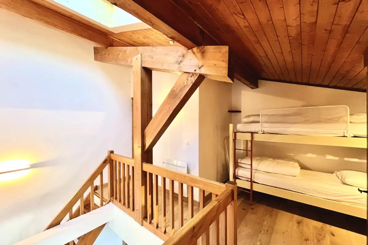 Tout confort, il comprend des coins montagnes avec deux lits superposés, une chambre avec un lit double, et une autre chambre avec deux lits simples collés ensemble.