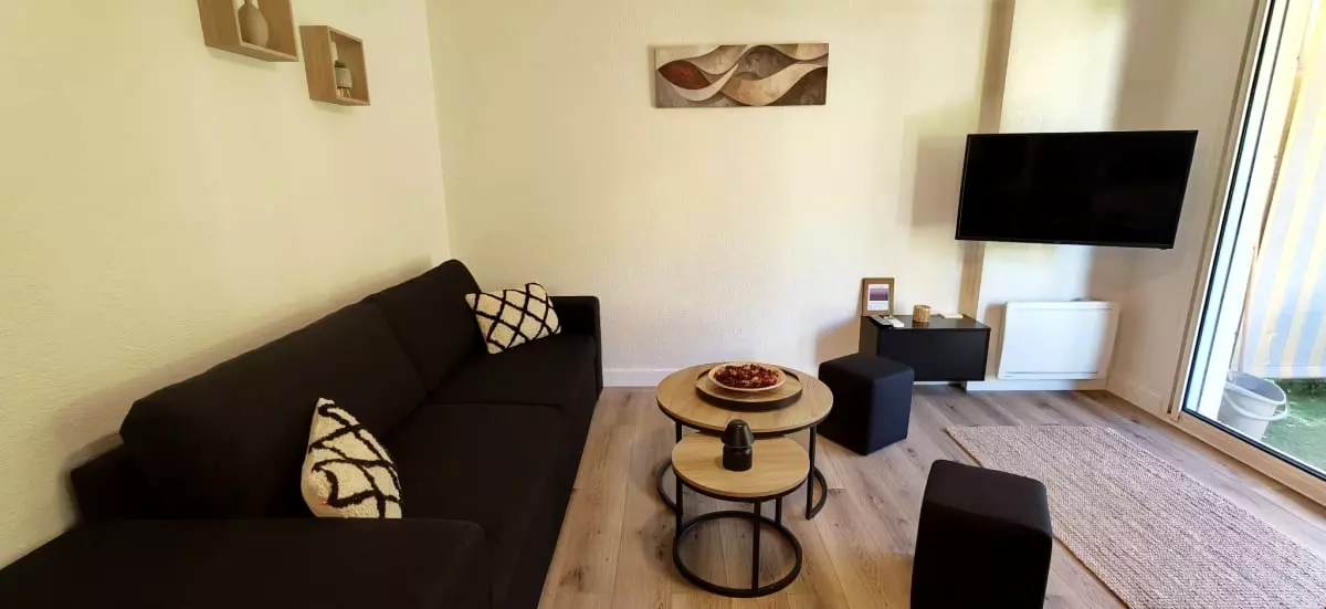 - un salon avec un canapé convertible (140 cm) offrant un couchage pour 2 personnes, idéal pour vous détendre après une journée de balade.