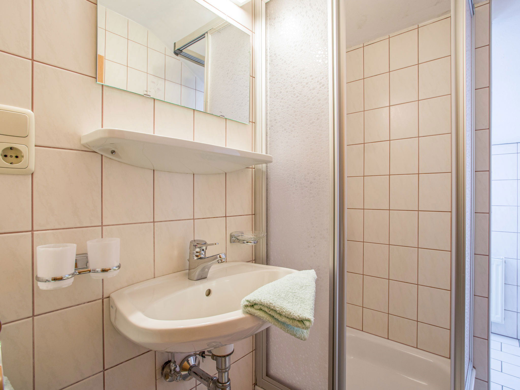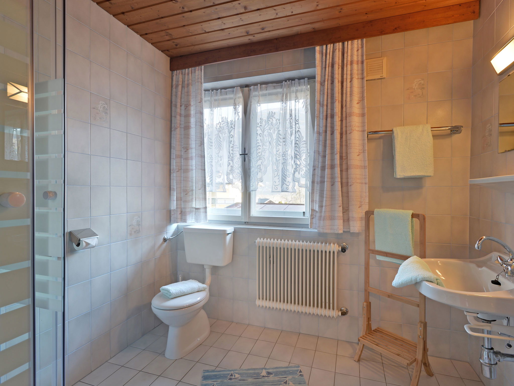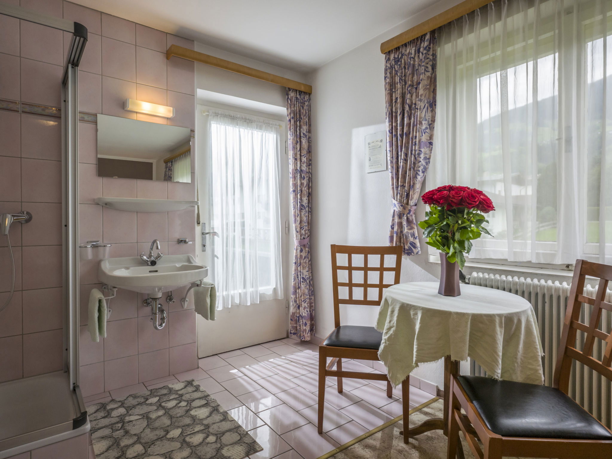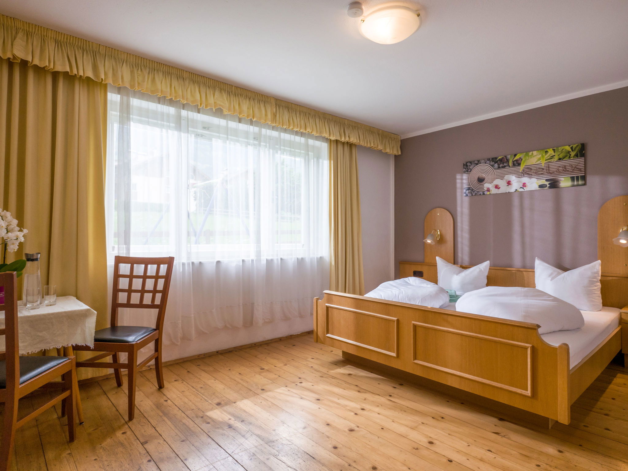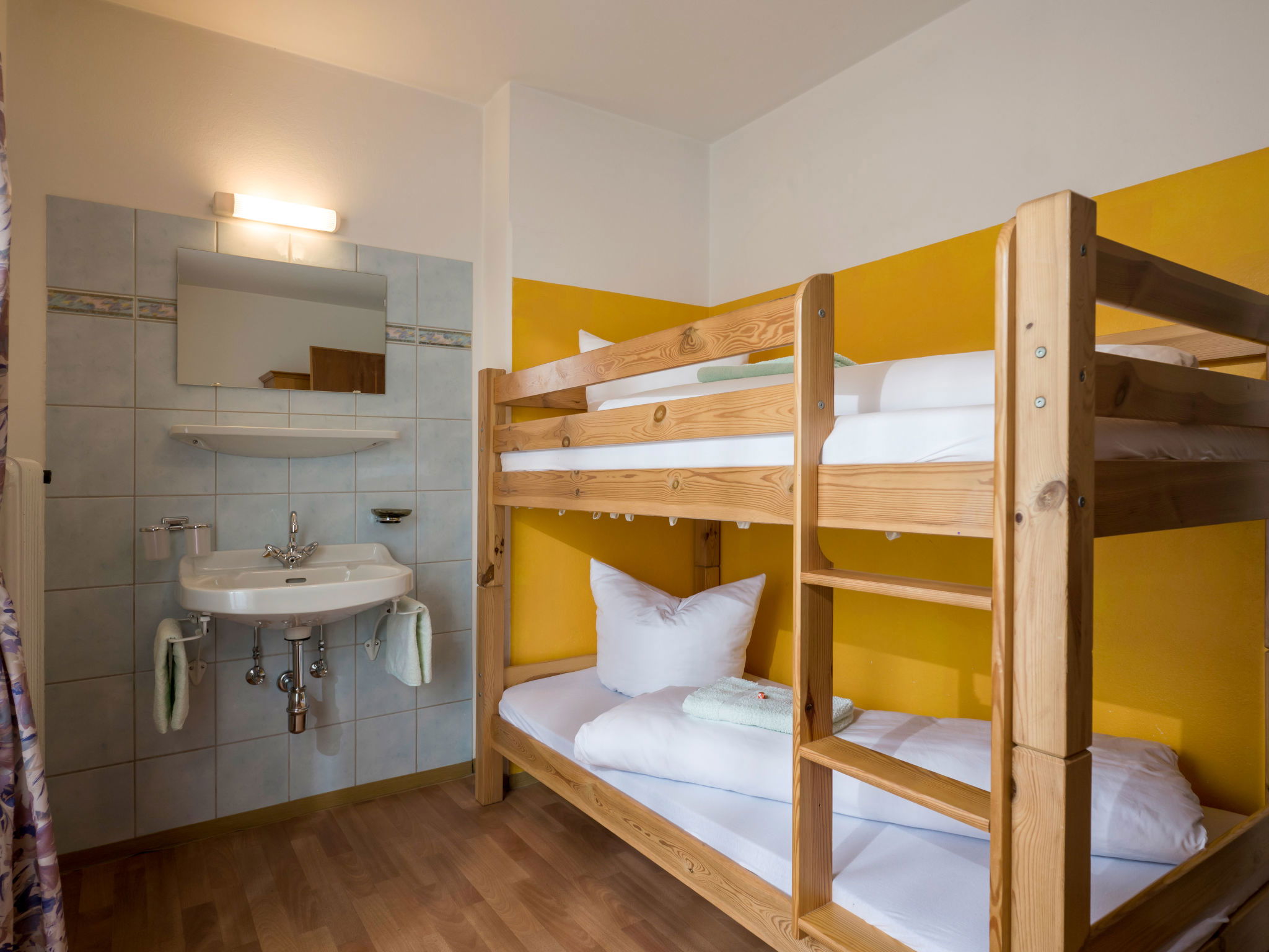 "Apart Anneliese", maison 10 pièces 270 m2 sur 3 niveaux. Aménagement fonctionnel et confortable: 1 chambre double avec lavabo et douche/WC. 1 chambre avec 1 x 2 lits superposés, 1 lit double et lavabo. Douche/WC, WC séparé. À l'étage inférieur: 1 chambre double avec lavabo et douche. Sortie sur le balcon. 1 chambre double avec lavabo et douche. Sortie sur le balcon. 1 chambre double avec lavabo et douche/WC. Sortie sur le balcon. 1 chambre avec 1 x 2 lits superposés, lavabo. Sortie sur le balcon. Grande cuisine ouverte (4 plaques de cuisson, four, bouilloire électrique, micro-ondes, cafetière électrique) avec table pour les repas, TV (satellite) (écran plat), chauffage électrique. WC séparé. À l'étage supérieur: 1 chambre double avec lavabo. 1 chambre avec 1 x 2 lits superposés, 1 lit double et lavabo. 1 chambre double. Douche, WC séparé. Maximum 3 animaux/ chiens autorisés. Service petits pains possible. En hiver petit déjeuner buffet sur demande, 12€ par personne.