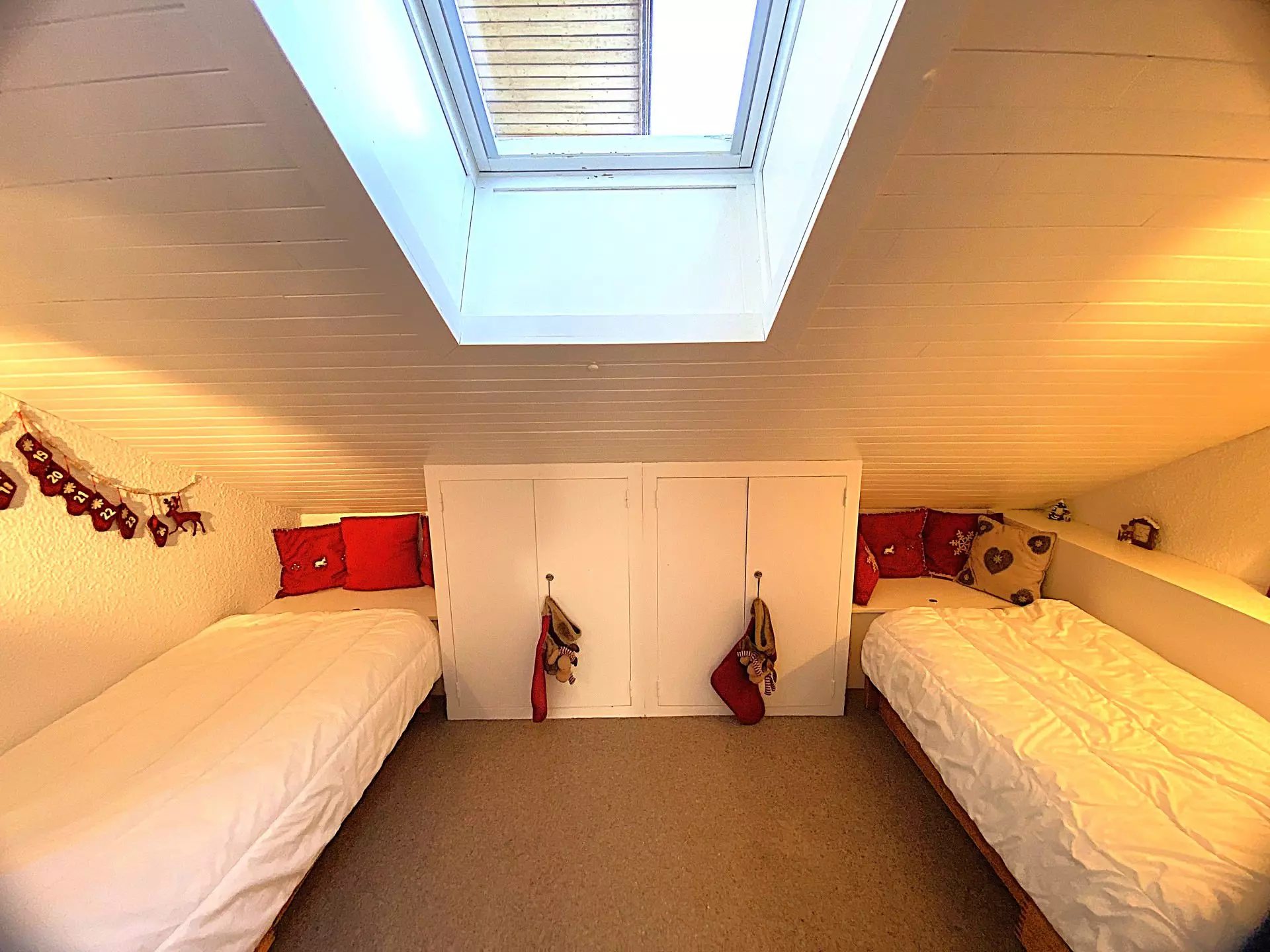 Une 2ème chambre en sous pente avec 2 lits simples.