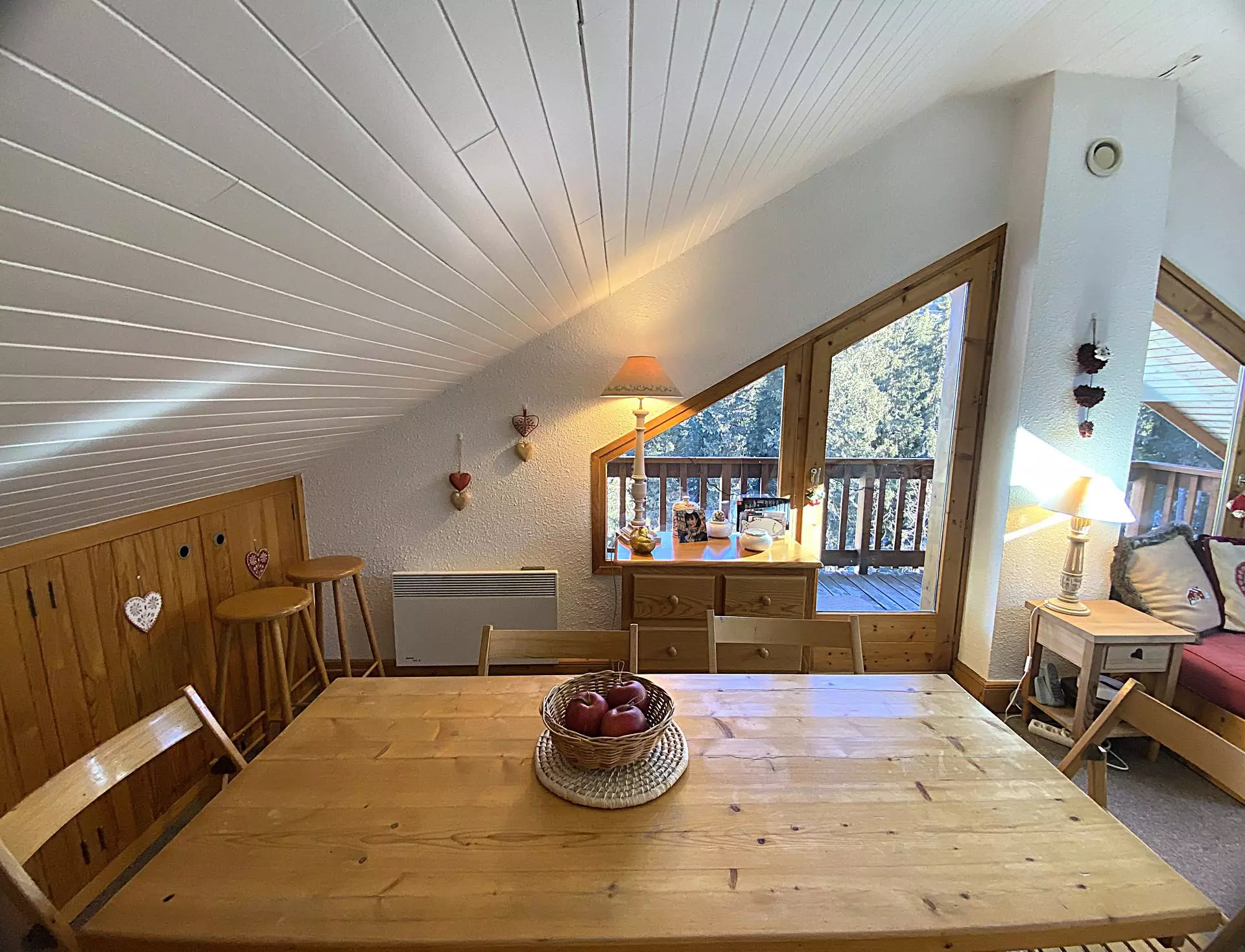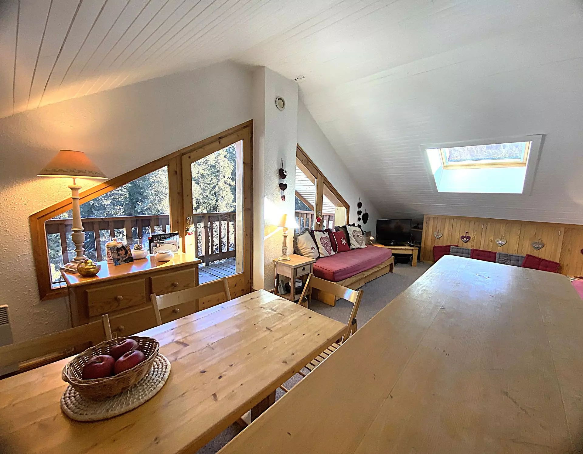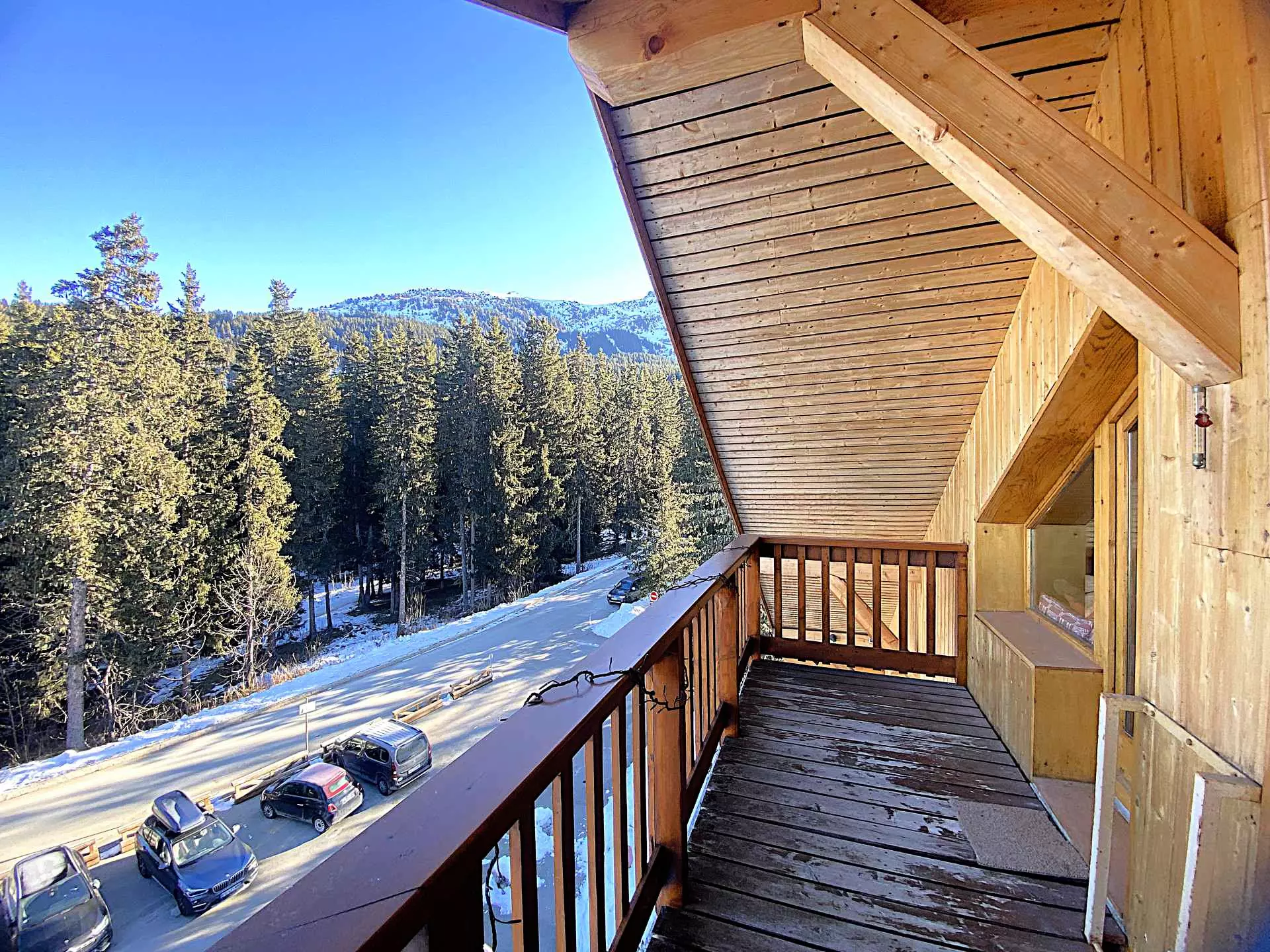 Pour vos vacances au ski ou vos vacances d'été à Méribel dans le quartier de l'Altiport qui bénéficiez d'un cadre de rêve au pied des pistes et au départ du golf, réservez ce chaleureux 3 pièces avec un balcon exposé Nord avec une vue sur la forêt et le parking.
