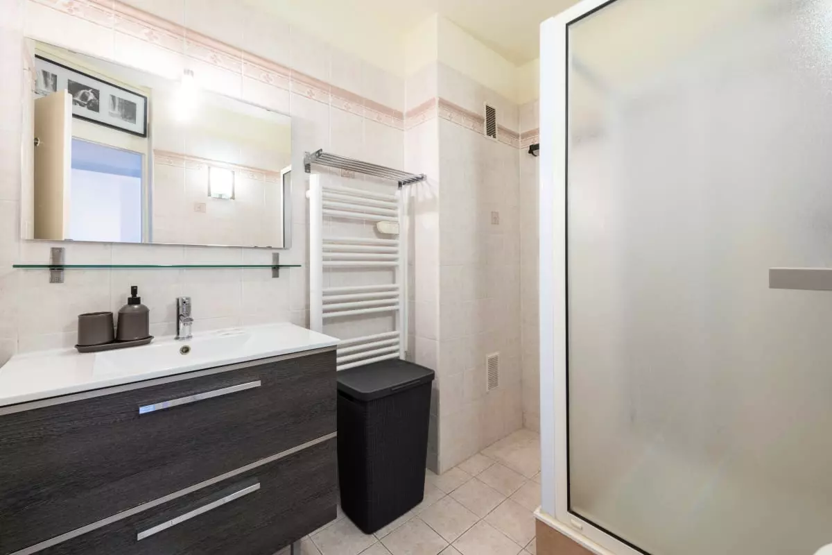 Une salle de douche avec WC complète l’appartement.