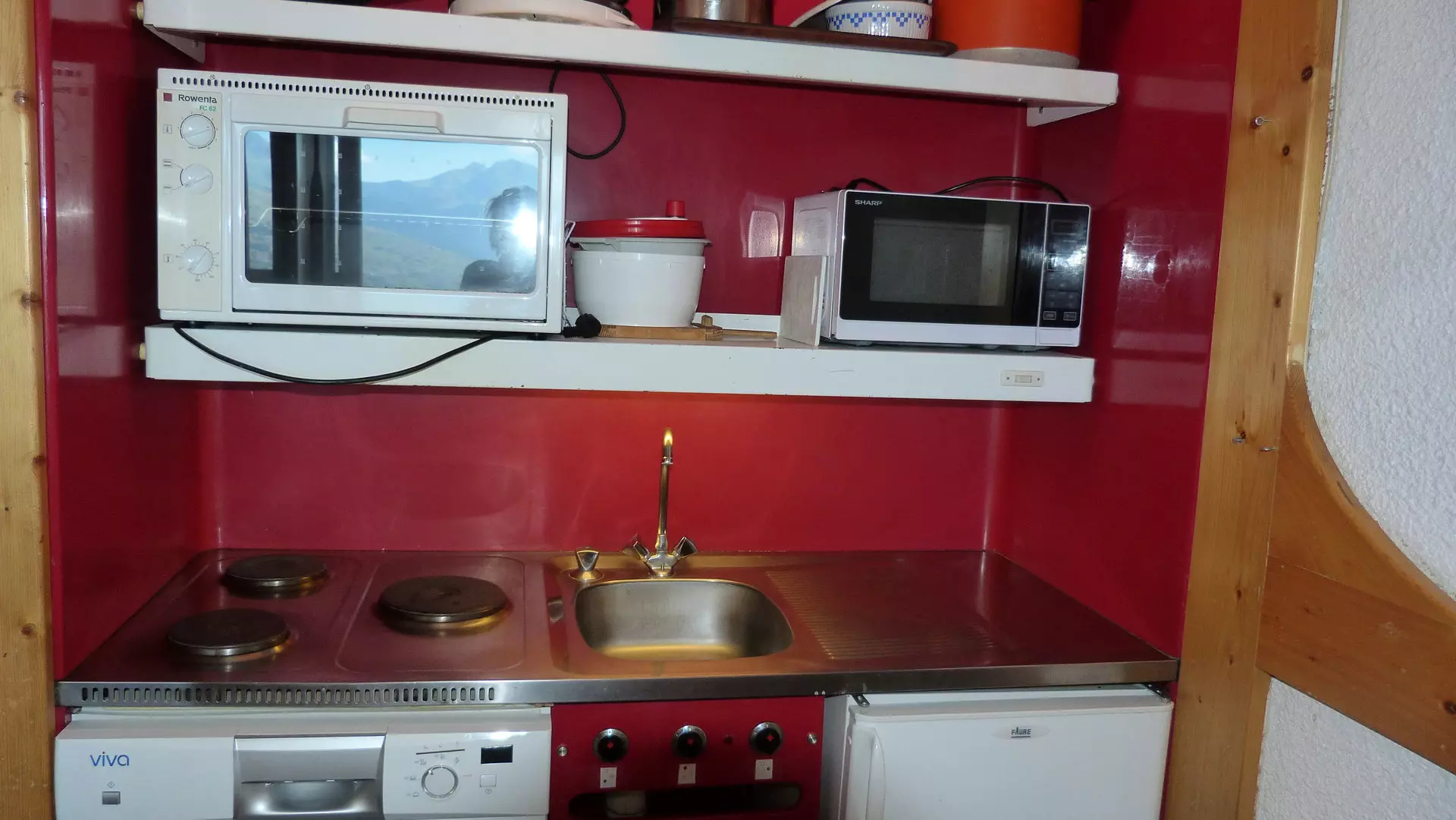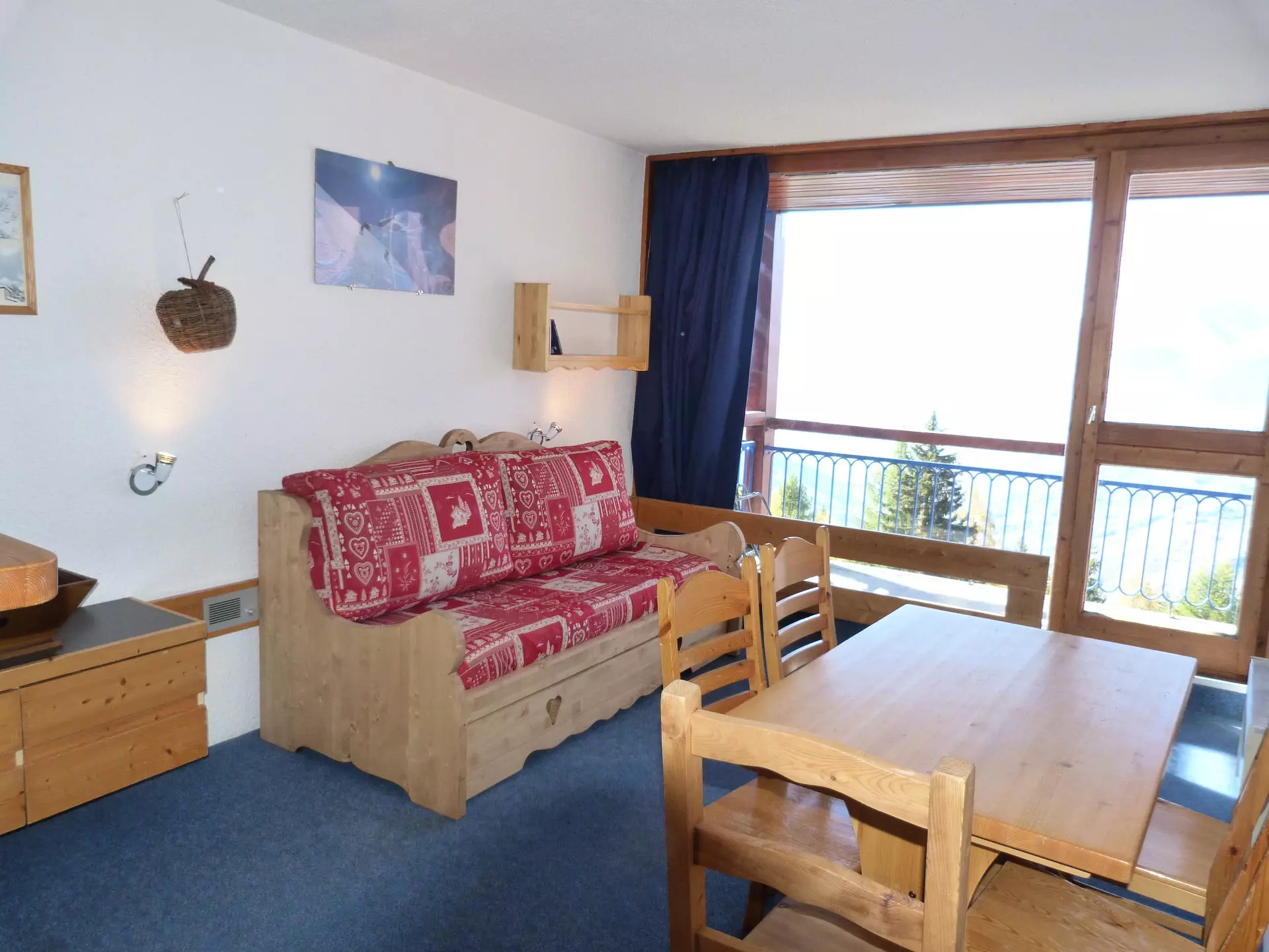 Pour vos vacances au ski ou vos vacances d'été aux Arcs 1800, réservez ce 2 pièces qui bénéficie d'un balcon exposé Sud-Ouest avec une vue sur les montagnes et la vallée.