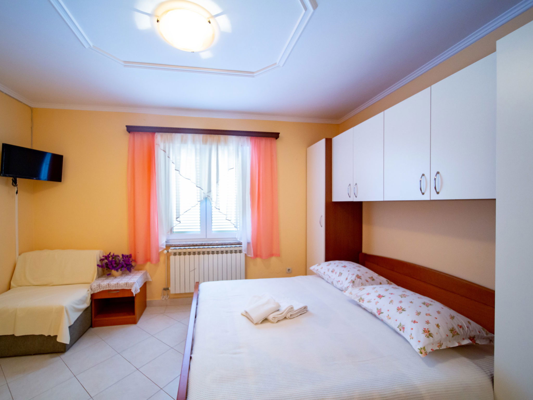 Immeuble "Kastell". À 300 m du centre de Lopar, à 13 km du centre de Rab, à 350 m de la mer, à 350 m de la plage. En commun: terrain 750 m2, jardin 40 m2 fleurs et arbres. Terrasse (30 m2), meubles de jardin, barbecue, espace de jeux pour les enfants (toboggan, balançoire). Infrastructures de la Maison: accès internet, lave-linge (en sus), sèche-linge (en commun, en sus). Petit-déjeuner sur demande (en sus). Place de parking près de la maison sur le terrain. Magasins 350 m, supermarché 250 m, restaurant 100 m, café, arrêt de bus 150 m, ferry 1.5 km, plage de sable 350 m. Veuillez noter: place d'amarrage privée (en sus) sur demande.