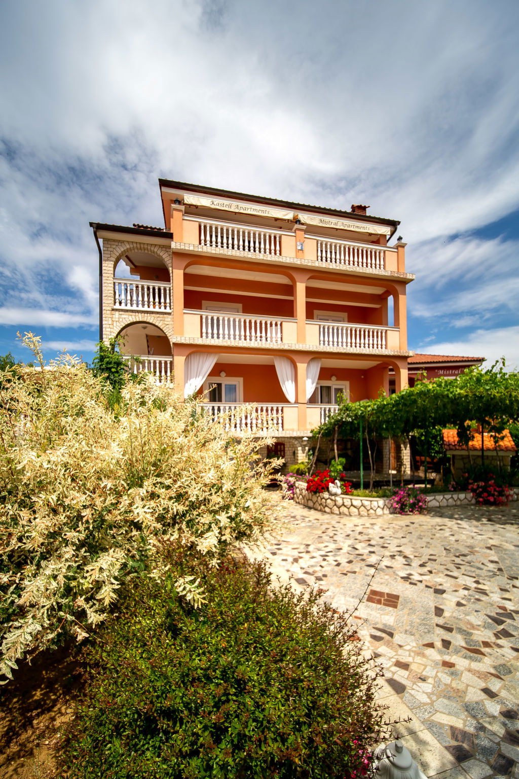 Immeuble "Kastell". À 300 m du centre de Lopar, à 13 km du centre de Rab, à 350 m de la mer, à 350 m de la plage. En commun: terrain 750 m2, jardin 40 m2 fleurs et arbres. Terrasse (30 m2), meubles de jardin, barbecue, espace de jeux pour les enfants (toboggan, balançoire). Infrastructures de la Maison: accès internet, lave-linge (en sus), sèche-linge (en commun, en sus). Petit-déjeuner sur demande (en sus). Place de parking près de la maison sur le terrain. Magasins 350 m, supermarché 250 m, restaurant 100 m, café, arrêt de bus 150 m, ferry 1.5 km, plage de sable 350 m. Veuillez noter: place d'amarrage privée (en sus) sur demande.