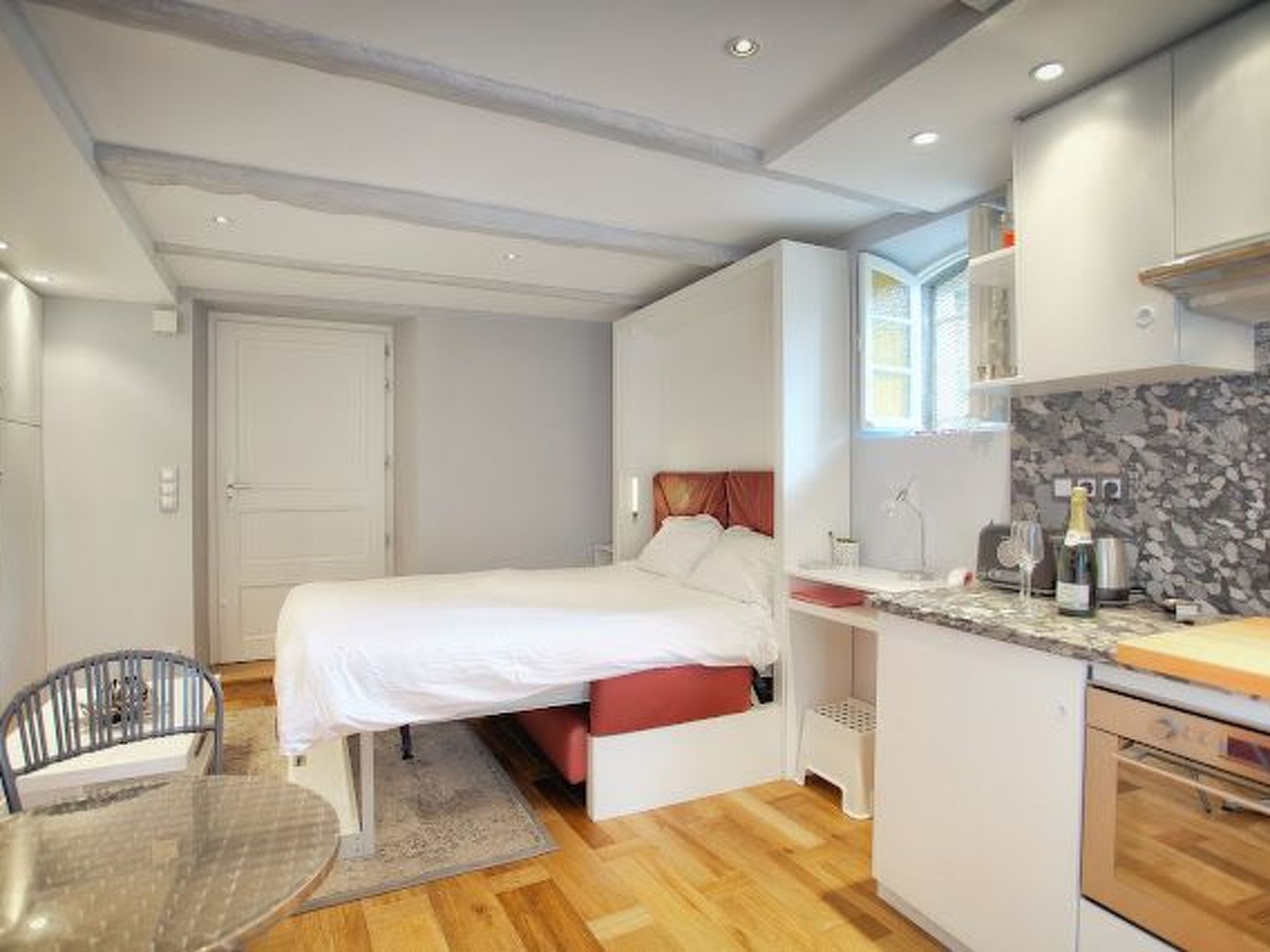 Le studio aux prestations haut de gamme vous offre tout le confort que vous êtes en droit d'attendre pour un séjour agréable. Climatisation réversible, lit queen-size avec linge de lit, nombreux rangements, cuisine parfaitement équipée où rien ne manque., de la bouilloire à la machine à café, du grille-pain intégrant une radio à la plaque à induction et au four polyvalent. Réfrigérateur, lave-vaisselle, lave-linge, etc. TV, Wifi, téléphone sont à votre disposition avec coin bureau pour télé-travailler le cas échéant. Jolie salle de bain avec douche italienne, sèche-cheveux, serviettes, peignoirs, chaussons, produits d'hygiène.