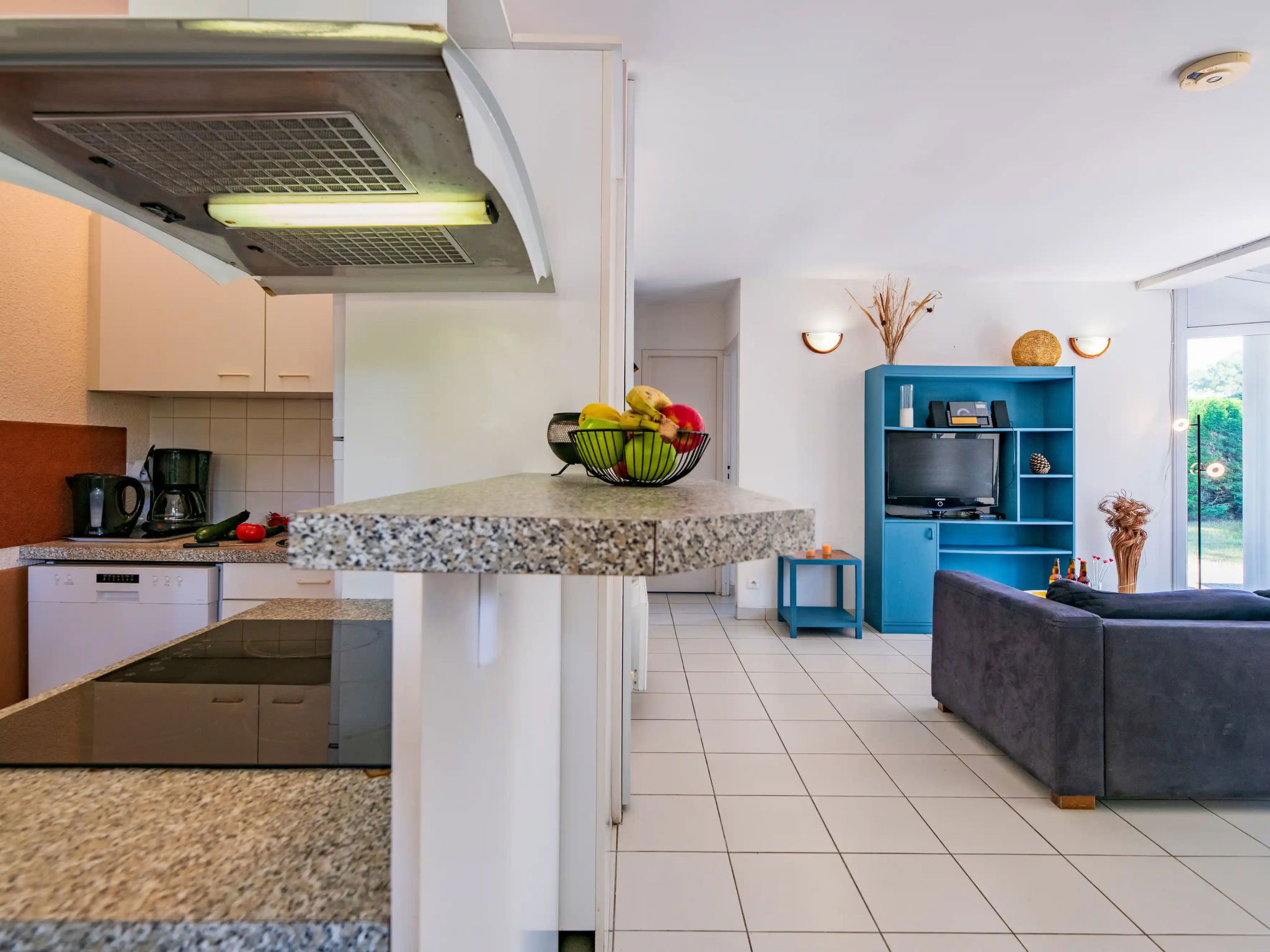 "Green Parc ", maison 3 pièces 53 m2. Clair, aménagement fonctionnel: séjour/salle à manger avec table pour les repas et TV (satellite). Sortie sur la terrasse. 1 chambre avec 1 grand-lit. Sortie sur la terrasse. 1 chambre avec 2 lits. Cuisine ouverte (4 plaques de cuisson, four, lave-vaisselle, grille-pain, bouilloire électrique, micro-ondes, congélateur). Salle de bains, WC séparé. Chauffage électrique. Terrasse, pelouse 300 m2. Meubles de terrasse, barbecue, chaises longues (3), réduit. A disposition: lave-linge, chaise haute pour enfant, lit bébé (en sus). Veuillez noter: maison non-fumeur. Maximum 2 animaux/ chiens autorisés.