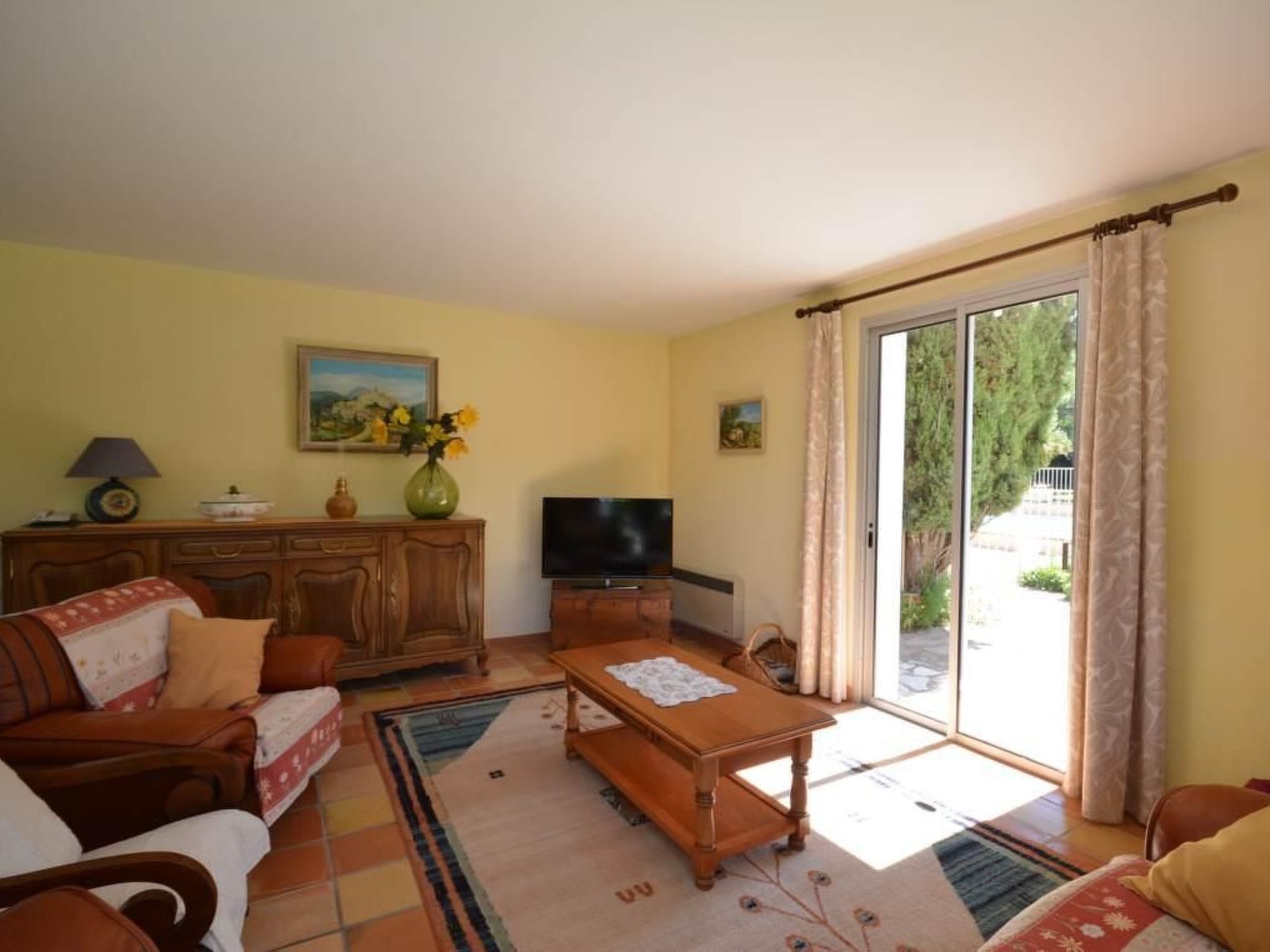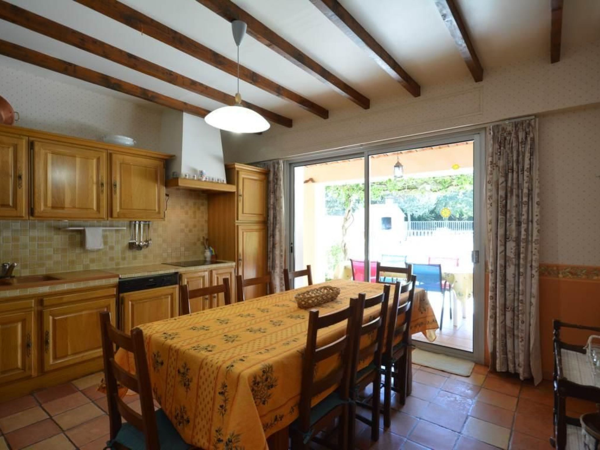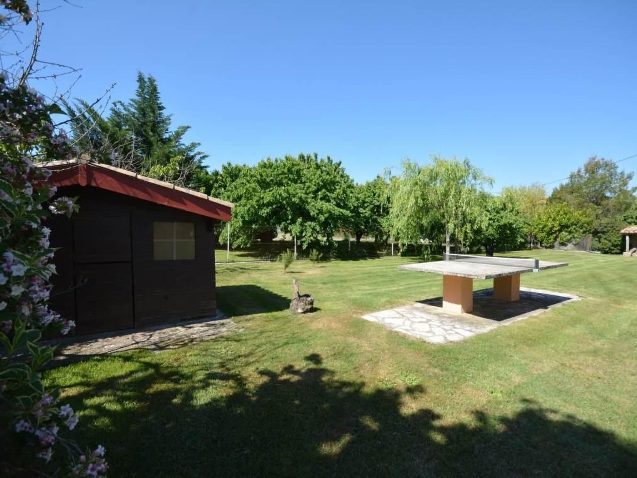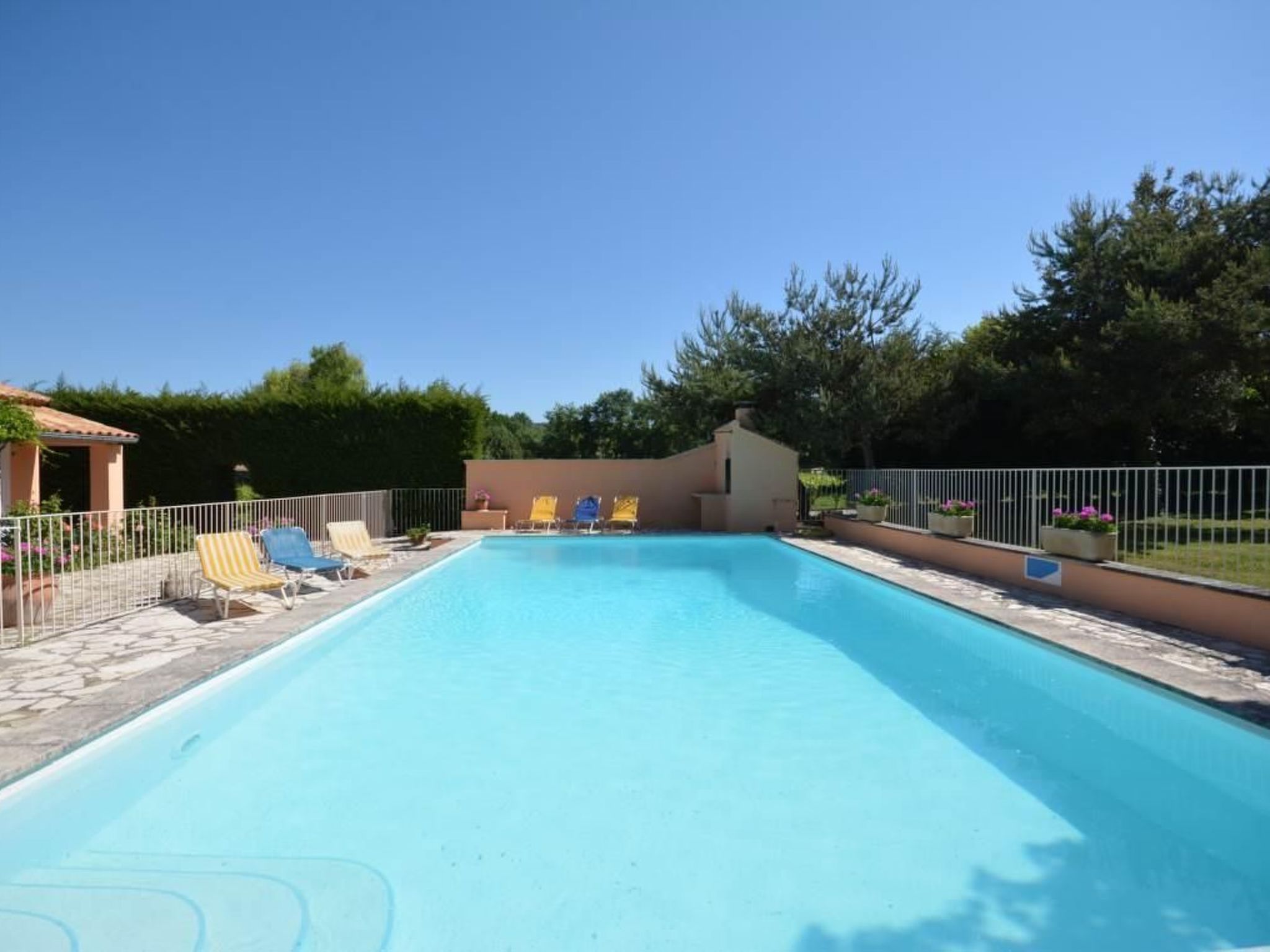 La maison se trouve sur un grand terrain clôturé, avec vue sur le Mont Ventoux. La propriété, y compris son terrain de 1200 m², est exclusivement réservée aux locataires, ce qui signifie que la grande terrasse couverte et la piscine sécurisée (12 x 6 mètres) sont réservées à votre usage exclusif. Une table de ping-pong et un jeu de boules sont également à votre disposition. Mobilier de jardin, chaises longues, barbecue et petite cabane pour les enfants : les hôtes de tous âges trouveront ici de quoi s'amuser et se détendre. Les hôtes peuvent garer leurs véhicules sous un abri voiture avec deux places de parking. De nombreux sentiers de randonnée démarrent juste à côté de la propriété.