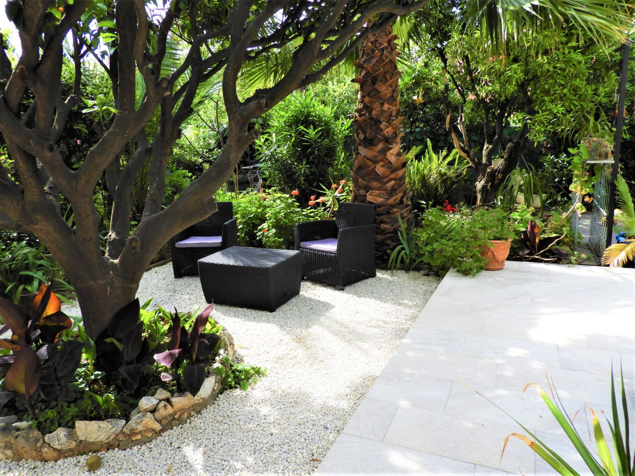 À l'extérieur, un jardin privatif clôturé attend votre famille pour des moments de détente uniques. Profitez de la terrasse, où un salon de jardin sous l'ombre d'un oranger invite à la relaxation. La présence d'une chaise longue complète ce cadre agréable, Farfaitement adapté aux enfants, pour savourer pleinement les journées ensoleillées et les douces soirées.