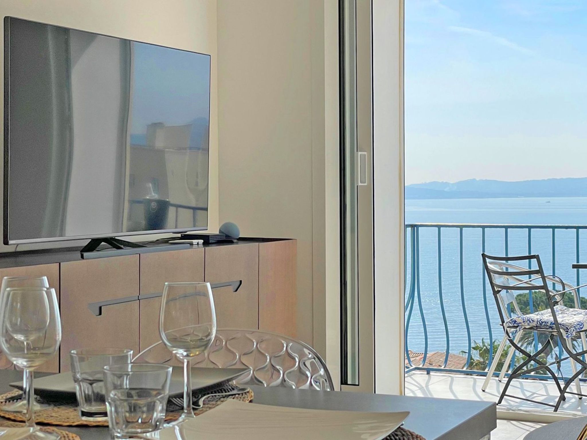 - Balcon de 6m² avec mobilier de repas, idéal pour contempler la vue sur le Golfe de St Tropez, store électrique