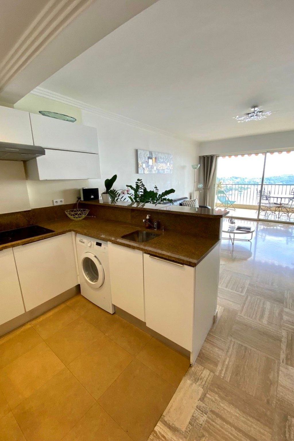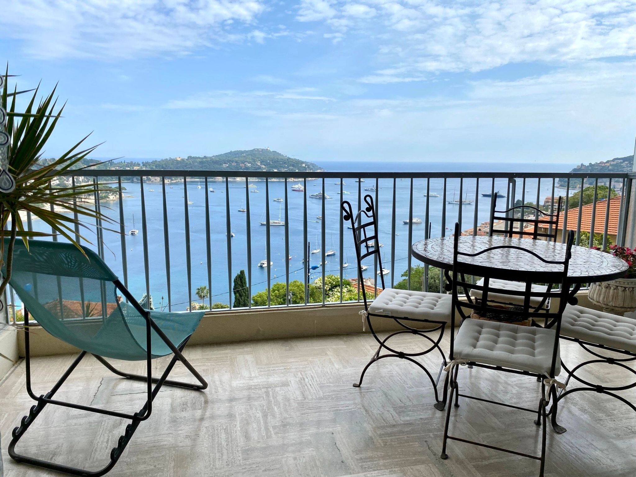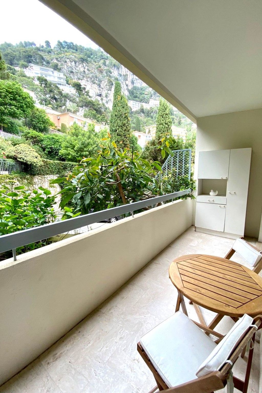The flat has two terraces (each approx. 10m2) with garden furniture. From the south-facing terrace, you have a unique panorama over the Cap Ferrat peninsula and the bay of Villefranche sur Mer as well as the old town. The complex has a security guard, a communal pool (which is never overcrowded even in summer), a private car park and a Mediterranean park. The entire complex, including the pool and park, is floodlit at night (in case anyone wants to swim a few laps late in the evening). Although the pool is not heated, it can be used from the end of May to the end of September. However, it is open all year round for those who simply want to relax and unwind in the sun by the pool.
