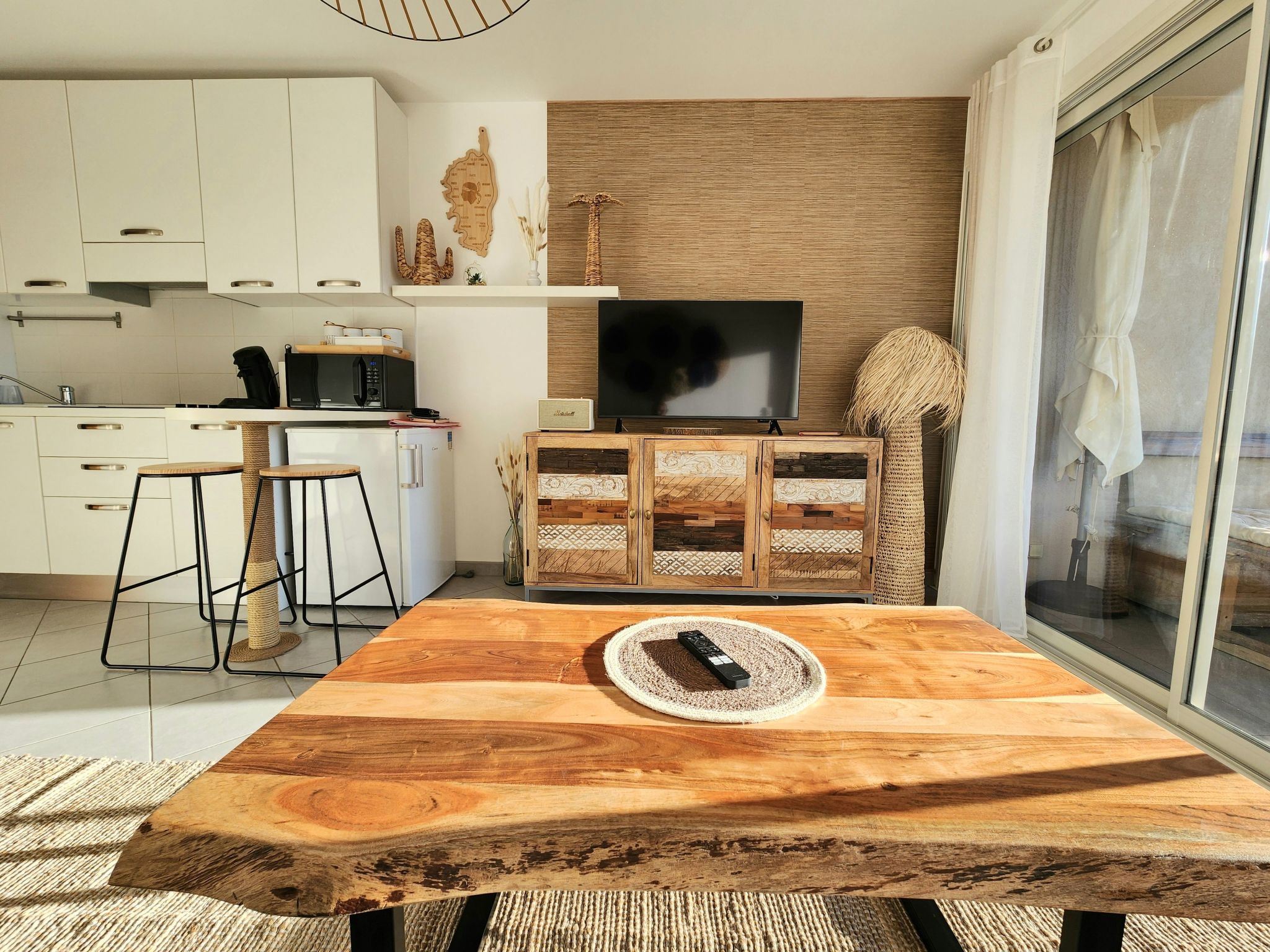 L'appartement, situé au premier étage, est doté d'une climatisation intégrale pour assurer un séjour agréable même pendant les chaudes journées d'été. La cuisine est parfaitement équipée pour répondre à tous vos besoins culinaires : avec plaque à induction, trois types de cafetières (italienne, à filtre, et à dosettes souples), lave-vaisselle et une bouilloire électrique, préparer vos repas sera un vrai plaisir. En outre, une table à langer est disponible, soulignant la praticité de cet espace pour les familles. Un téléviseur connecté et un lave-linge à usage privé complètent les commodités intérieures.