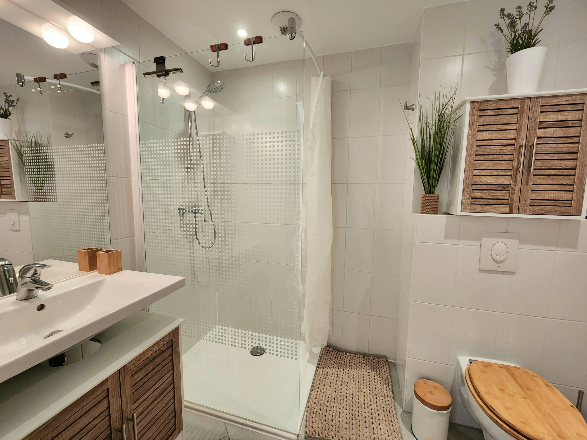 À l'extérieur, la terrasse invite à la détente et aux moments partagés. Bien que les barbecues ne soient pas permis, cet espace extérieur reste l'endroit idéal pour savourer un café le matin ou un verre de vin en soirée. Pour les amateurs de vélo, l'appartement offre un parking à vélos couvert et verrouillable, ainsi qu'une rampe d'accès pratique à l'entrée avant, assurant sécurité et confort pour vos équipements sportifs.