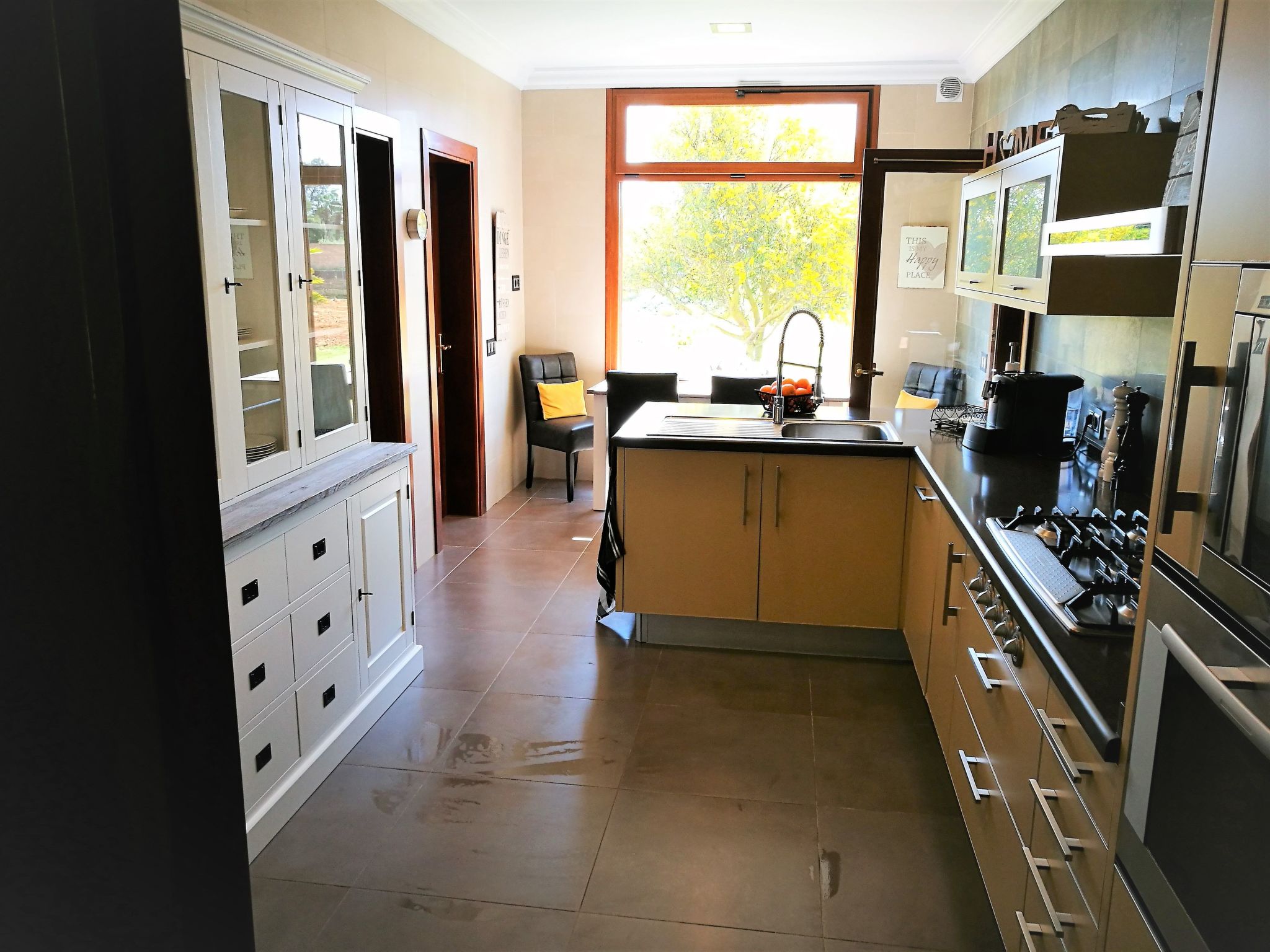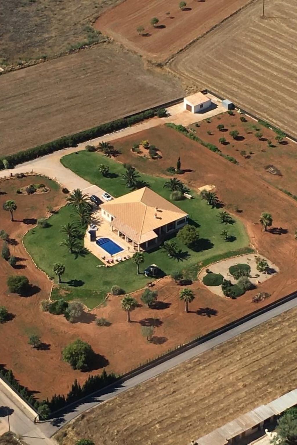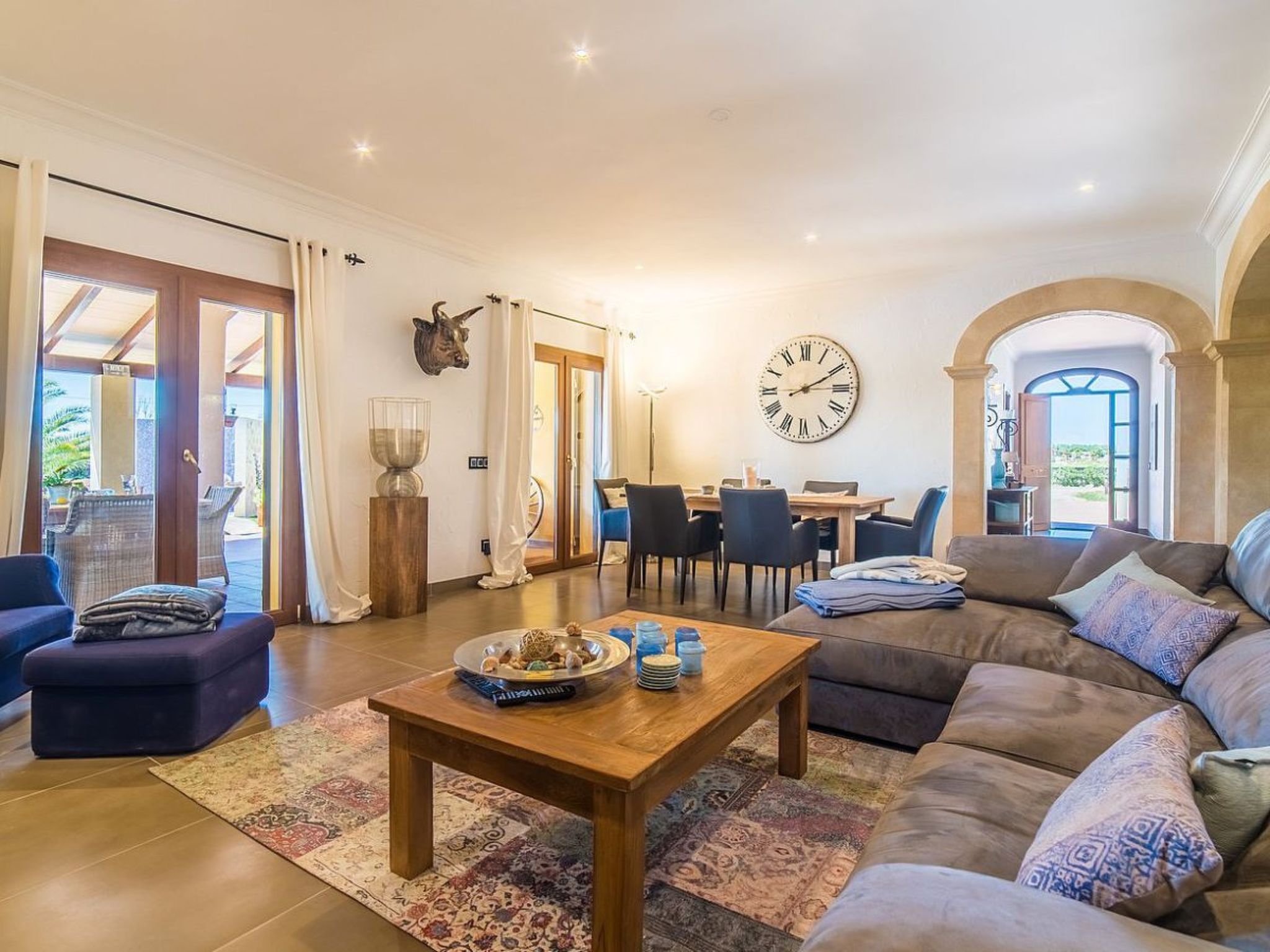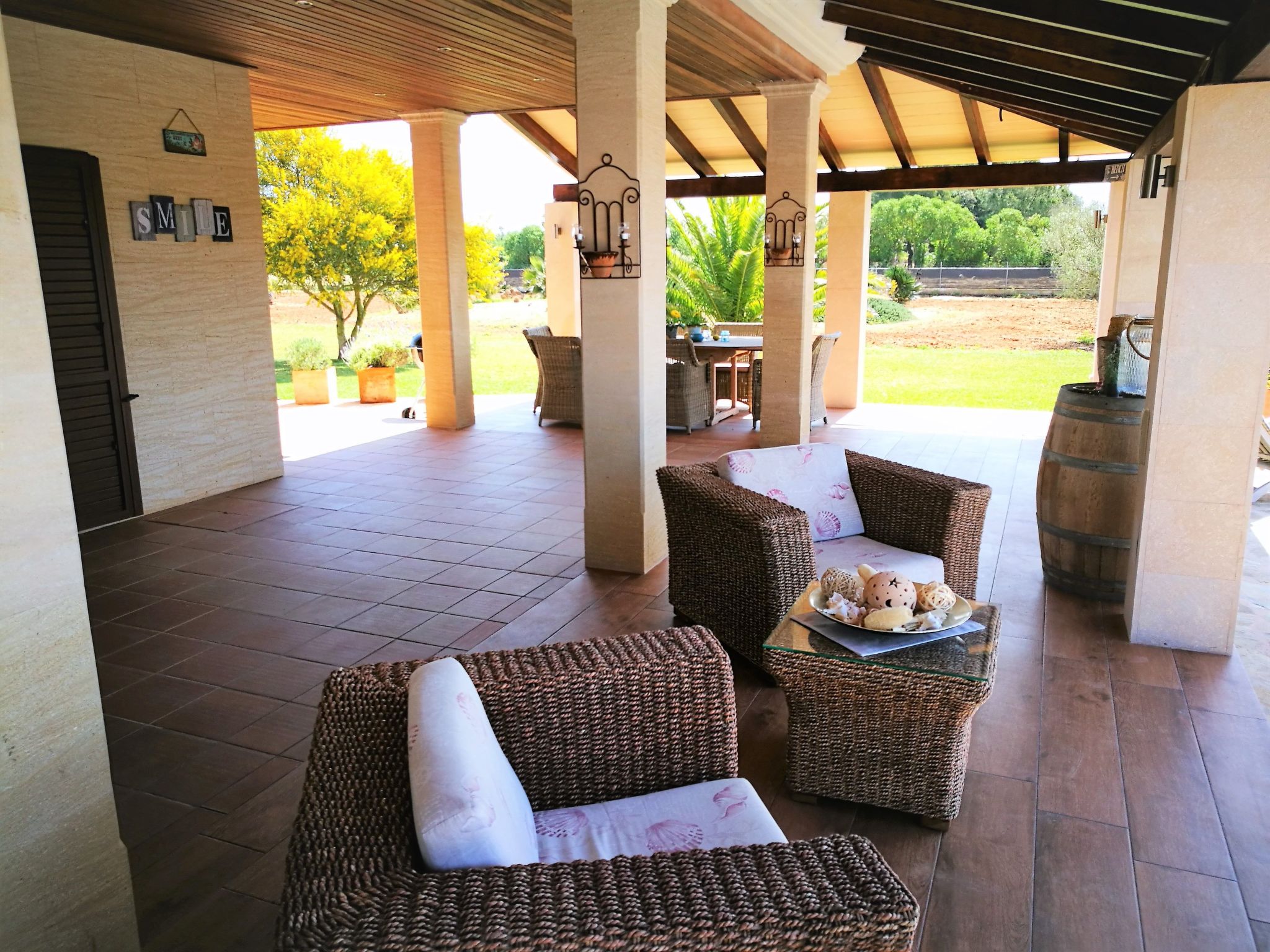 The outdoor area of this property is an oasis of relaxation. On the 14,000 m² plot, surrounded by a dreamlike garden with lawn, sun loungers and a spacious saltwater pool, you will find peace and relaxation. An extended terrace offers ample space for al fresco dining and relaxing, while a Weber barbecue provides culinary delights under the stars. The lovingly landscaped garden with palm trees, Mediterranean plants and an orchard will make your stay unforgettable.