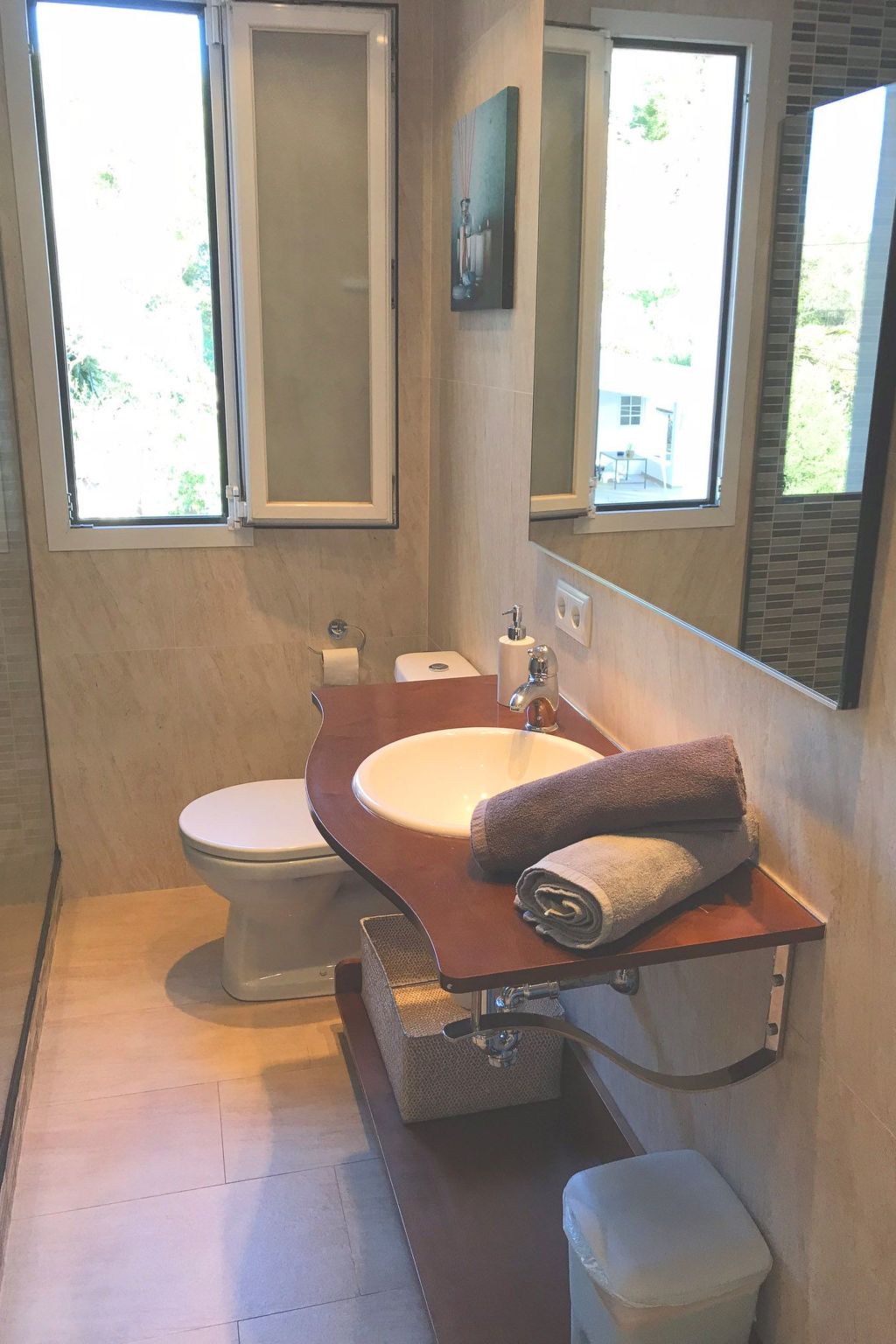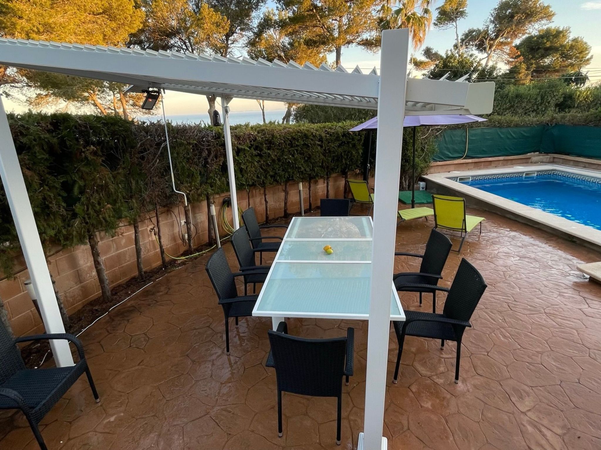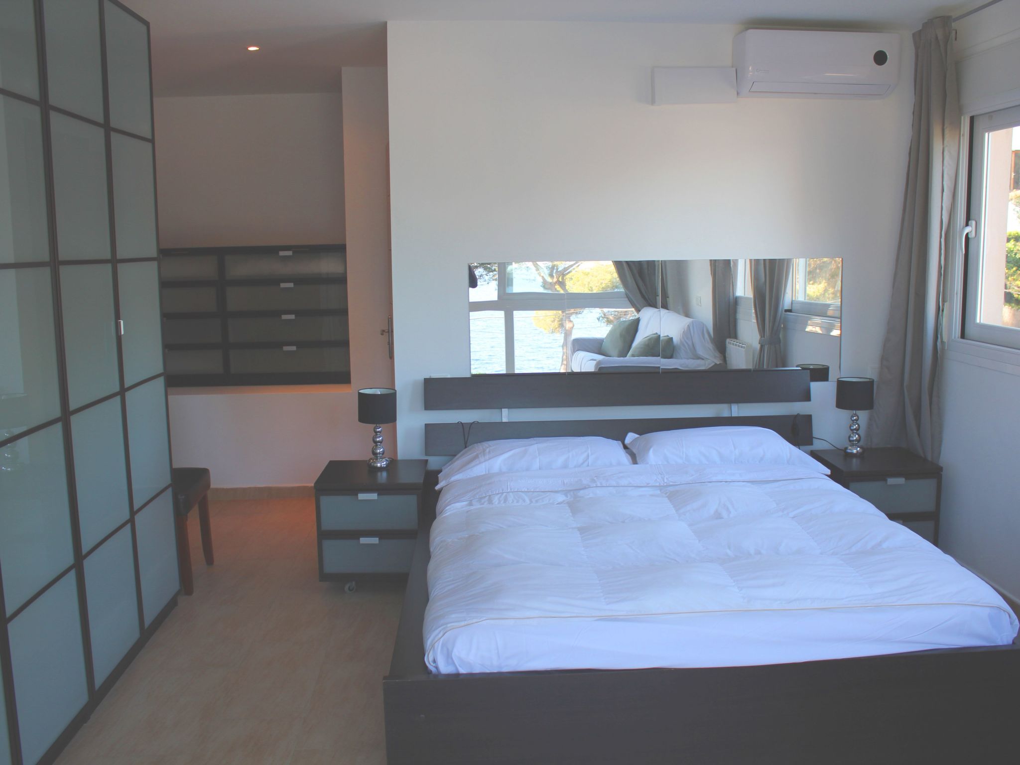 I rent my house which is in front of the sea, surrounded by pine trees, with wonderful views of the island of cabrera (natural park) with the beach just 200 meters, the house is a modern construction, with private pool, private solarium, the pool is outside with 8 by 4 (large pool) has the whole house with direct sea views, with air conditioning included in the price, cable TV and satellite dish, plus high speed wifi, barbecue, microwave, various cafetras, telivision screen 55, the house is surrounded by expectacular restaurants which can be reached on foot the same as the beach, the same as the beach,The house is surrounded by spectacular restaurants which can be reached on foot as well as the beach, it is advisable to have a car if you want to visit mallorca, from the terraces you can see the fabulous beach of es trenc which is only 20 minutes from the house, without a doubt an impressive beach like those of the caribbean if not better.
