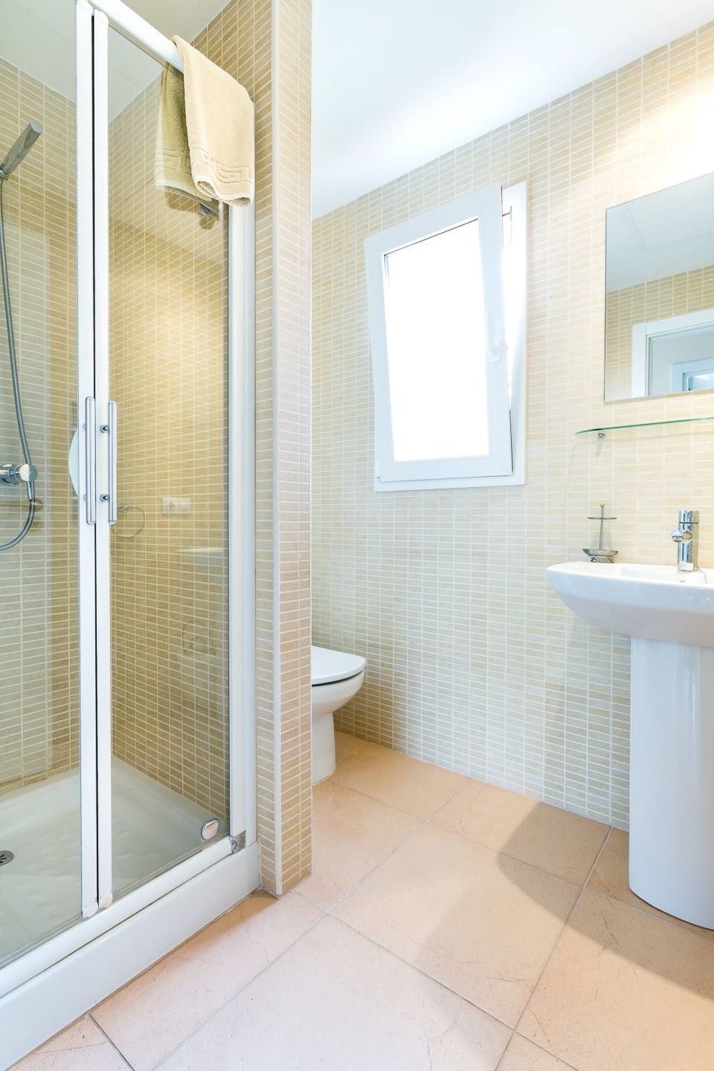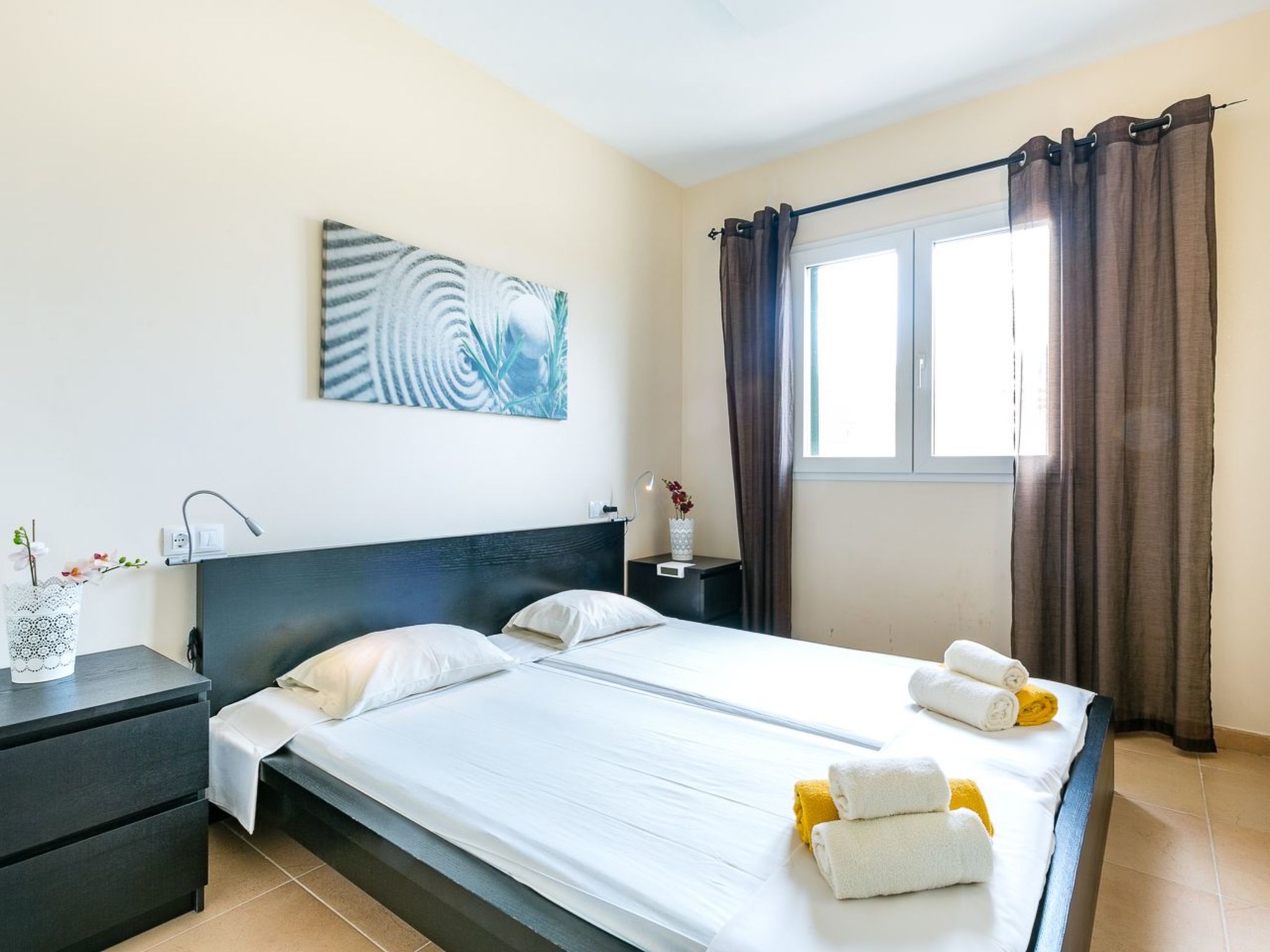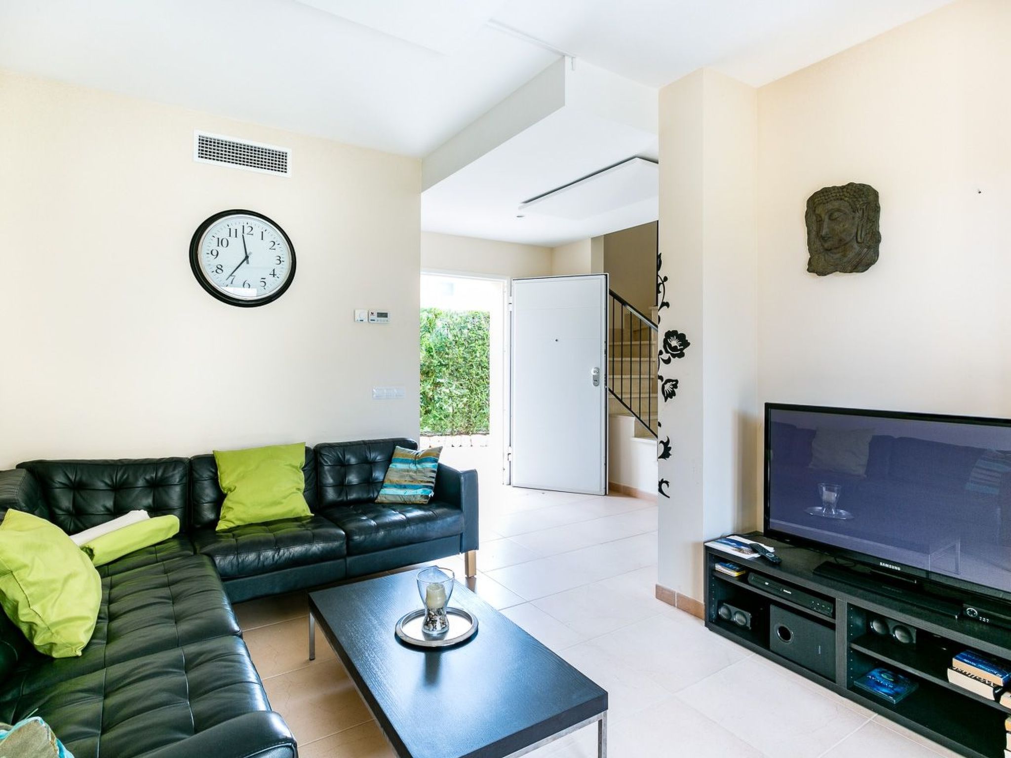 À l’extérieur, vous disposez d’une véranda et d’une terrasse privée sur le toit avec vue sur la mer. Il existent aussi un petit jardin privé et une piscine commune très spacieuse (avec bassin pour les enfants) avec de bels espaces autour pour prendre des bains de soleil.