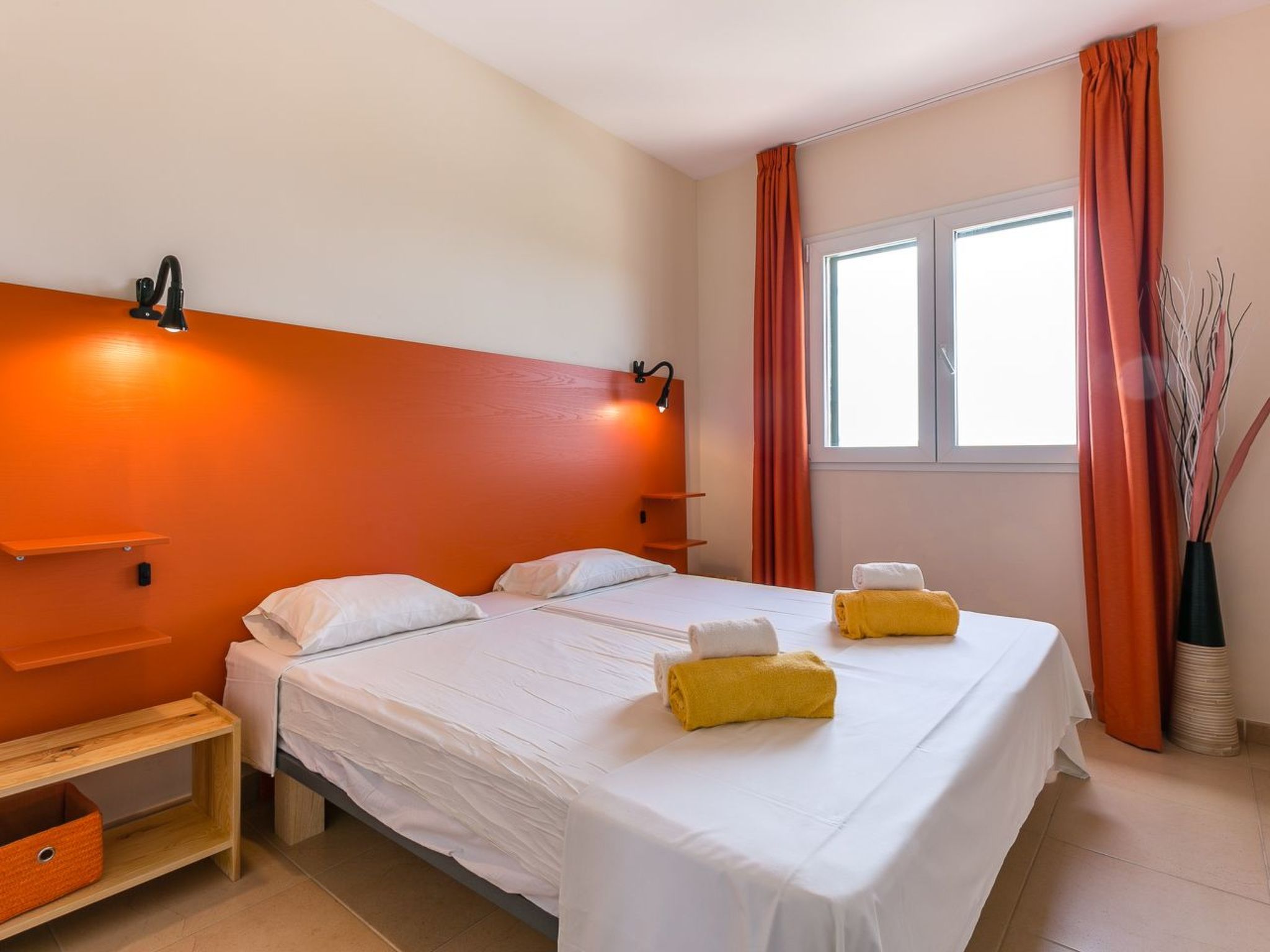 Chaque maison peut accueillir jusqu’à six personnes, dont quatre adultes et deux enfants. Il s’agit de maisons avec un équipement de haut standing et aménagées avec goût. Les espaces de vie se présentent comme suit : le plan ouvert salon/salle à manger spacieux et lumineux salon donne accès direct à la terrasse et le jardin. Il existent deux chambres et deux salles de bains. Un WC séparé et une salle de stockage sont également disponibles. La cuisine moderne est équipée avec lave-vaisselle, grand réfrigérateur avec congélateur séparé, four, plaques vitrocéramiques, cafetière, grille-pain, mixeur et machine à laver. L'équipement comprend également la télévision par satellite, une planche et un fer à repasser.