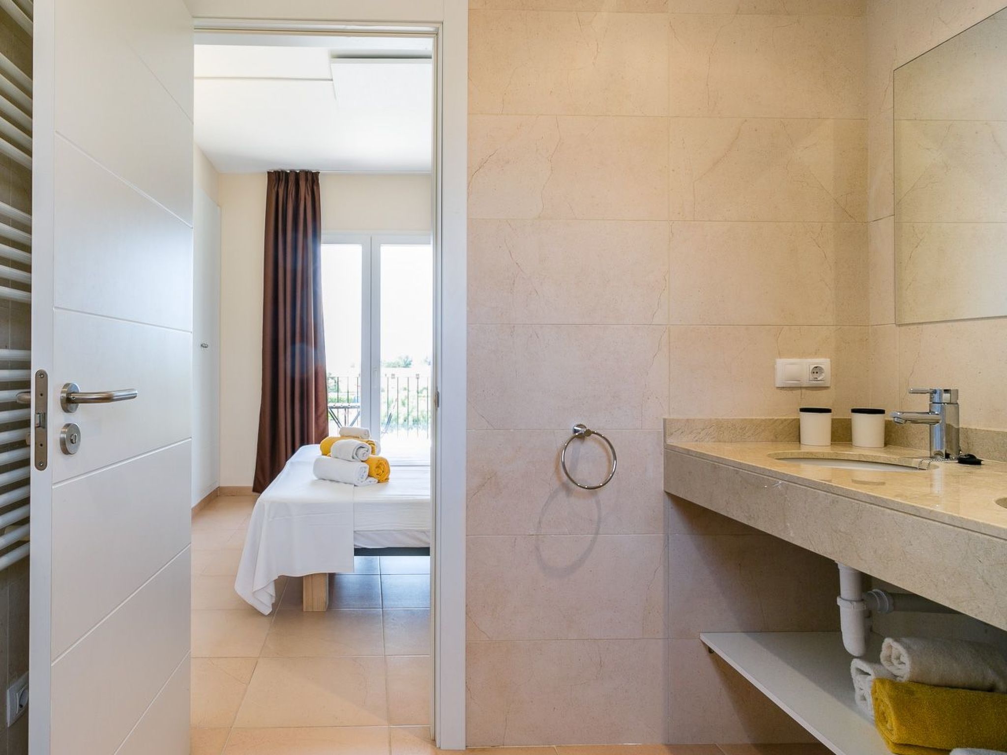 Les maisons jumelées de style méditerranéen se trouvent dans le beau quartier résidentiel d’El Paraiso (Campos / Ville Sa Rapita). L'installation est située à proximité immédiate de la plage d’Es Trenc.