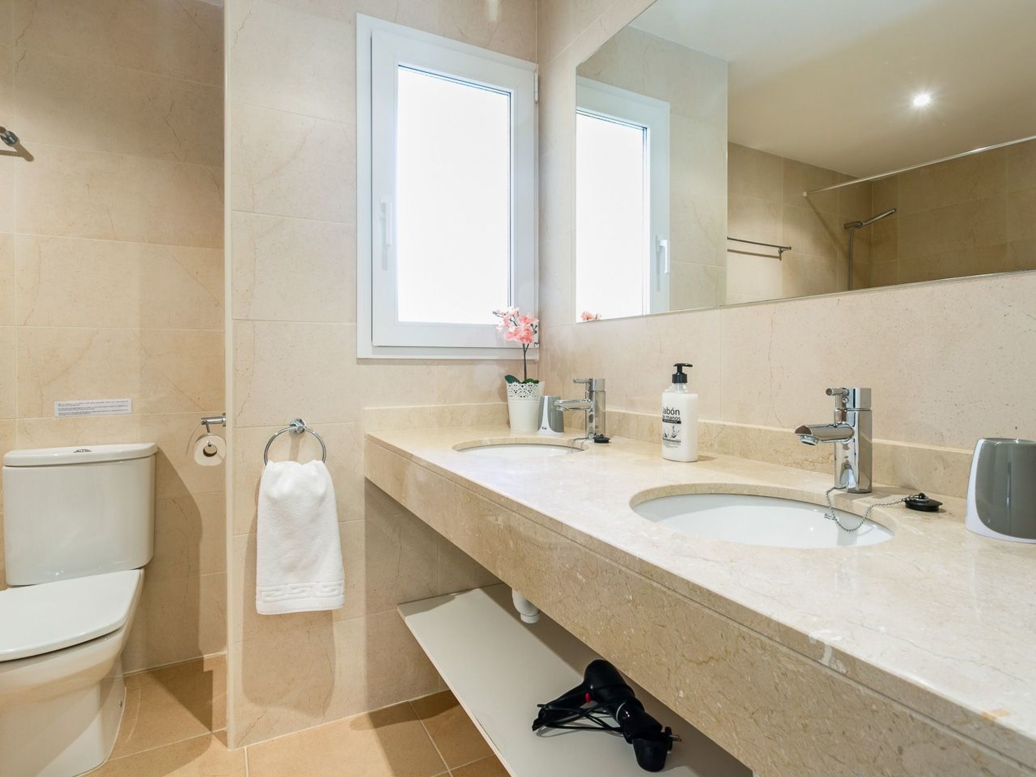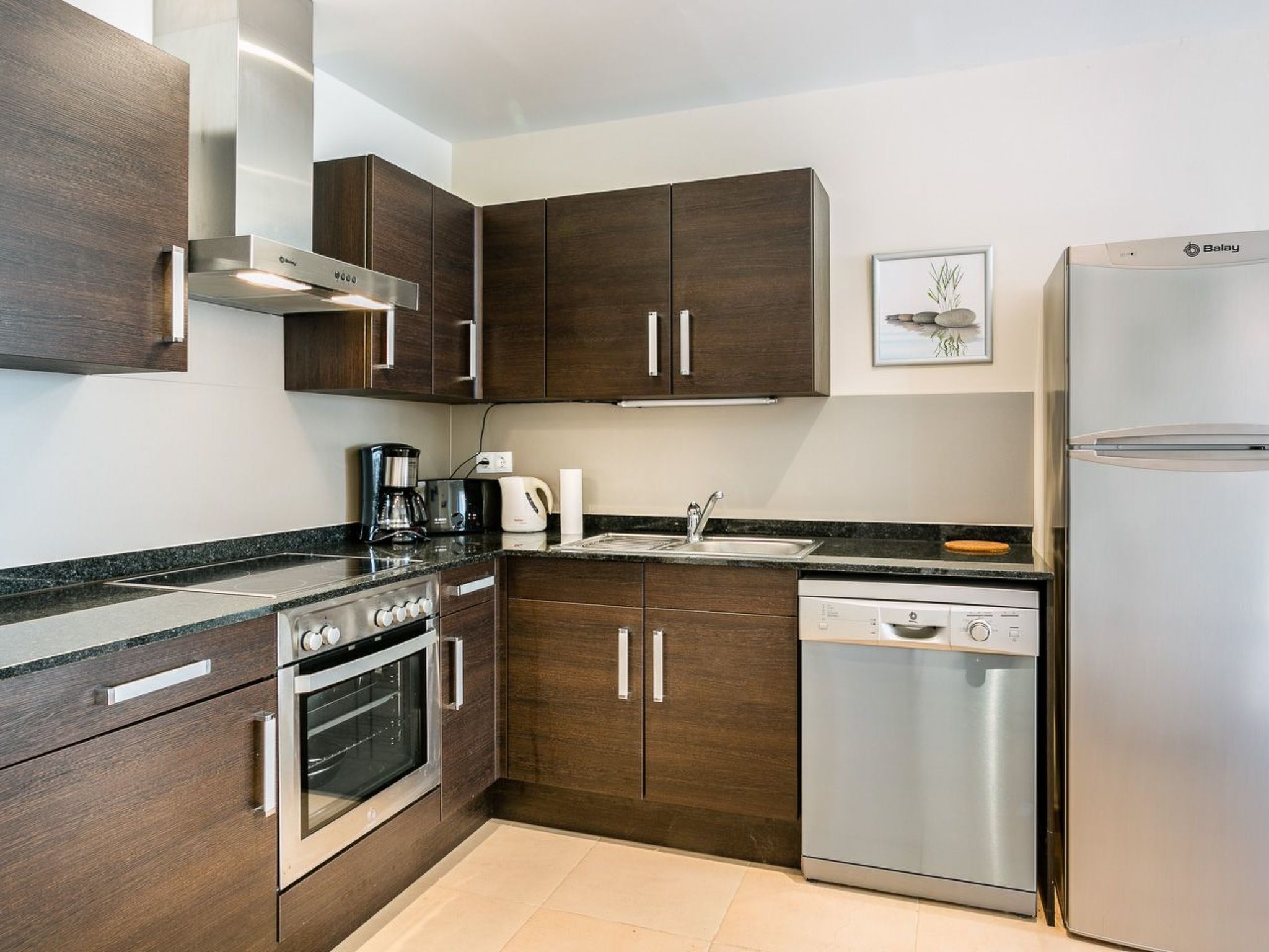 L'occupation maximale est de quatre adultes et deux enfants par appartement. Salon et salle à manger lumineuse, cuisine moderne ouverte et entièrement équipée, deux chambres, deux salles de bains, des terrasses avec vue sur la mer. Sur demande un lit pour bébé ou des lits d’appoints sont disponibles. Cuisine moderne avec lave-vaisselle, grand réfrigérateur avec congélateur séparé, four, plaques vitrocéramiques, cafetière, grille-pain, mixeur, TV satellite, machine à laver, planche à repasser, fer à repasser, linge de lit, serviettes, torchons.