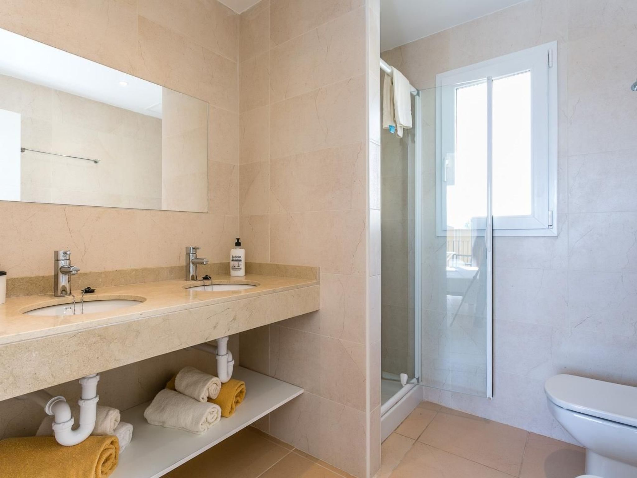 There is a covered and open terrace, as well as a private roof terrace with sea views. There is also a small private garden and a very large communal pool (including children's pool). The residential complex has a very spacious pool area. The complex has a café - restaurant area