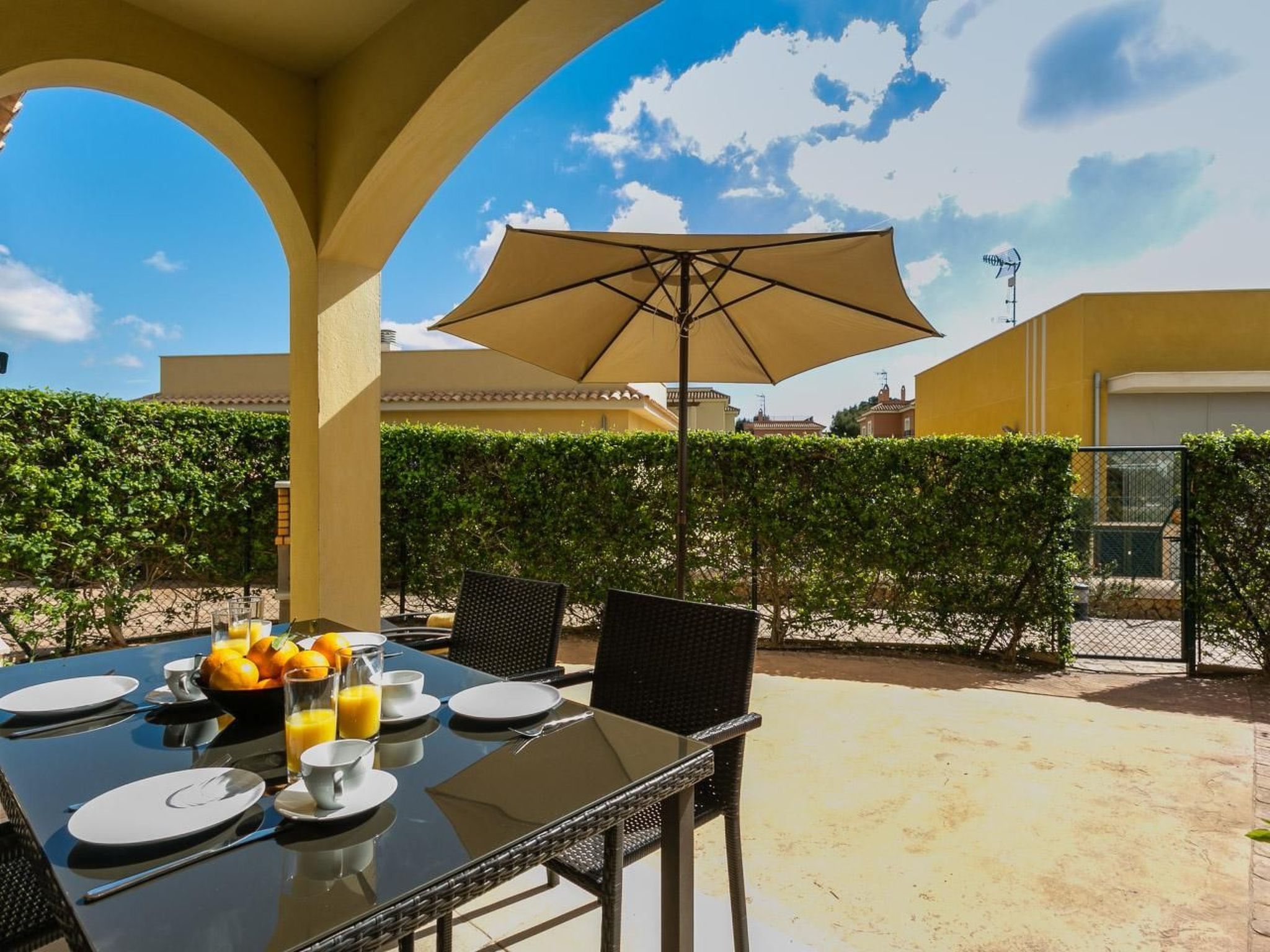 The Mediterranean semi-detached houses are located in the beautiful residential area of El Paraiso (municipality of Campos / village of Sa Rapita). The complex is located in the immediate vicinity of the beach Es Trenc.modern terraced houses with communal pool near the beach and golf courses in the areaThe Mediterranean semi-detached houses are located in the beautiful residential area El Paraiso (municipality of Campos / village of Sa Rapita). The complex is located in the immediate vicinity of Es Trenc beach and has a maximum occupancy of six people, four adults and two children per holiday home. The modern terraced house is equipped to a high standard. A spacious and light-flooded living/dining area with direct access to the terrace/garden, two bedrooms, two bathrooms, a separate guest WC and storage room are available. The modern kitchen is equipped with a dishwasher, large fridge with separate freezer compartment, oven, ceramic hob, coffee machine, toaster, blender and washing machine. Further facilities include satellite TV, ironing board, iron and tea towels, a covered and open terrace and a private roof terrace with sea views. There is also a small private garden and a very large communal pool (including children's pool). The residential complex has a very spacious pool area and free WiFi access is available to all tenants throughout the complex. Over-occupancy with up to two children is possible. The semi-detached house in Sa Rapita (municipality of Campos) is located just 2 km from the beautiful sandy beach of Es Trenc. The popular natural sandy beach of Es Trenc and the surrounding Son Antem, Son Gual and Maioris golf courses are just a few minutes' drive away.