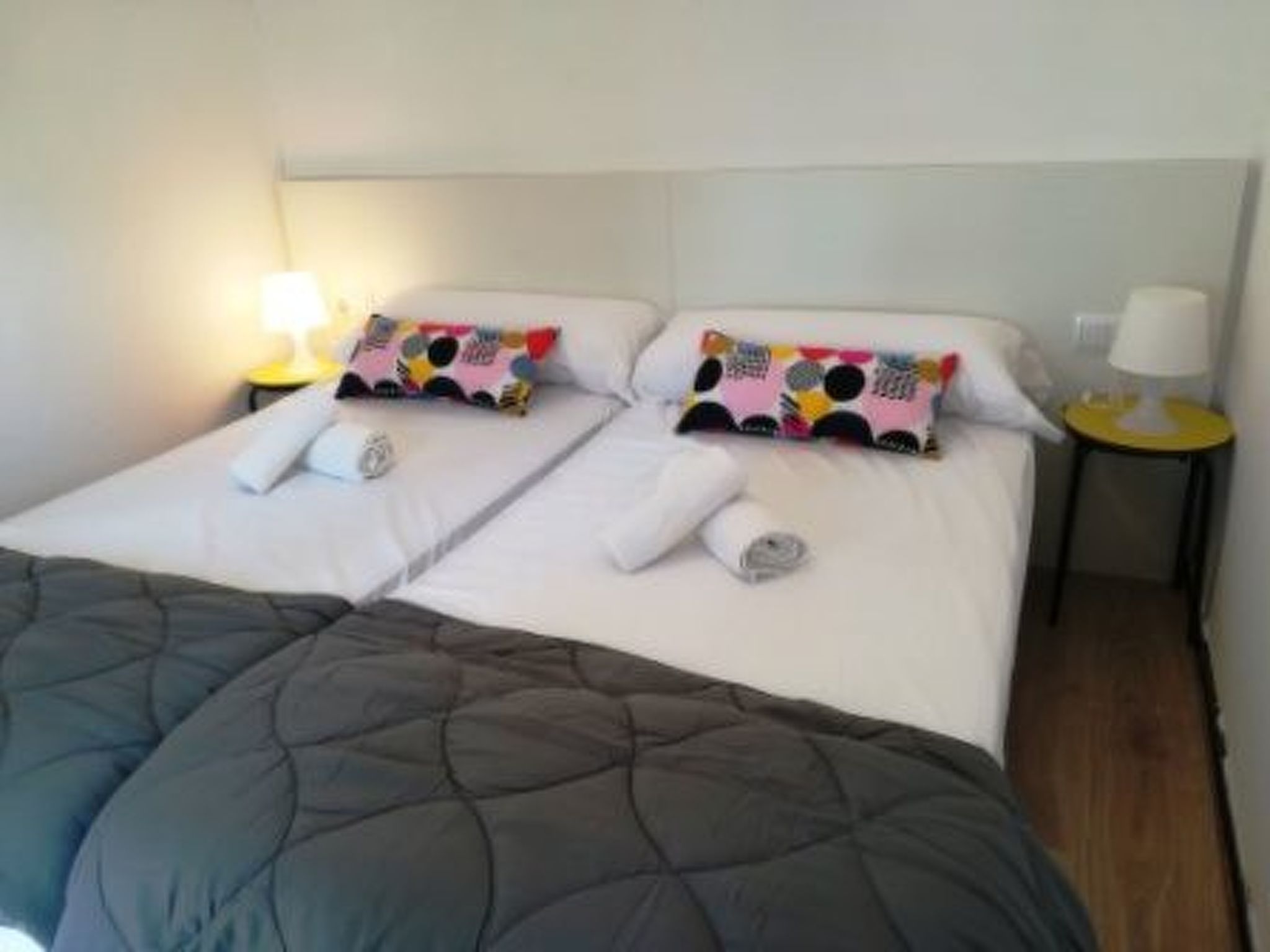 It has a living-dining room, kitchen, bathroom with shower and toilet, two bedrooms with two single beds (0,90m) each.