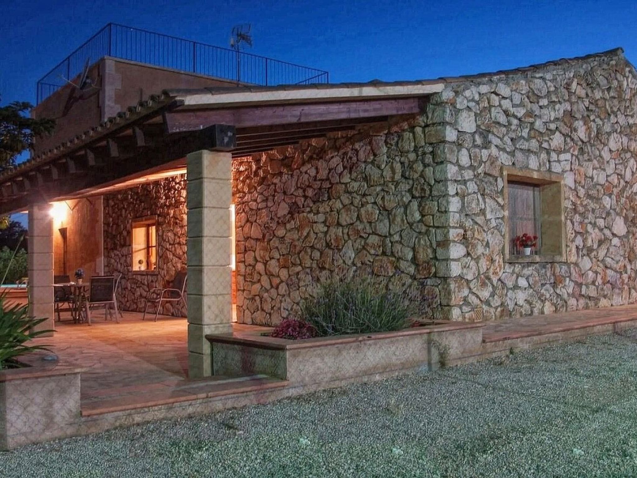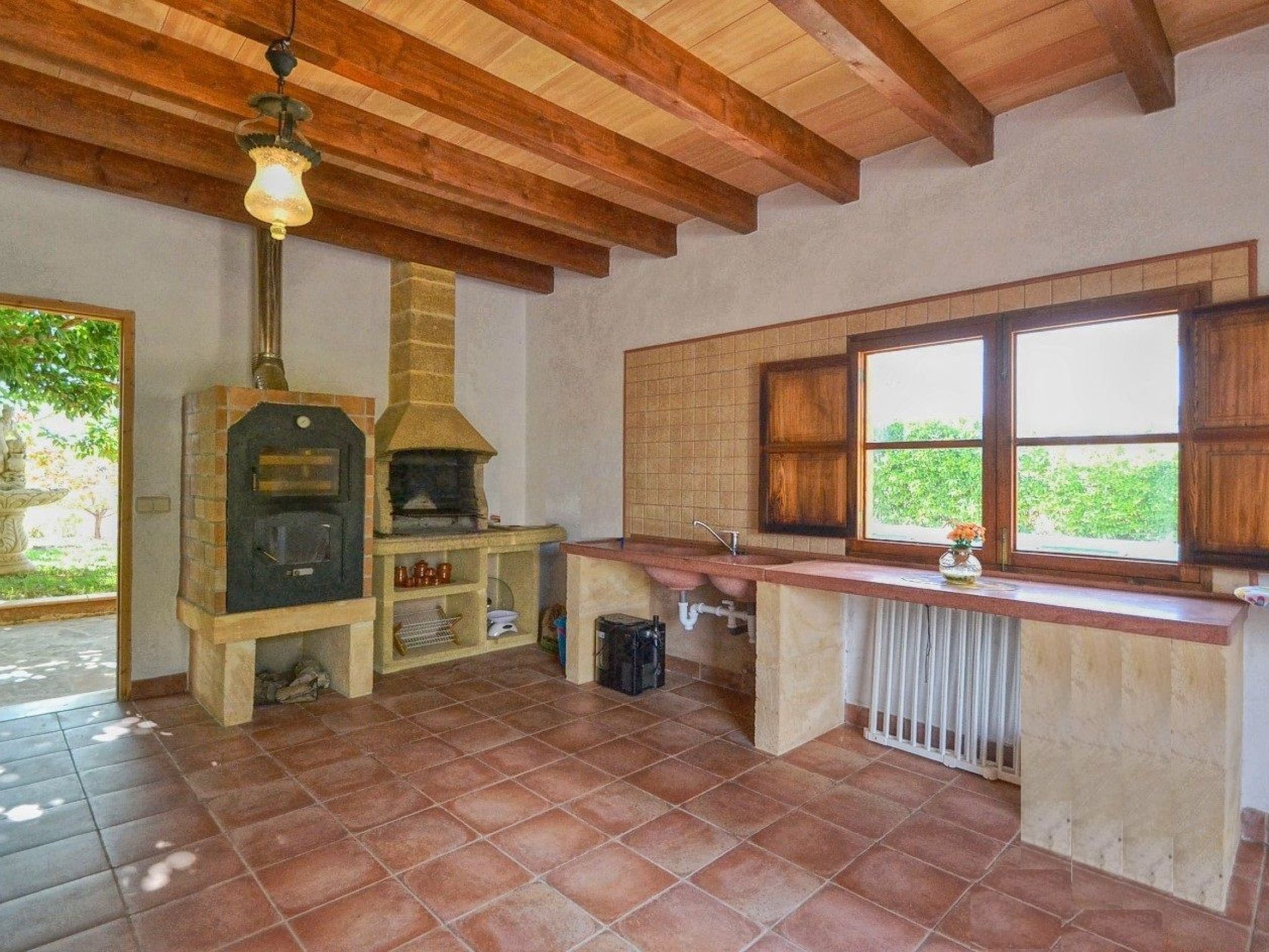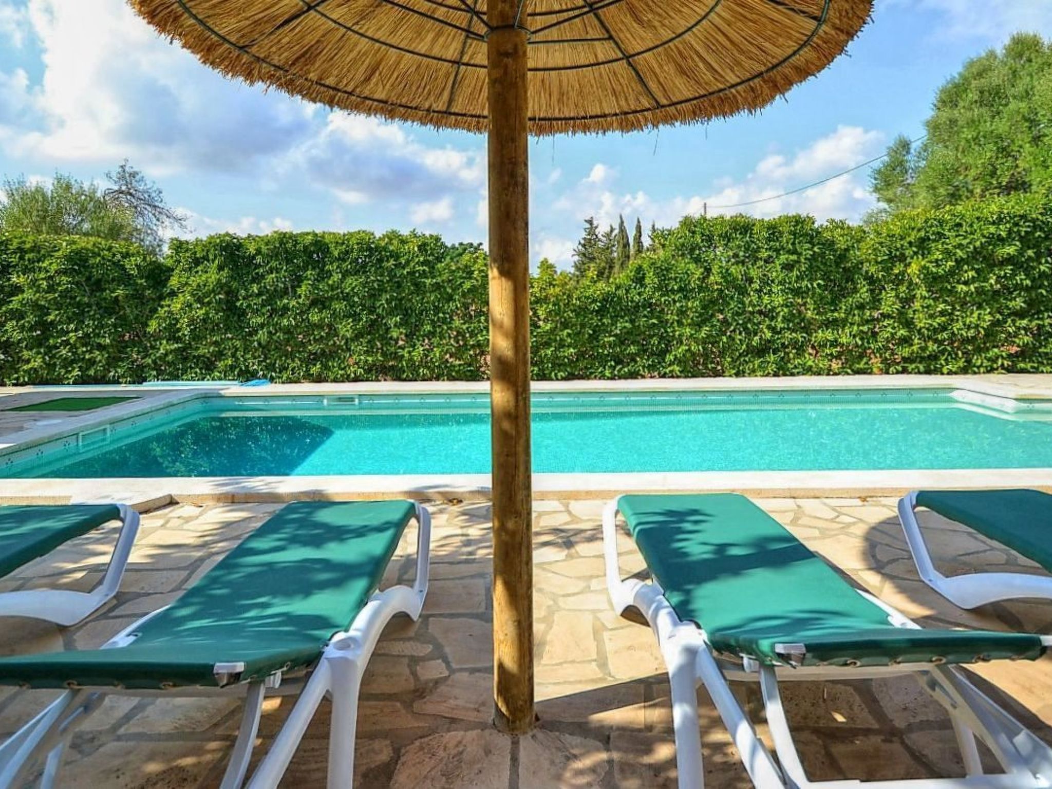 The house is surrounded by an idyllic garden with many shady spots. The paved pool terrace with two fixed thatched umbrellas houses the 11 m x 4 m ( 0.80 m to 1.90 m deep ) private salt water swimming pool with outdoor shower and a wooden porch with sofas for relaxing. An indoor brick grill has been installed for our guests on the pool terrace, so you don't have to sizzle in the sun while preparing the barbecue. Another highlight of Finca SA COVA, and therefore particularly attractive for families with children and sports enthusiasts, is its own tennis court. The finca offers a nice and quiet location, but is only a 5 minutes' drive away from Manacor, the second largest town of Mallorca. In Manacor there are supermarkets, restaurants etc.... The beaches of the areas of Porto Cristo, Calas de Mallorca and Sa Coma on the east coast, Arta and Colonia de Sant Pere in the north can be reached by car in 15-30 minutes.