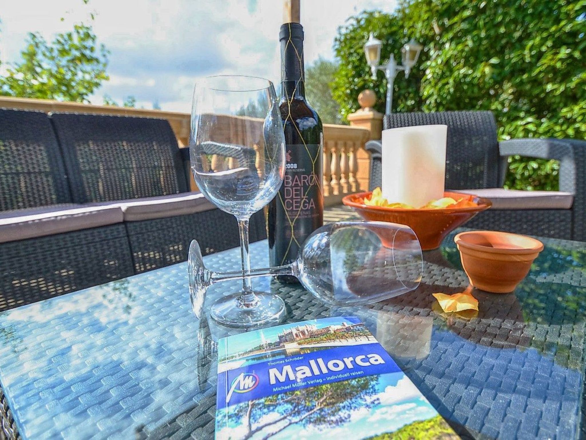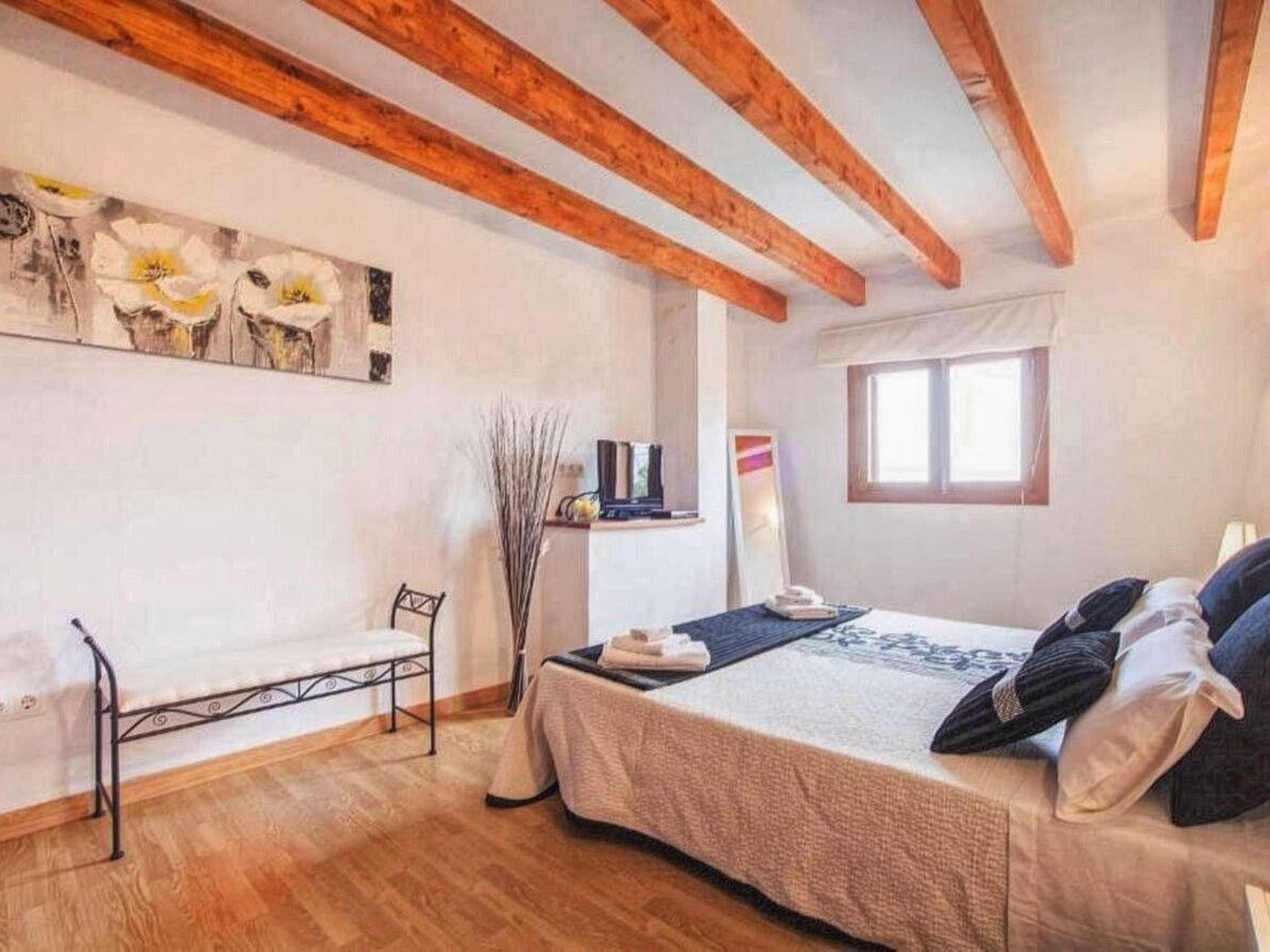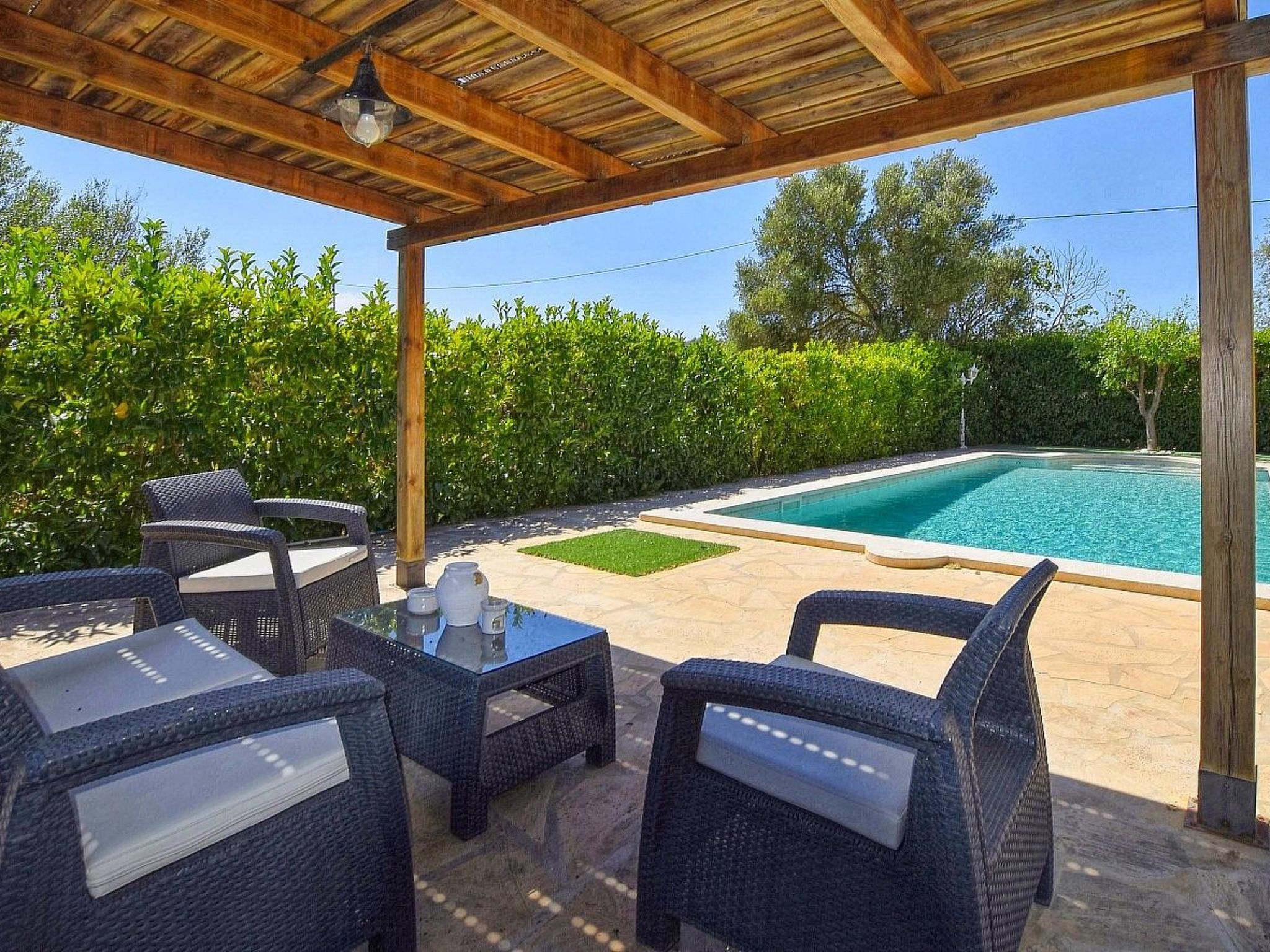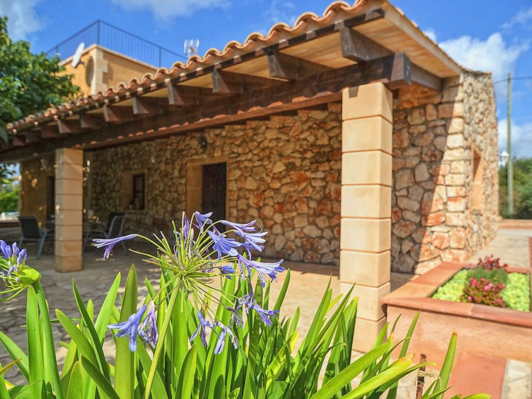 The house is surrounded by an idyllic garden with many shady spots. The paved pool terrace with two fixed thatched umbrellas houses the 11 m x 4 m ( 0.80 m to 1.90 m deep ) private salt water swimming pool with outdoor shower and a wooden porch with sofas for relaxing. An indoor brick grill has been installed for our guests on the pool terrace, so you don't have to sizzle in the sun while preparing the barbecue. Another highlight of Finca SA COVA, and therefore particularly attractive for families with children and sports enthusiasts, is its own tennis court. The finca offers a nice and quiet location, but is only a 5 minutes' drive away from Manacor, the second largest town of Mallorca. In Manacor there are supermarkets, restaurants etc.... The beaches of the areas of Porto Cristo, Calas de Mallorca and Sa Coma on the east coast, Arta and Colonia de Sant Pere in the north can be reached by car in 15-30 minutes.
