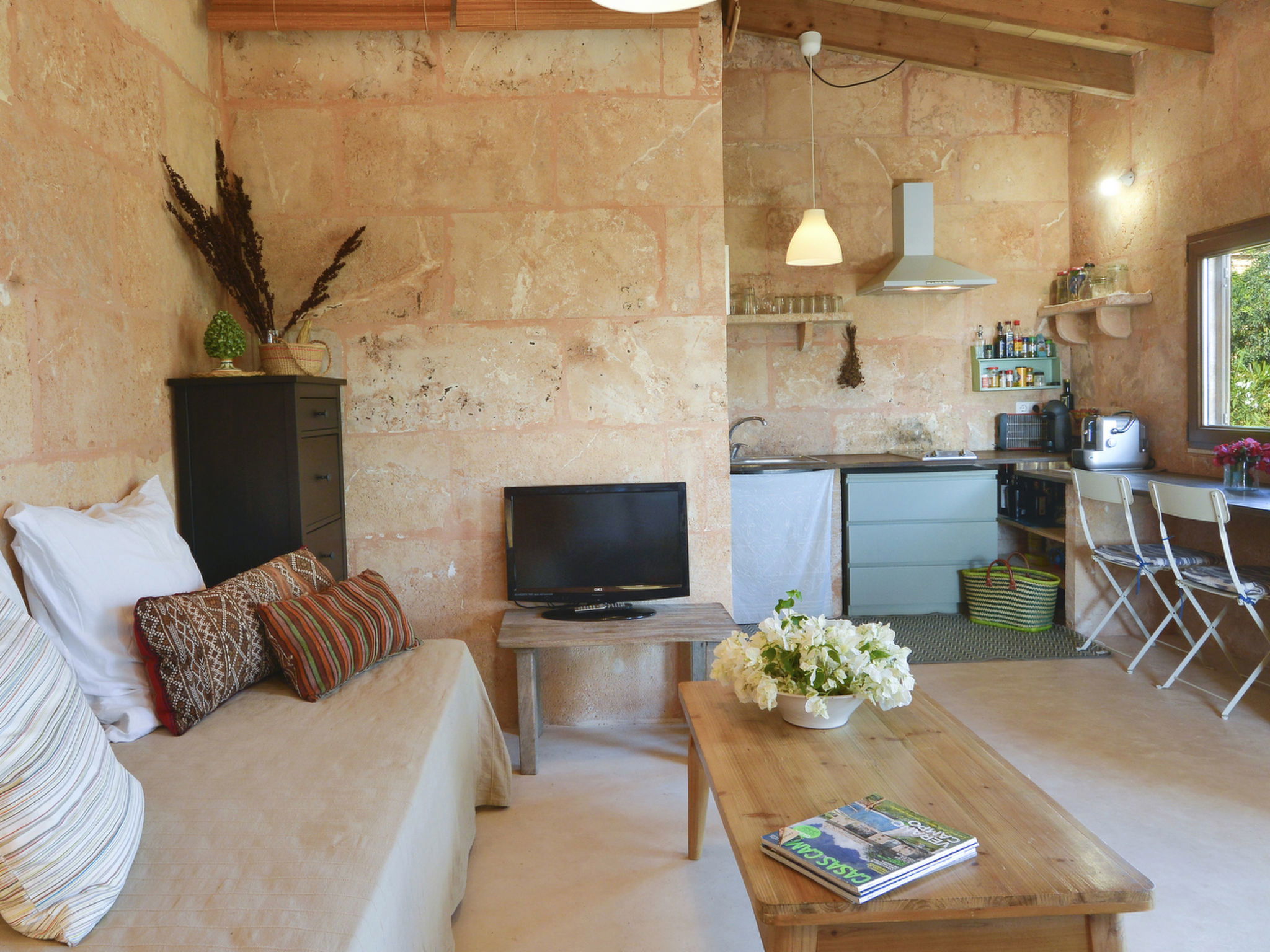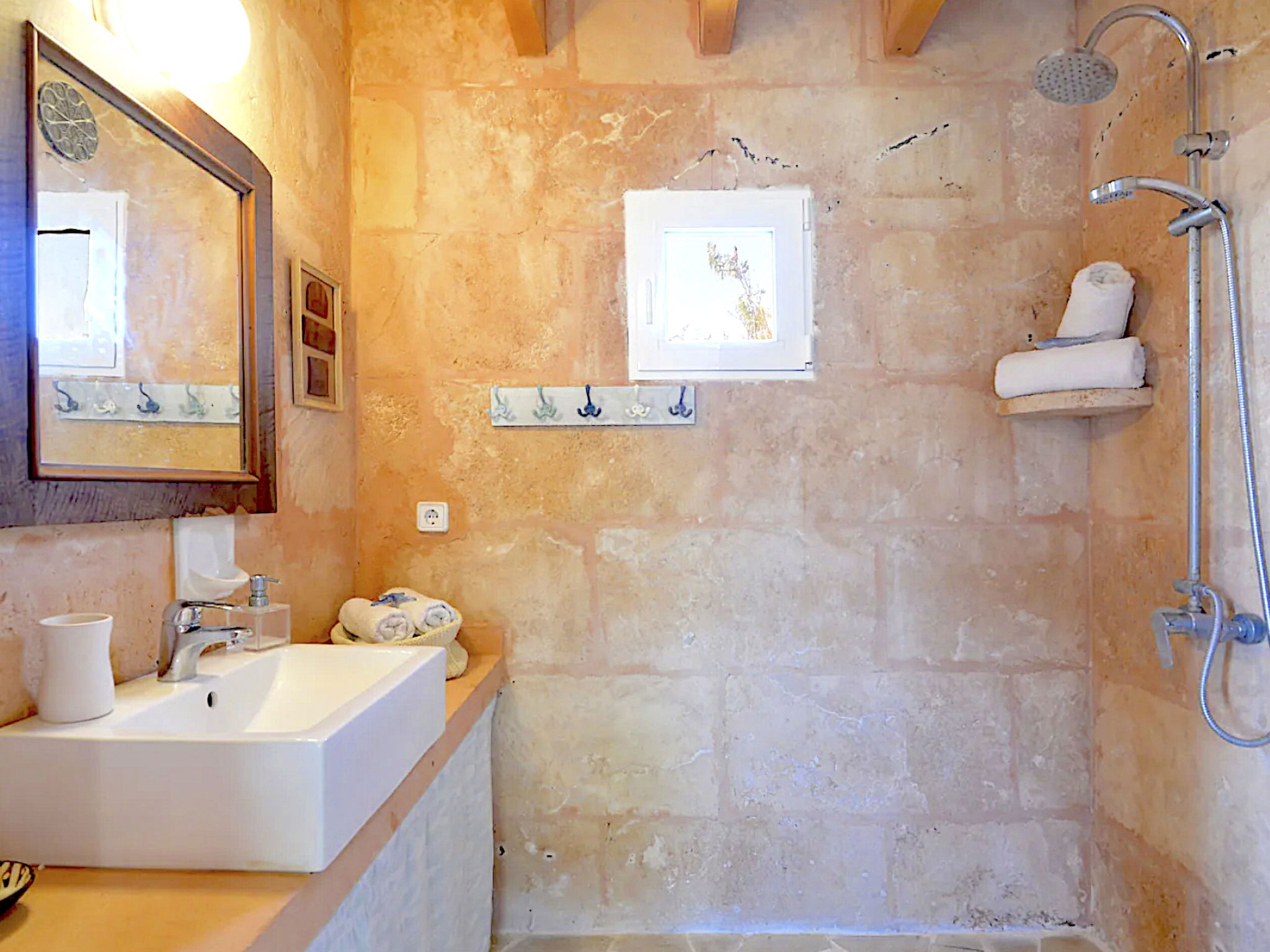 The rustic natural stone house Finca Can Patito - built at the beginning of the last century - has been converted into a cosy holiday home. Here you can spend carefree holidays in the middle of nature. The overall Mallorcan flair of the house invites you to enjoy a relaxing holiday. A barbecue grill is available in the Mediterranean-style garden and allows for an informal outdoor lifestyle. Santanyi - the popular town with its famous market, many shops offering far more than just the daily necessities and numerous restaurants, bodegas and cafés is also within easy reach. To the south is the Cap des Ses Salines, where beautiful sandy beaches with a real Caribbean atmosphere invite you to sunbathe, swim or take a long walk along the beach. The famous Calo des Moro and S'Almunia beaches are also not far away.