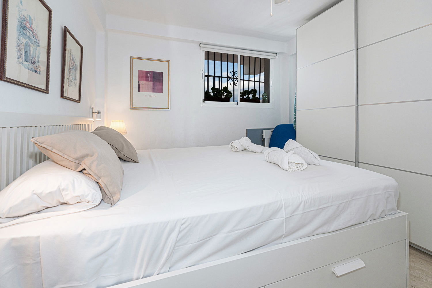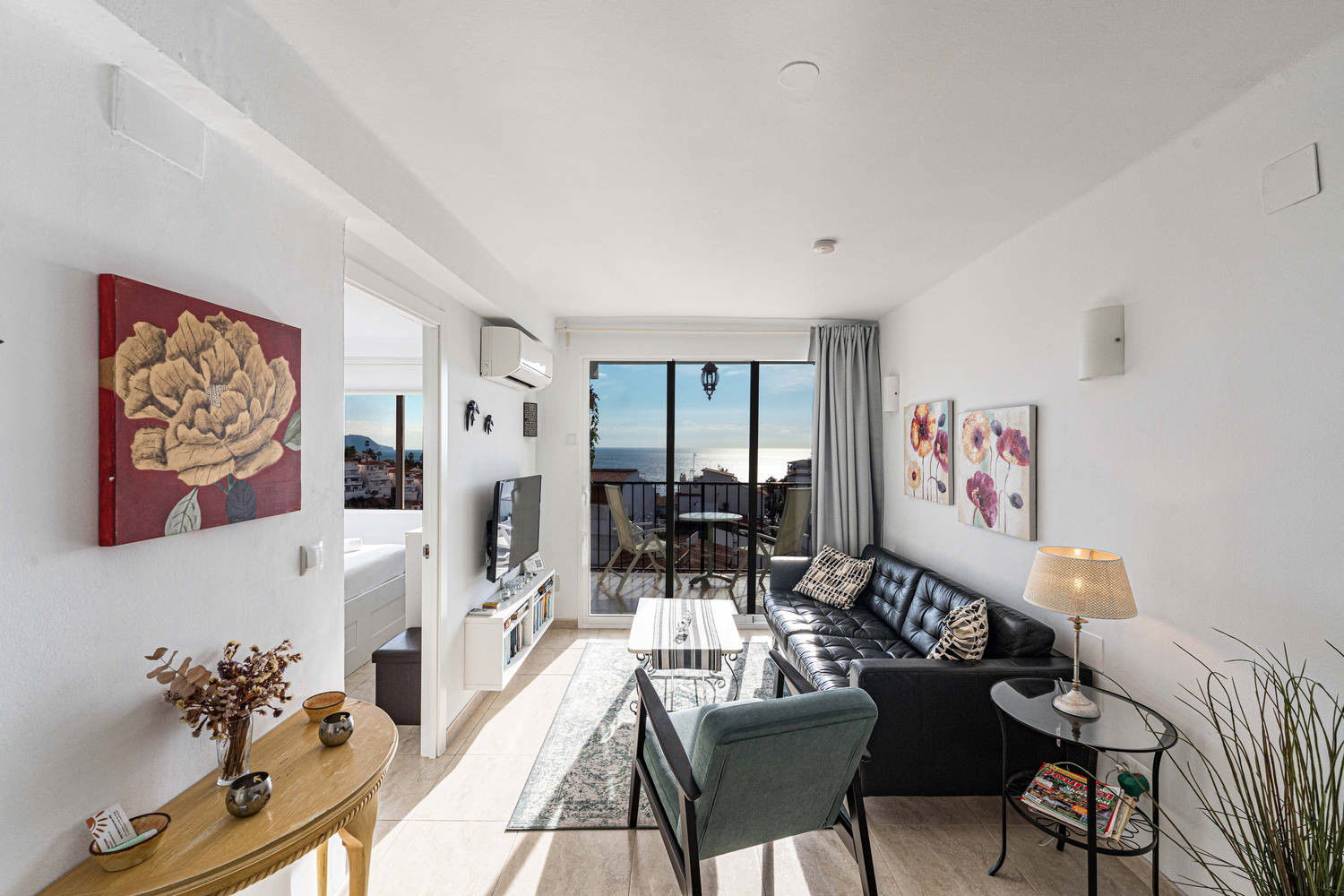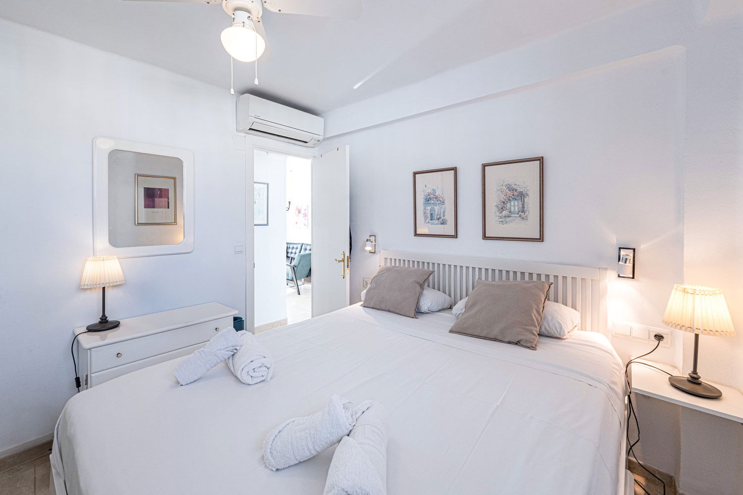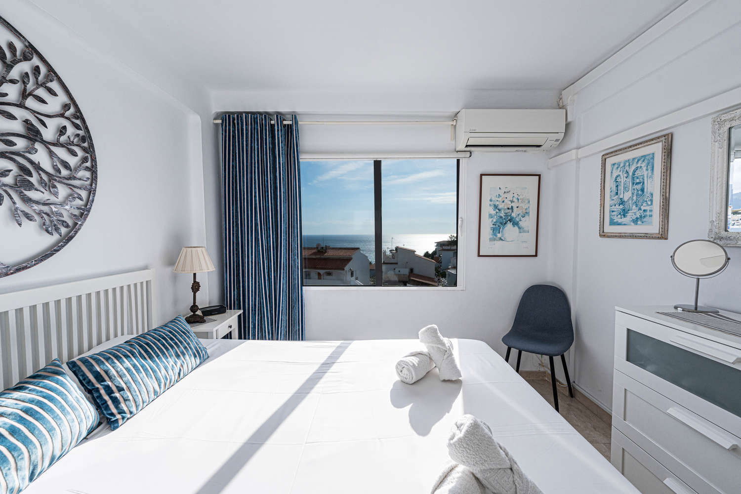 La propriété : Appartement de 2 chambres, toutes deux équipées d'un lit double confortable, dont l'une avec vue sur la mer. Il dispose d'une salle de bain avec douche et d'un intérieur fonctionnel et bien équipé, conçu pour des séjours confortables pouvant accueillir jusqu'à 4 personnes.