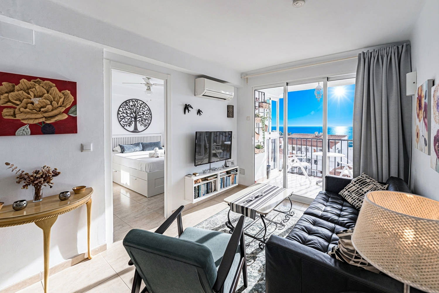Vie intérieure et extérieure : Le logement se distingue par sa terrasse vitrée, l'un des espaces les plus agréables de l'appartement. De là, vous pourrez profiter d'une vue imprenable sur les maisons typiques de Nerja et sur la mer, dans un environnement calme, idéal pour prendre le petit-déjeuner, lire ou se détendre en fin de journée.