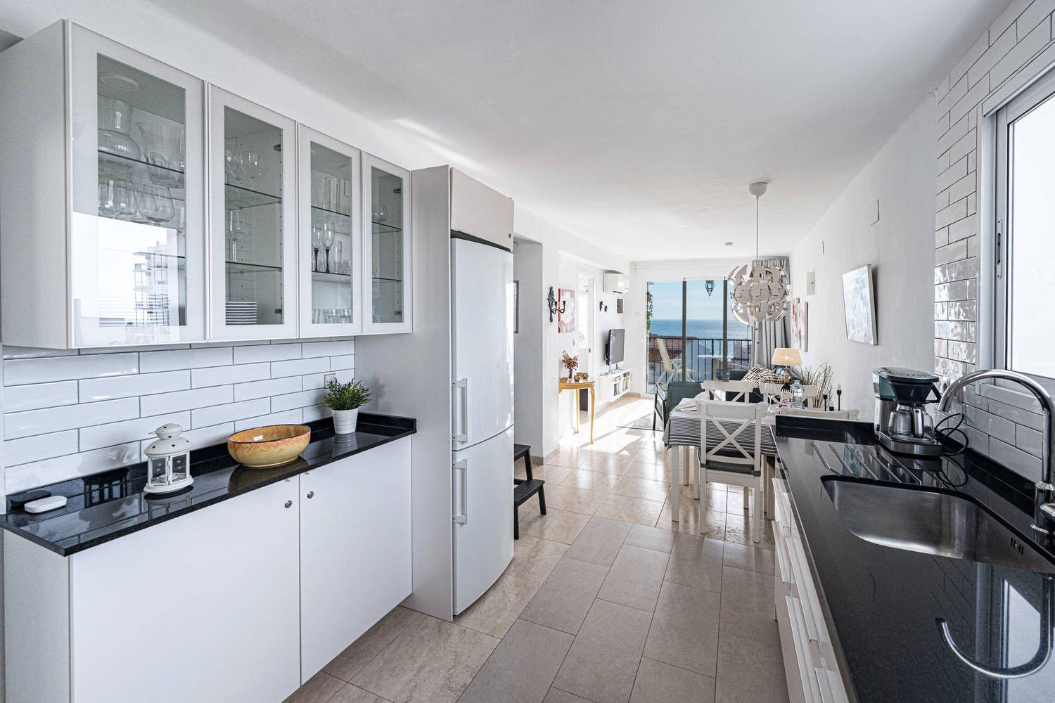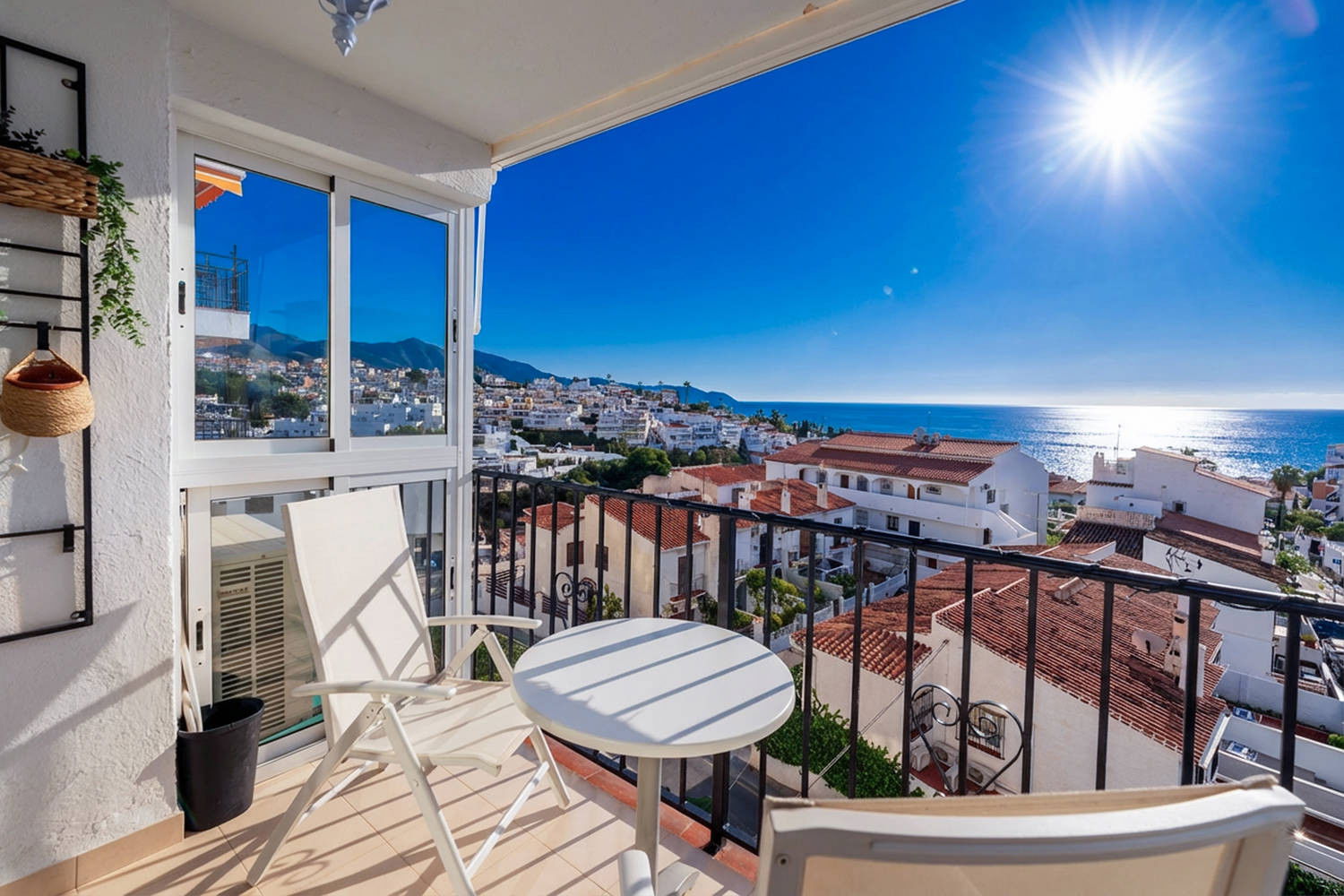 ✔ Terrasse vitrée avec vue sur les maisons blanches et la mer