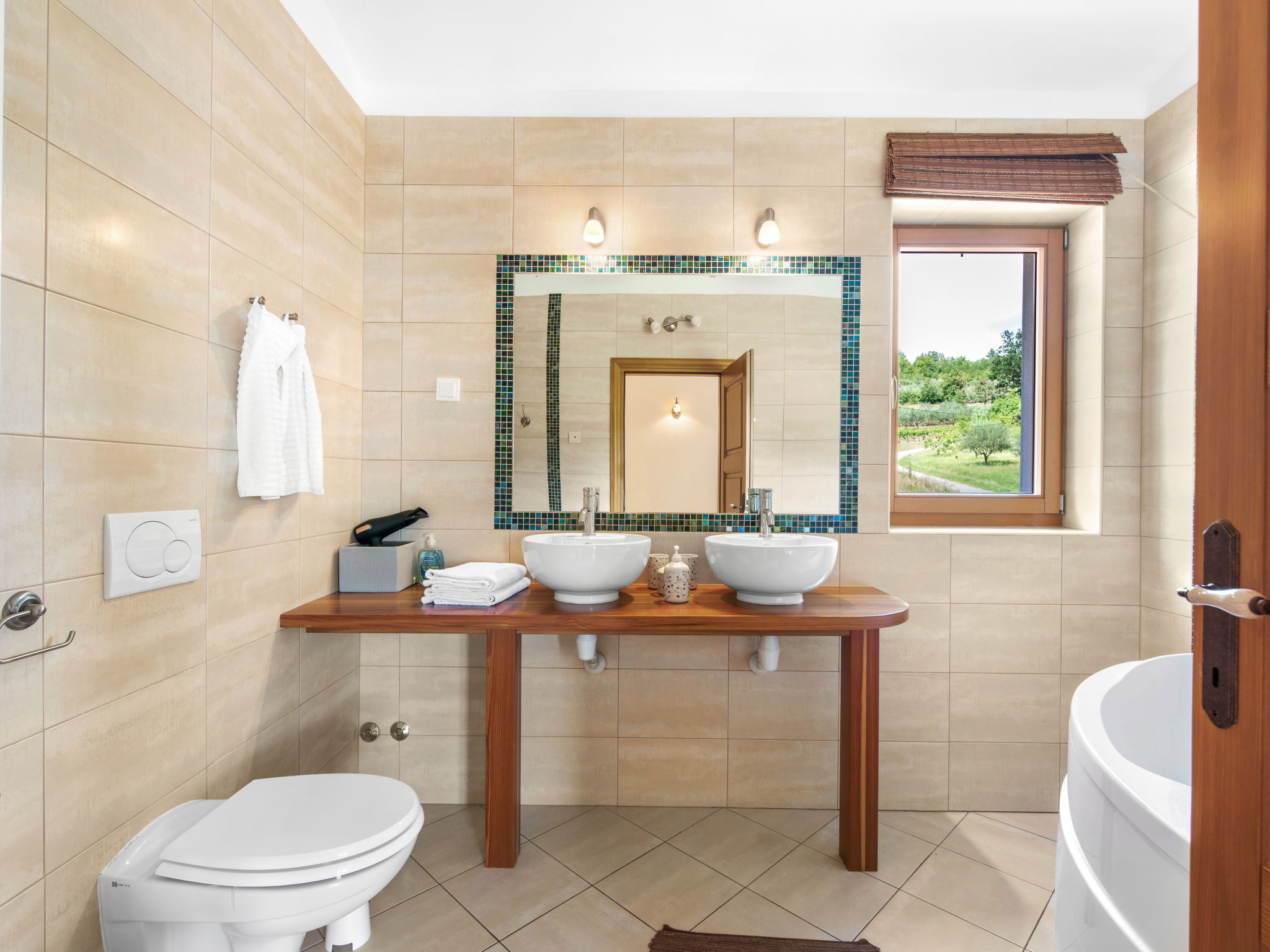 Belle villa rustique "Dol", de 2 étages. Dans le hameau de Dol, à 10 km du centre de Buzet, à 15 km du centre de Motovun, situation tranquille, à 39 km de la mer, à 40 km de la plage, dans la verdure. A usage privé: terrain 1'000 m2, piscine (8 x 4 m, 32 m2, profondeur 165 cm, disponibilité saisonnière: 01.Mai. - 01.Oct.) avec marches intérieures. Douche extérieure, bain à remous , badminton, meubles de jardin, barbecue, entretien de la piscine par le propriétaire/jardinier. Infrastructures de la Maison: accès internet, sauna, salle fitness, bain à remous (tout inclus), lave-linge. Magasins 10 km, supermarché 10 km, restaurant 7 km, arrêt de bus 10 km, gare ferroviaire 17 km. Chemins de randonnées pédestres depuis la maison, piste cyclable 50 m. Le propriétaire n'accepte pas les groupes. Le propriétaire n'accepte pas les groupes de jeunes.