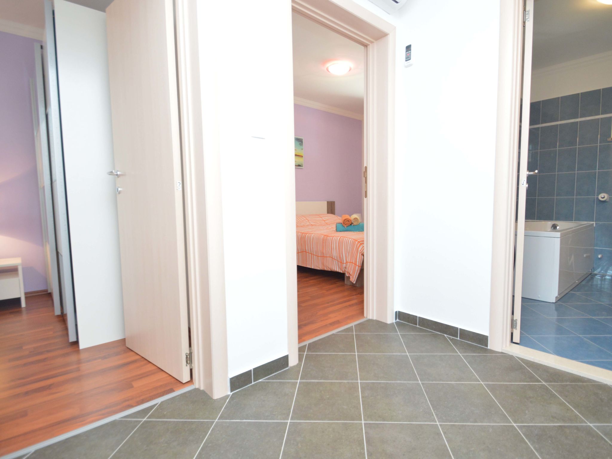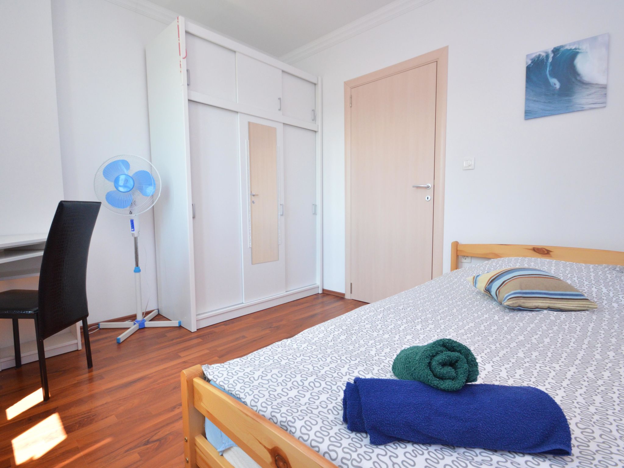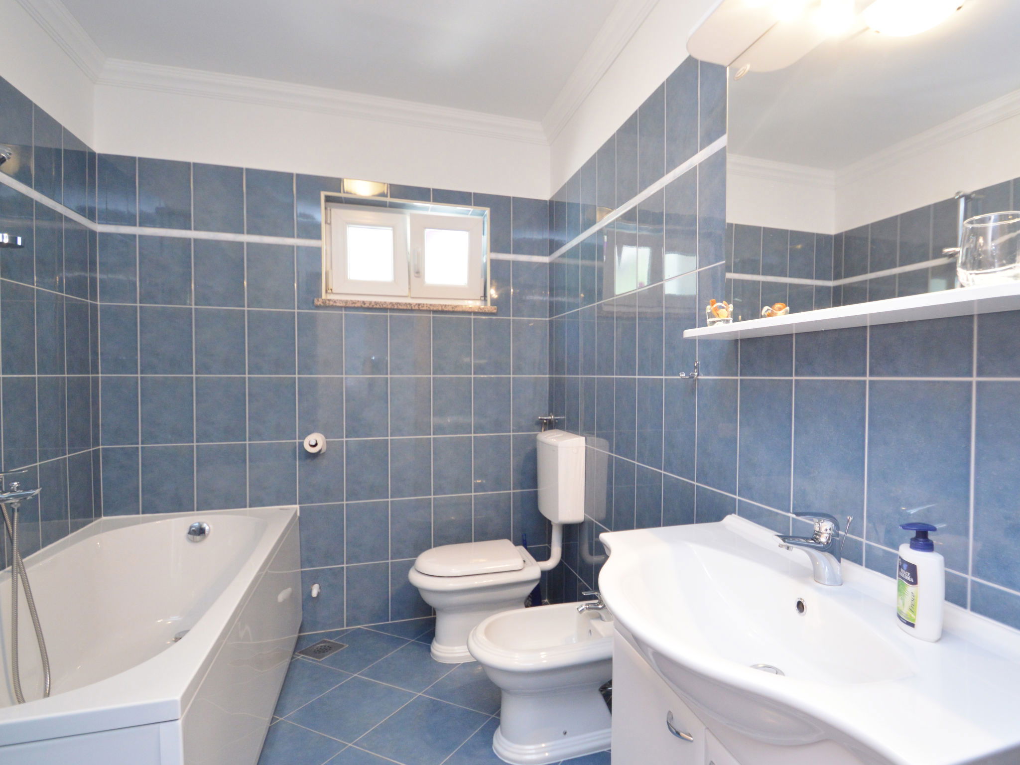 Appartement de 4 pièces 88 m2 au 1er étage. Séjour/salle à manger avec TV (satellite) (écran plat). Sortie sur la terrasse. Entrée avec air-conditionné. 2 chambres, chaque chambre avec: 1 grand-lit (180 cm, longueur 200 cm). 1 chambre avec 1 lit (120 cm, longueur 200 cm). Cuisine ouverte (4 plaques de cuisson, four, micro-ondes, congélateur). Bain/bidet/WC, douche/WC. Terrasse 25 m2, couverte. Meubles de terrasse. Superbe vue panoramique sur la mer. A disposition: lave-linge. Internet (Connexion WIFI, gratuit). Maximum 1 animal/ chien autorisé.