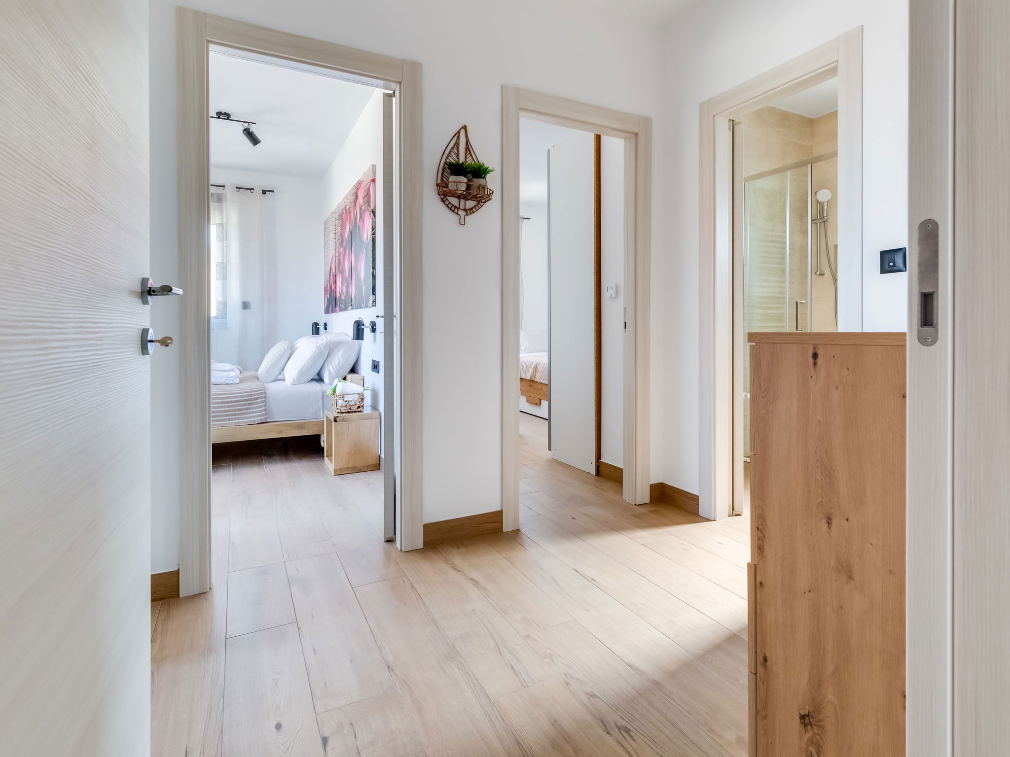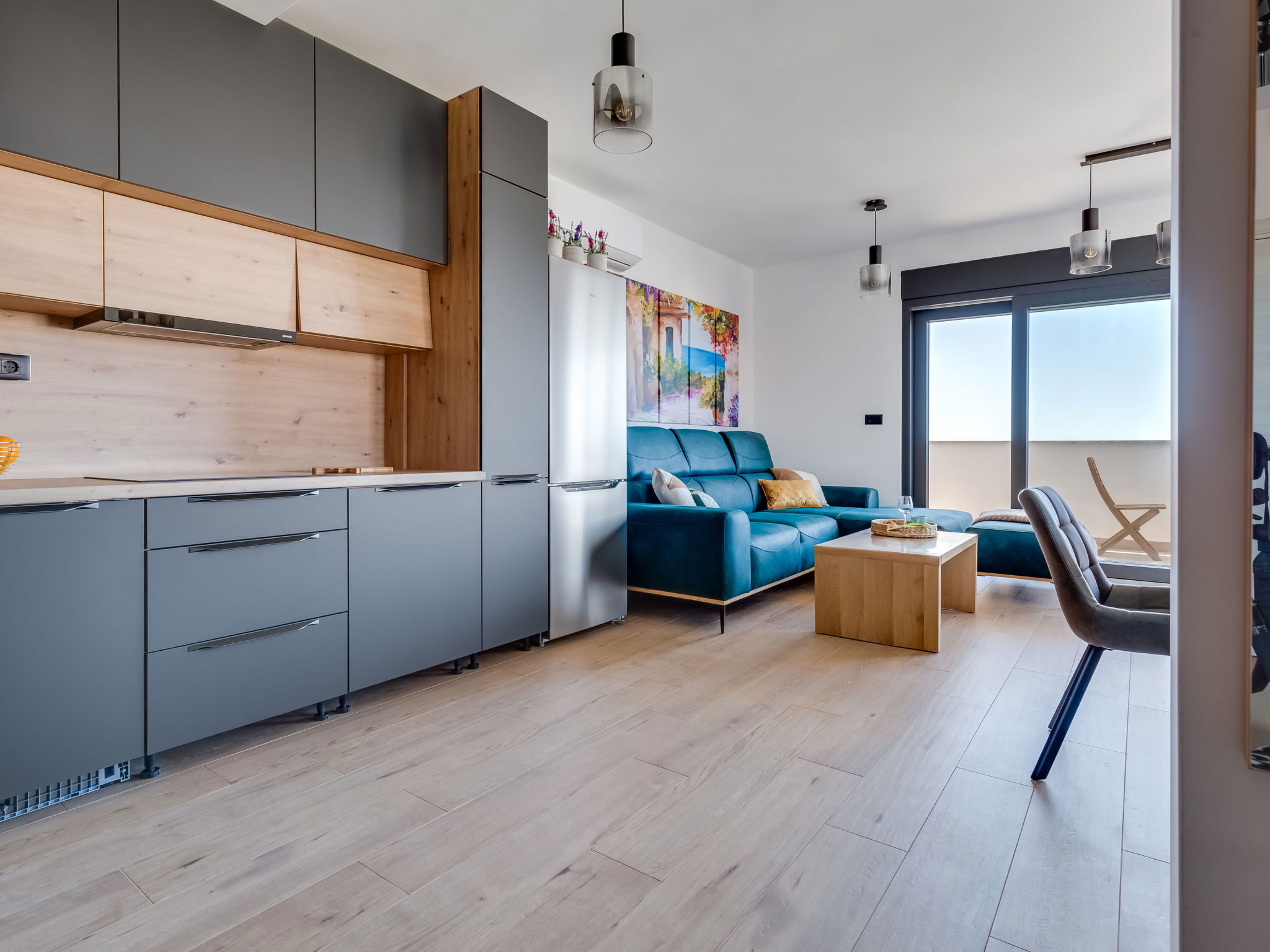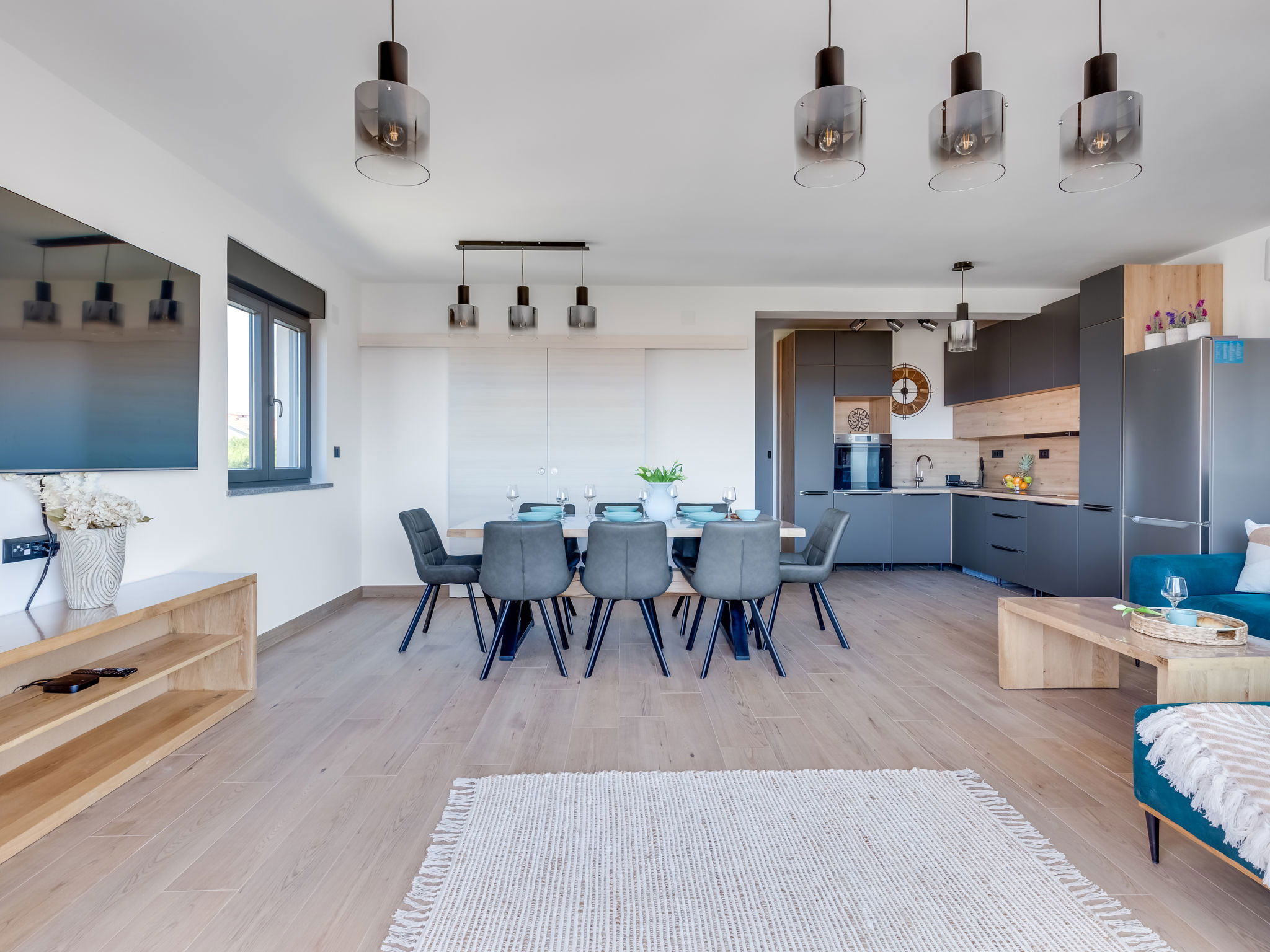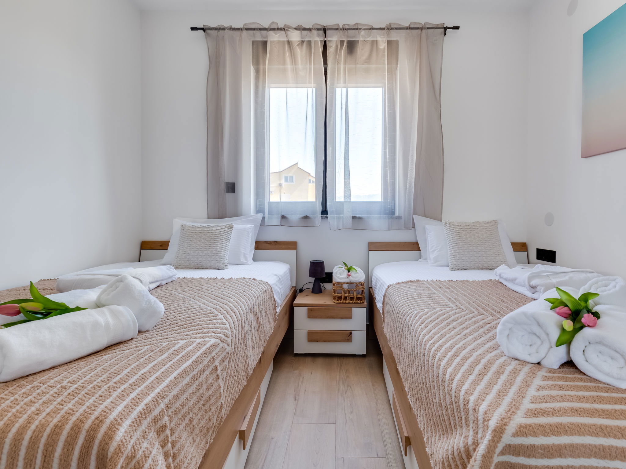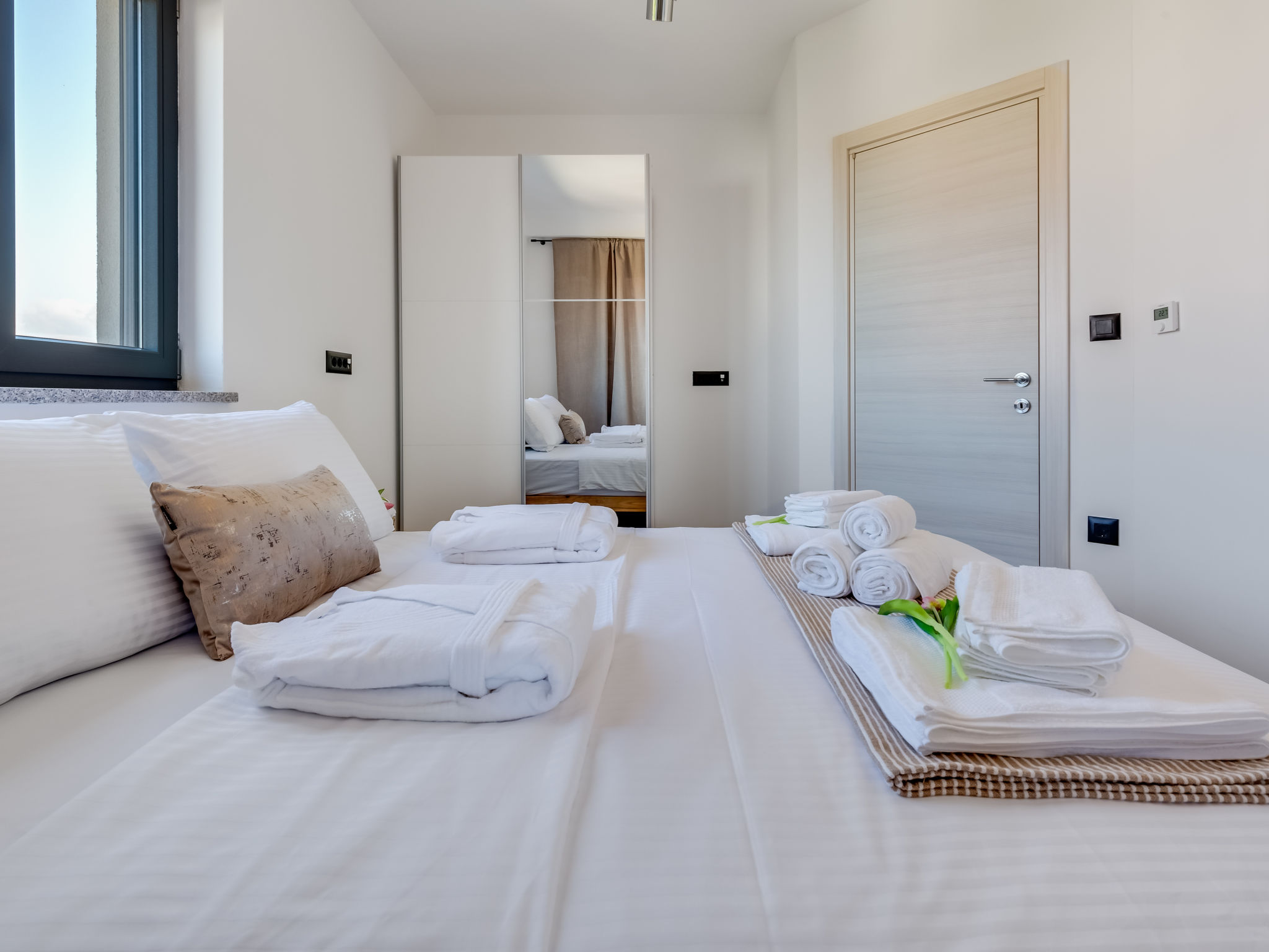 Appartement de sous les toits 4 pièces 110 m2 au 2ème étage, situation sud-ouest. Séjour/salle à manger 50 m2 avec TV (câblée) et chaînes de TV internationales (écran plat), air-conditionné. Sortie sur la terrasse. Entrée avec air-conditionné. 1 chambre avec 1 grand-lit (160 cm, longueur 200 cm). 1 chambre avec 1 grand-lit (180 cm, longueur 200 cm). 1 chambre avec 2 lits (120 cm, longueur 200 cm). Cuisine ouverte (four, lave-vaisselle, 4 plaques à induction, congélateur, cafetière électrique). Bain/WC, douche/WC. Chauffage par le sol. Terrasse 10 m2, couverte. Meubles de terrasse. Vue panoramique sur la mer. A disposition: lave-linge, coffre-fort, sèche-cheveux. Internet (Connexion WIFI, gratuit). Maximum 1 animal/ chien autorisé.