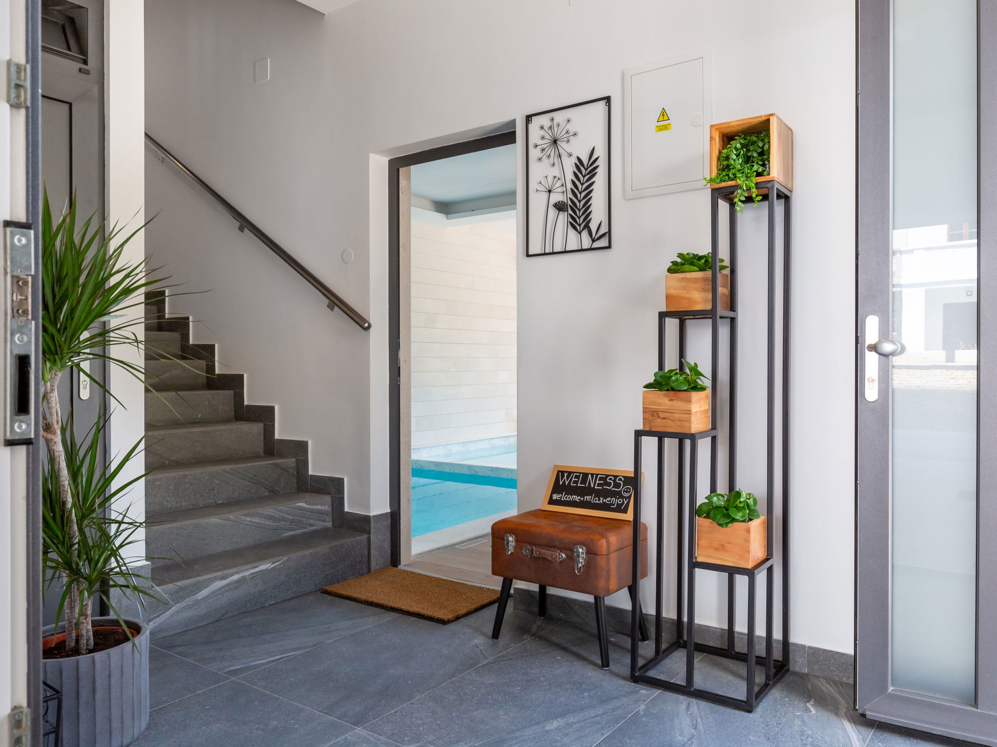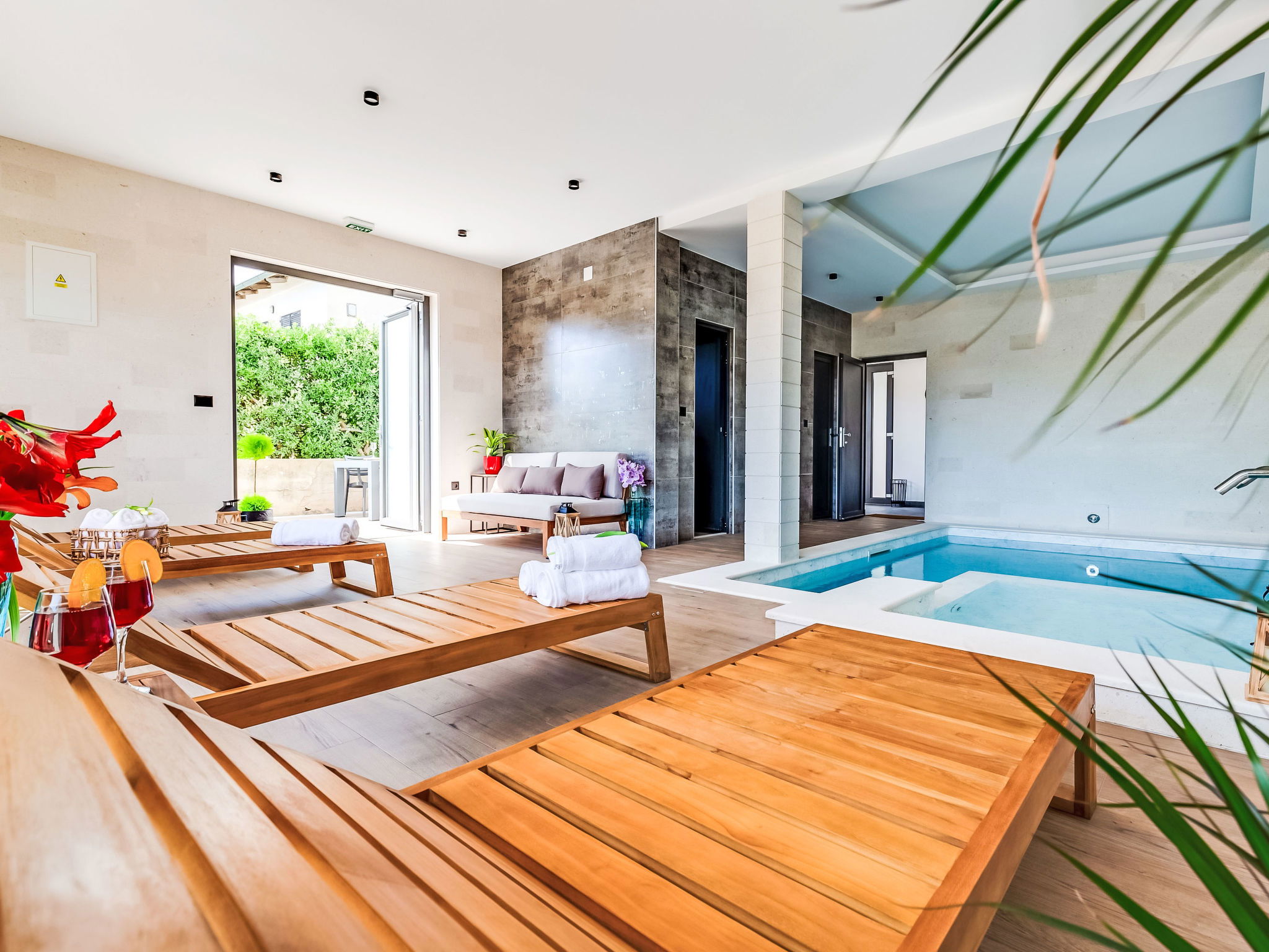 Immeuble "Luxury Villa Terra Maiorum", année de construction 2024. À 100 m du centre de Povljana, à 13 km du centre de Pag, situation ensoleillée, à 1 km de la mer, à 1 km de la plage. En commun: terrain 380 m2, piscine couverte chauffée (17 m2, profondeur 140 cm, disponibilité saisonnière: 01.Jan. - 31.Dec.) avec marches intérieures. WC dans l'espace piscine, bassin pour les enfants, meubles de jardin, espace barbecue. Infrastructures de la Maison: accès internet. Accès en voiture jusqu'à la maison. Place de parking (pour 5 voitures). Magasins 80 m, restaurant 500 m, boulangerie 170 m, arrêt de bus 14.5 km, plage de sable 1 km plage de graviers 1.2 km. Veuillez noter: Aéroport 60 km de la maison.