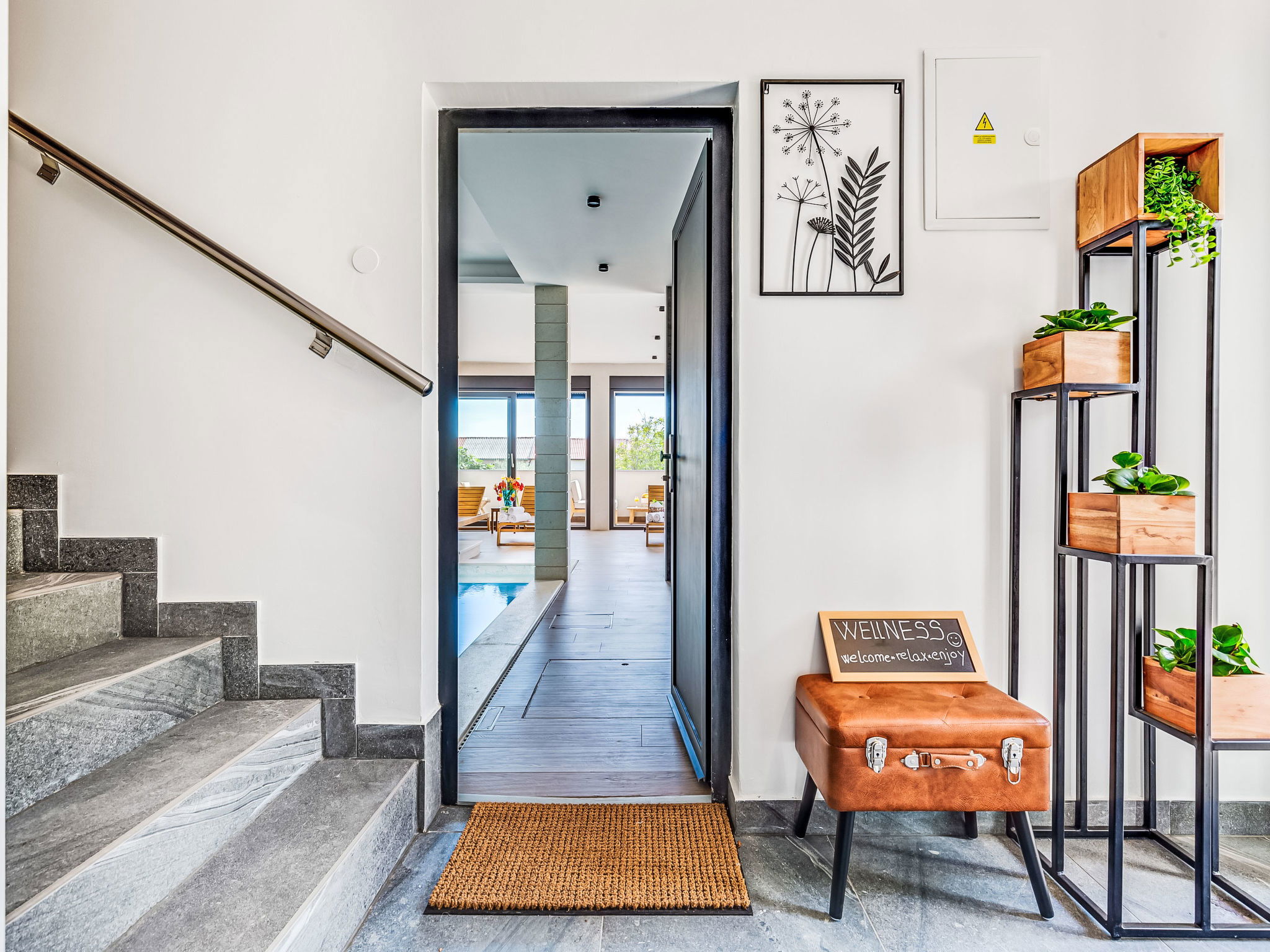 Immeuble "Luxury Villa Terra Maiorum", année de construction 2024. À 100 m du centre de Povljana, à 13 km du centre de Pag, situation ensoleillée, à 1 km de la mer, à 1 km de la plage. En commun: terrain 380 m2, piscine couverte chauffée (17 m2, profondeur 140 cm, disponibilité saisonnière: 01.Jan. - 31.Dec.) avec marches intérieures. WC dans l'espace piscine, bassin pour les enfants, meubles de jardin, espace barbecue. Infrastructures de la Maison: accès internet. Accès en voiture jusqu'à la maison. Place de parking (pour 5 voitures). Magasins 80 m, restaurant 500 m, boulangerie 170 m, arrêt de bus 14.5 km, plage de sable 1 km plage de graviers 1.2 km. Veuillez noter: Aéroport 60 km de la maison.