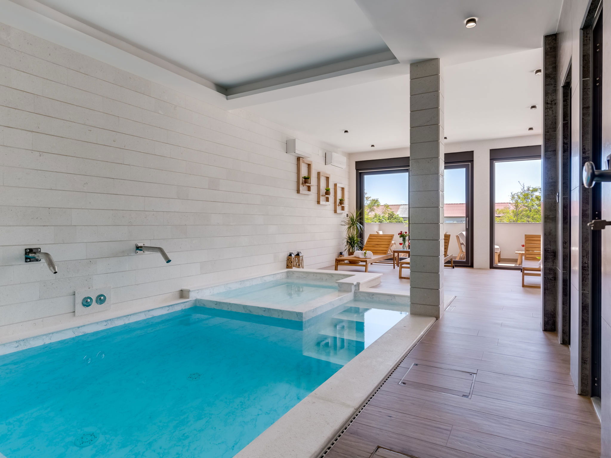 Immeuble "Luxury Villa Terra Maiorum", année de construction 2024. À 100 m du centre de Povljana, à 13 km du centre de Pag, situation ensoleillée, à 1 km de la mer, à 1 km de la plage. En commun: terrain 380 m2, piscine couverte chauffée (17 m2, profondeur 140 cm, disponibilité saisonnière: 01.Jan. - 31.Dec.) avec marches intérieures. WC dans l'espace piscine, bassin pour les enfants, meubles de jardin, espace barbecue. Infrastructures de la Maison: accès internet. Accès en voiture jusqu'à la maison. Place de parking (pour 5 voitures). Magasins 80 m, restaurant 500 m, boulangerie 170 m, arrêt de bus 14.5 km, plage de sable 1 km plage de graviers 1.2 km. Veuillez noter: Aéroport 60 km de la maison.