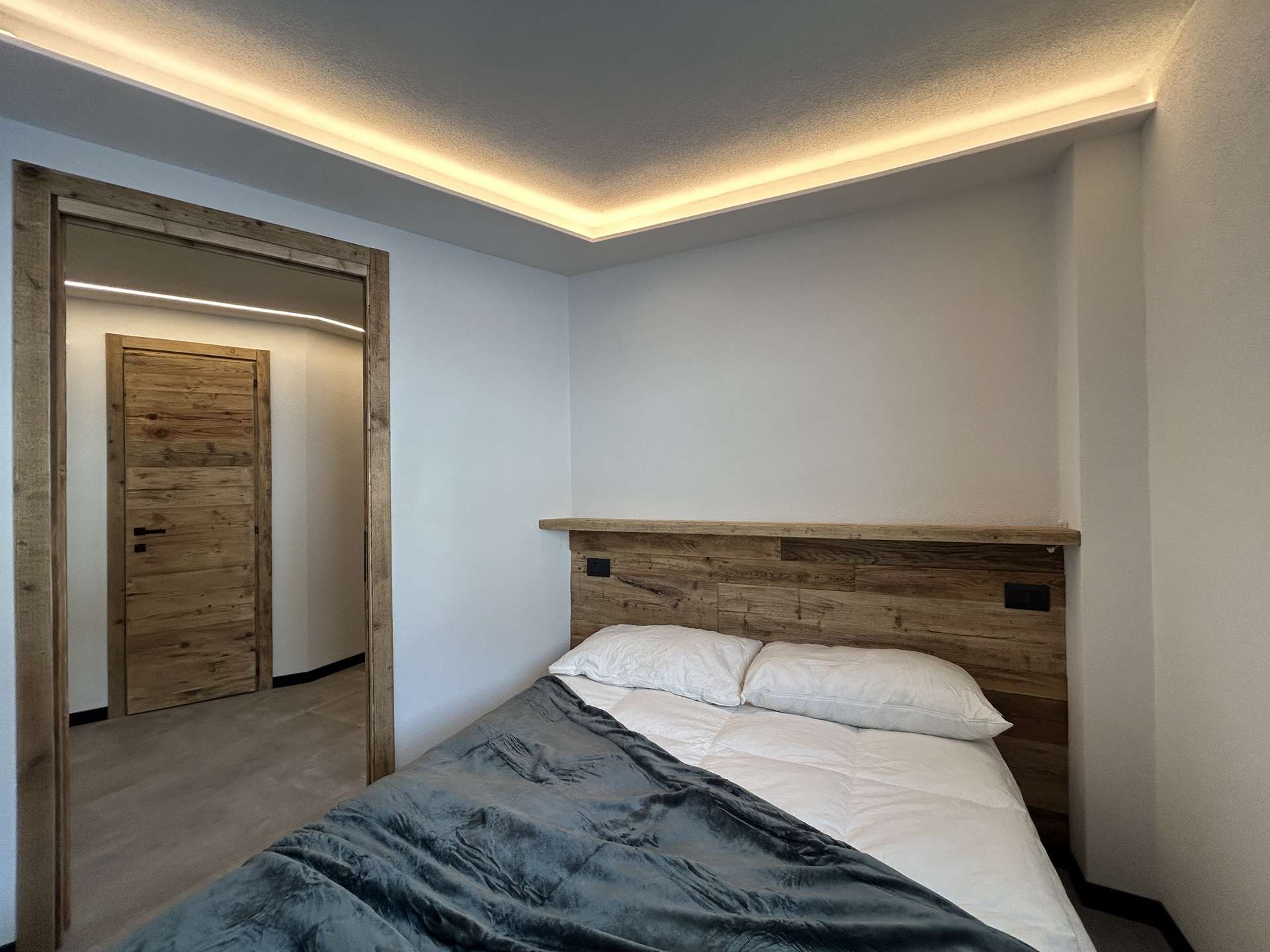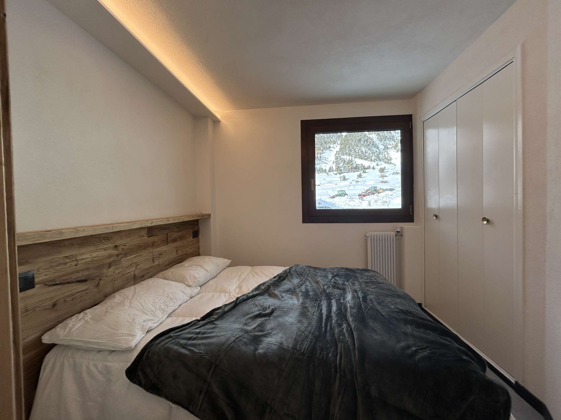 - Chambre 1 avec 1 lit double en 140x200 cm (avec caisson) et placard mural
