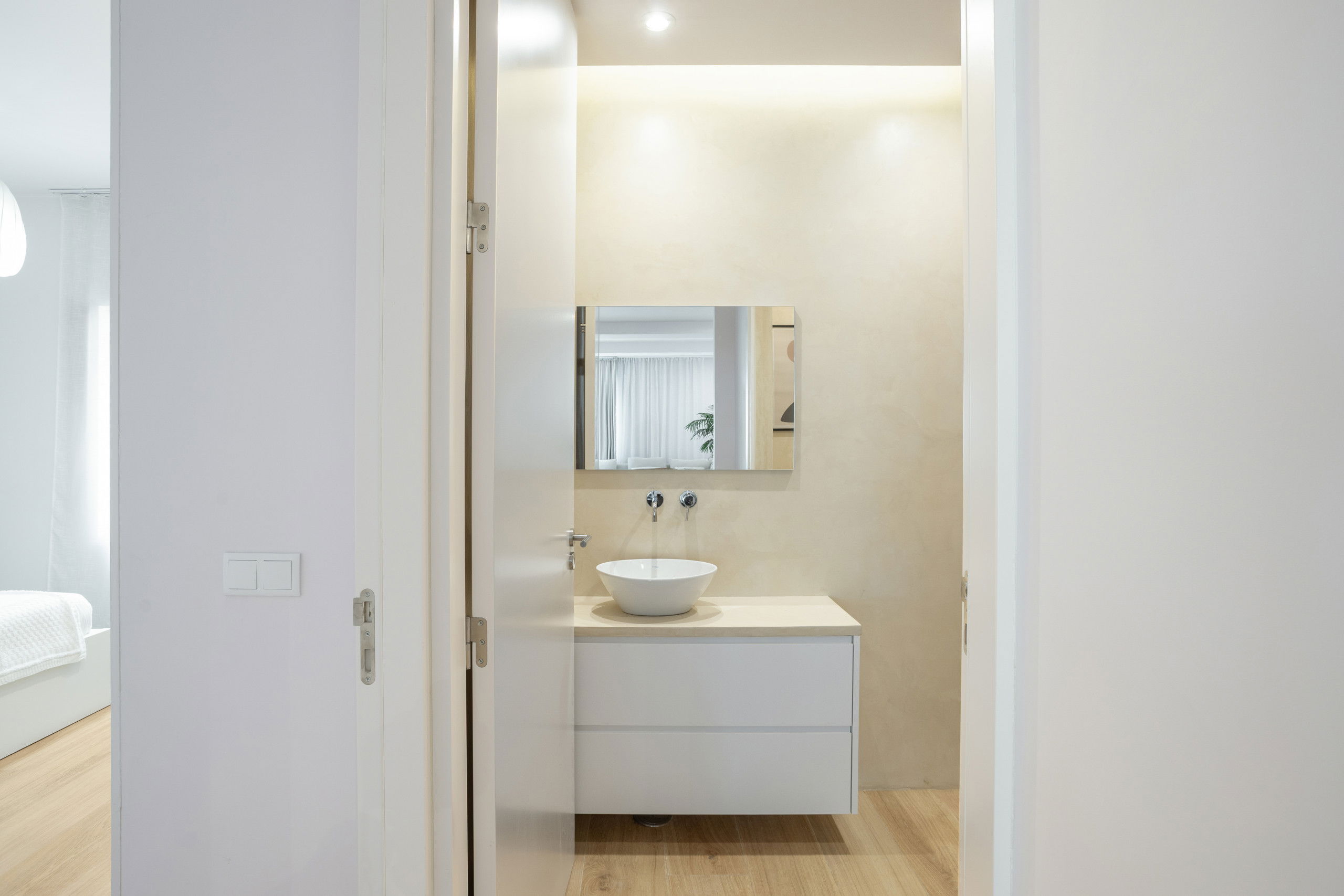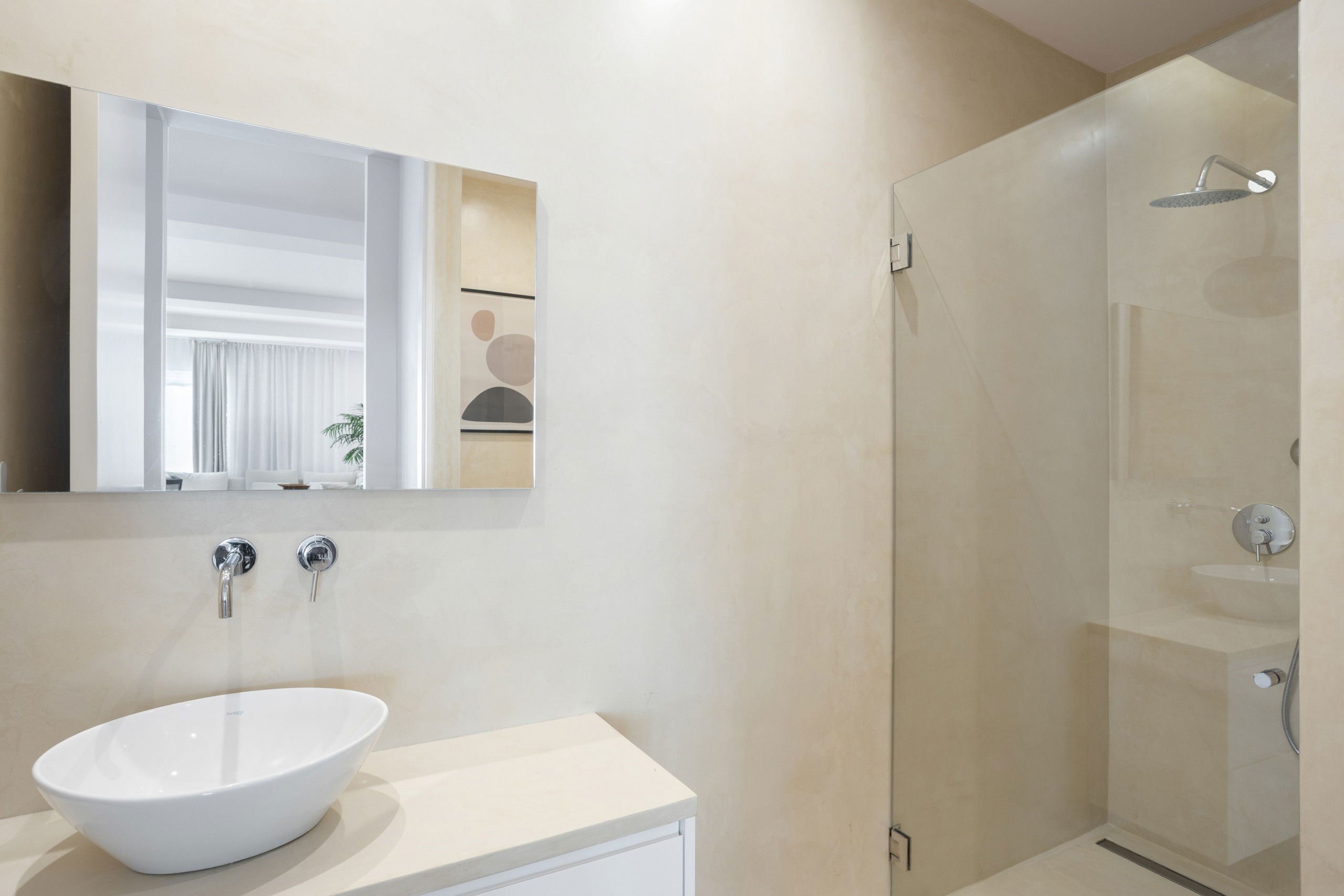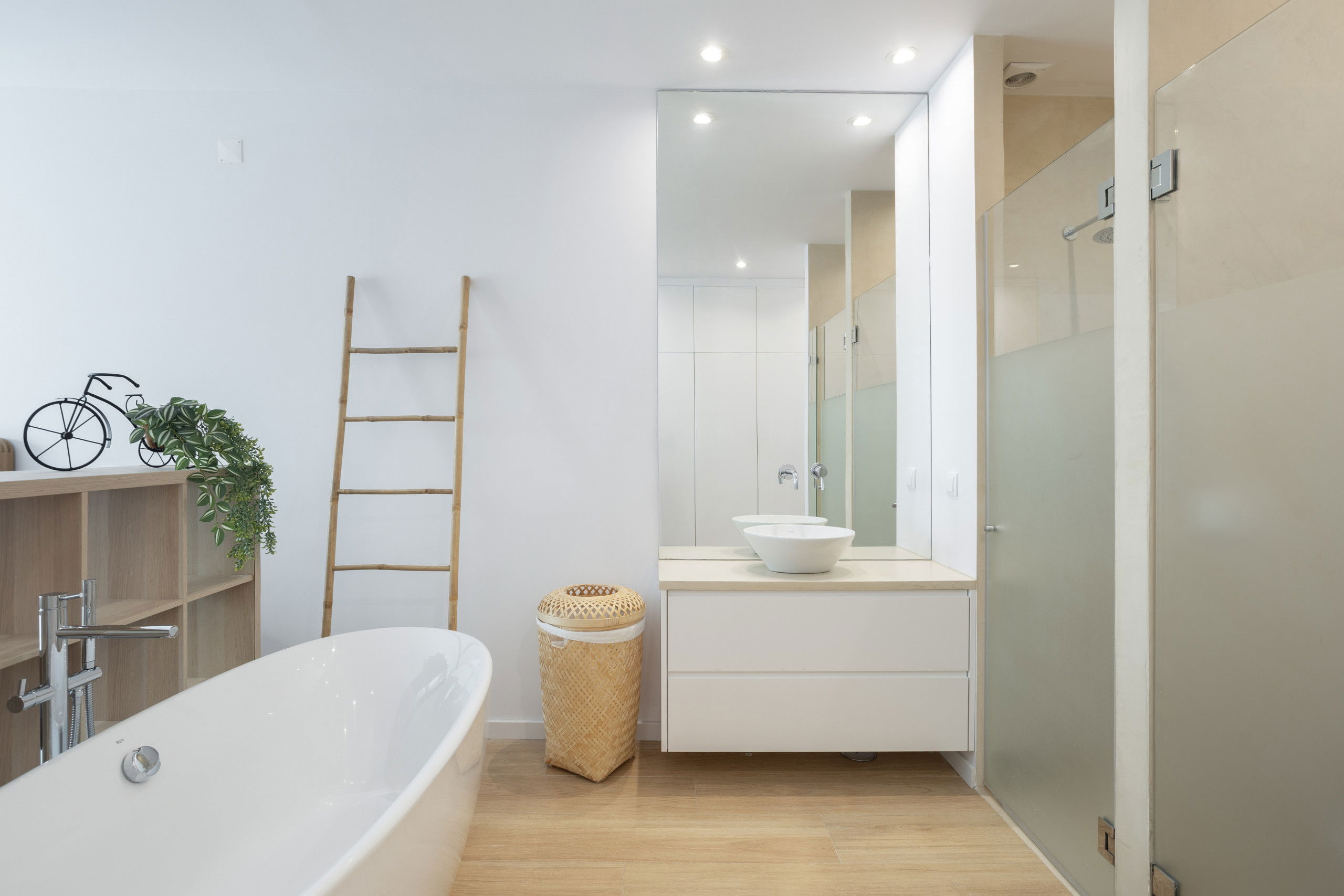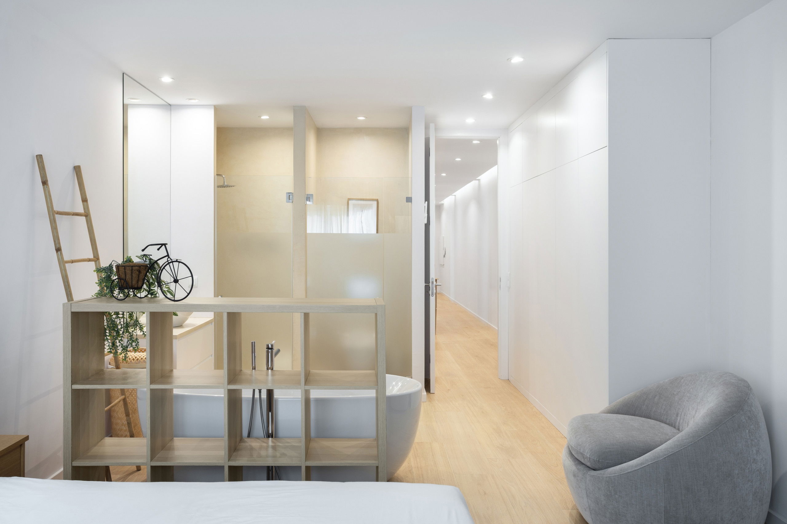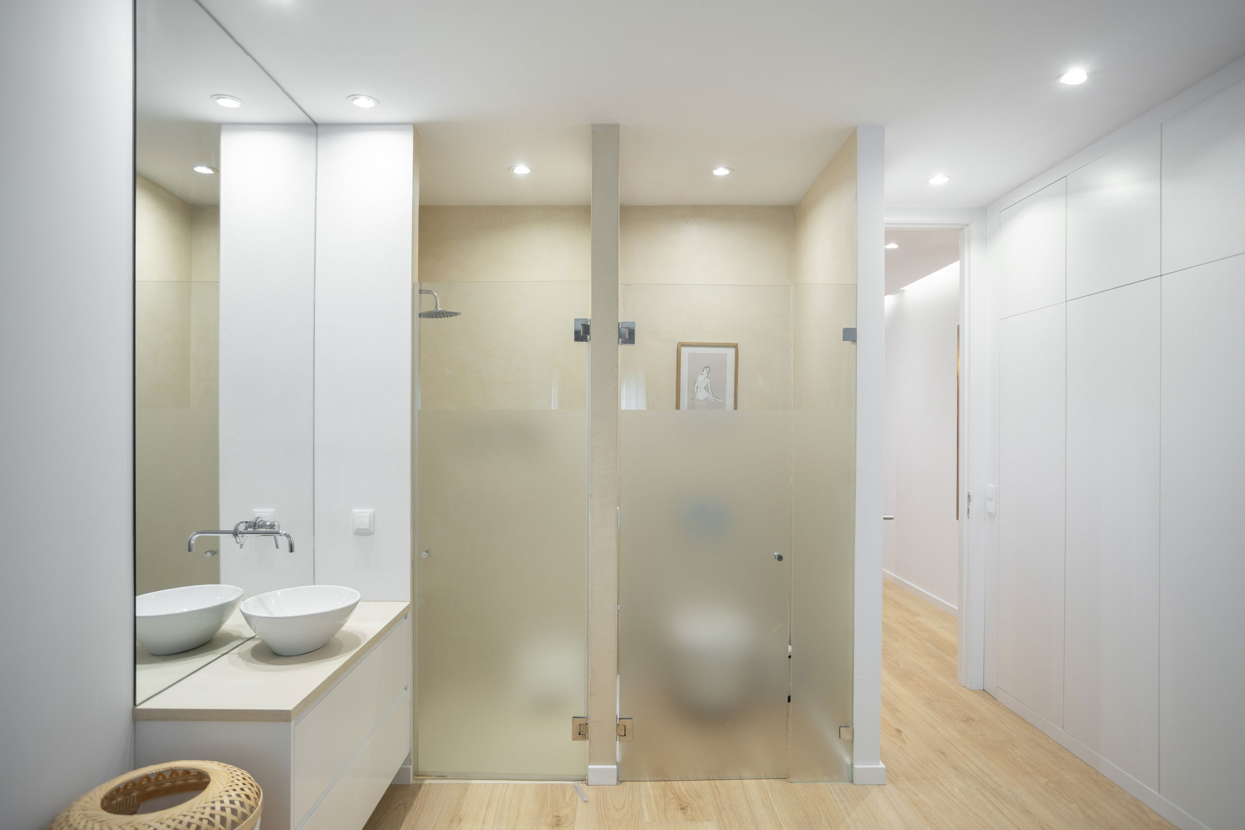 La zone de bain est généreuse, avec 4 salles de bain au total - 3 avec douche et 1 avec baignoire, permettant à tous de se préparer confortablement pour la journée ou de se détendre après les aventures à Lisbonne.