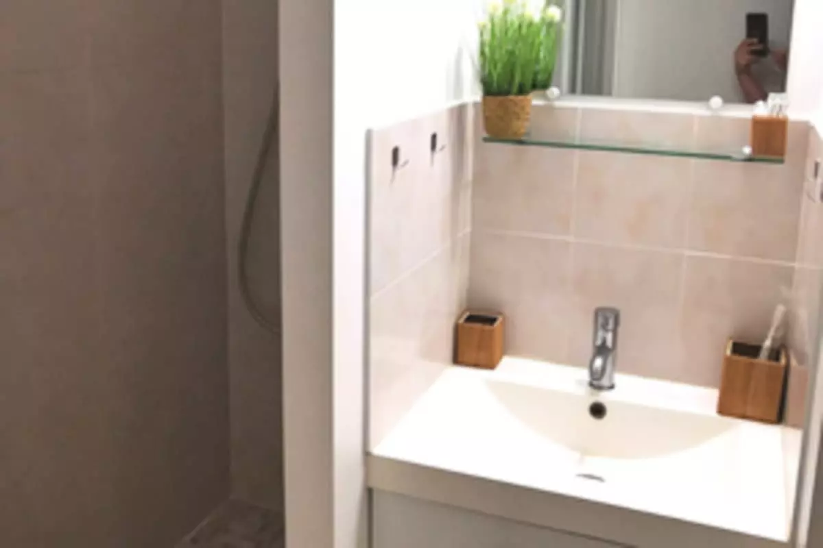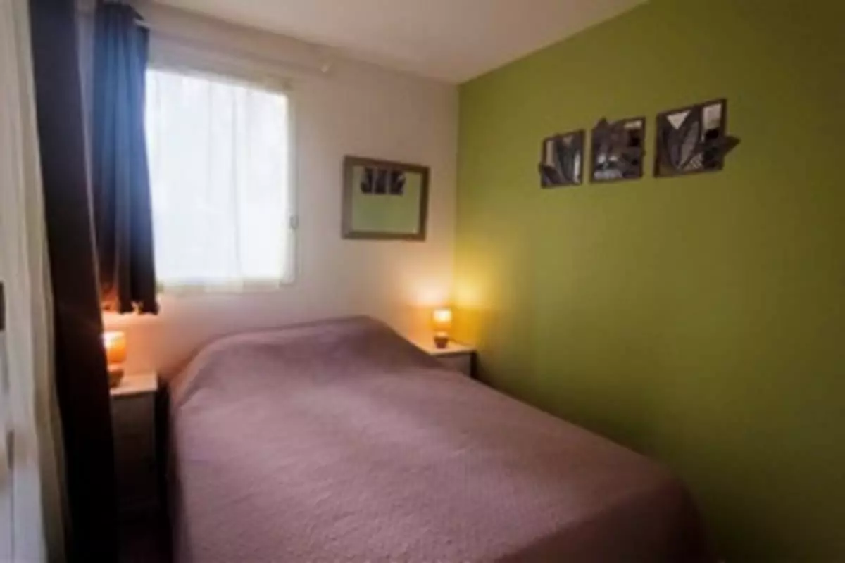 Situé dans une magnifique résidence verdoyante, il comprend une chambre accueillante avec un lit double 140x190, une salle de douche fonctionnelle, une cuisine entièrement équipée ainsi qu’un espace salon doté d’un canapé convertible 140x200.