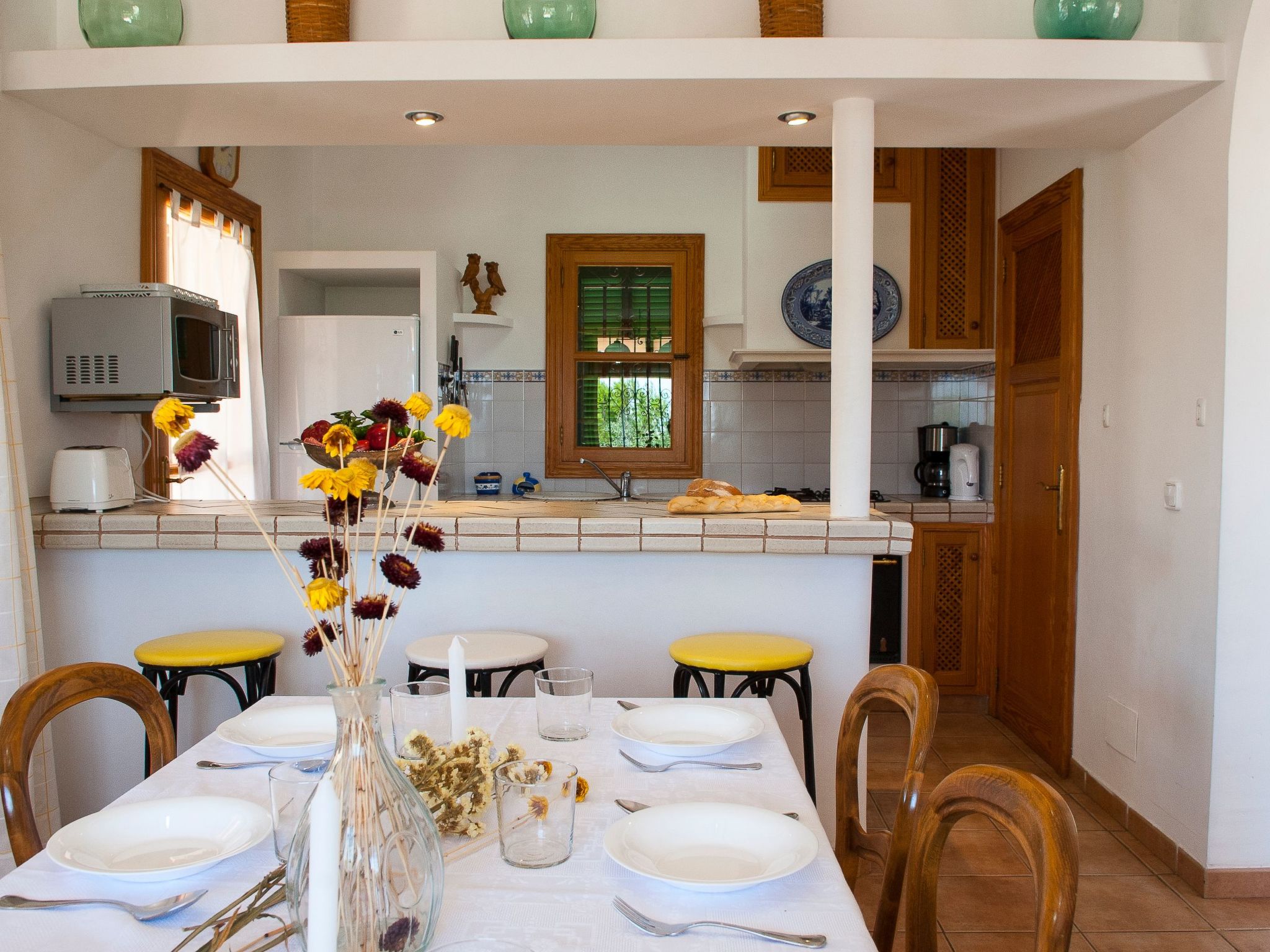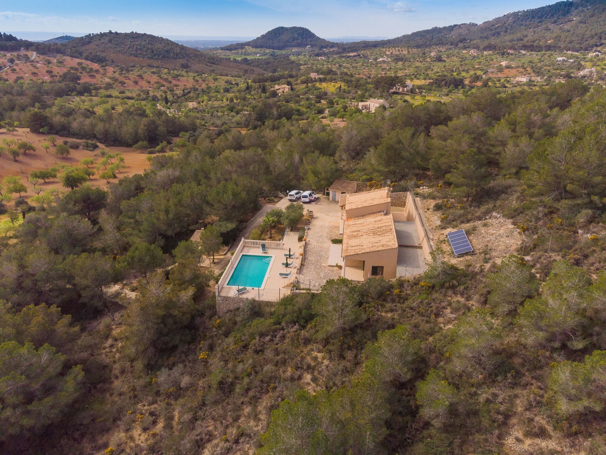 Maria Magdalena Golf is a charming little finca in an unsurpassable location above the well-known golf course "Vall Dor" with views over the south-east coast of Mallorca. The golf course is approx. 2 km away and has a bar and restaurant that are well worth a visit. The small village of S Horta is 3 km away; here you have the opportunity to shop, there are banks and bars. The tourist stronghold of Cala Dor with its sandy bays is just 7 km away and the typical fishing harbour of Portocolom can be reached in a few minutes by car. Let yourself be enchanted by the harbour flair there.