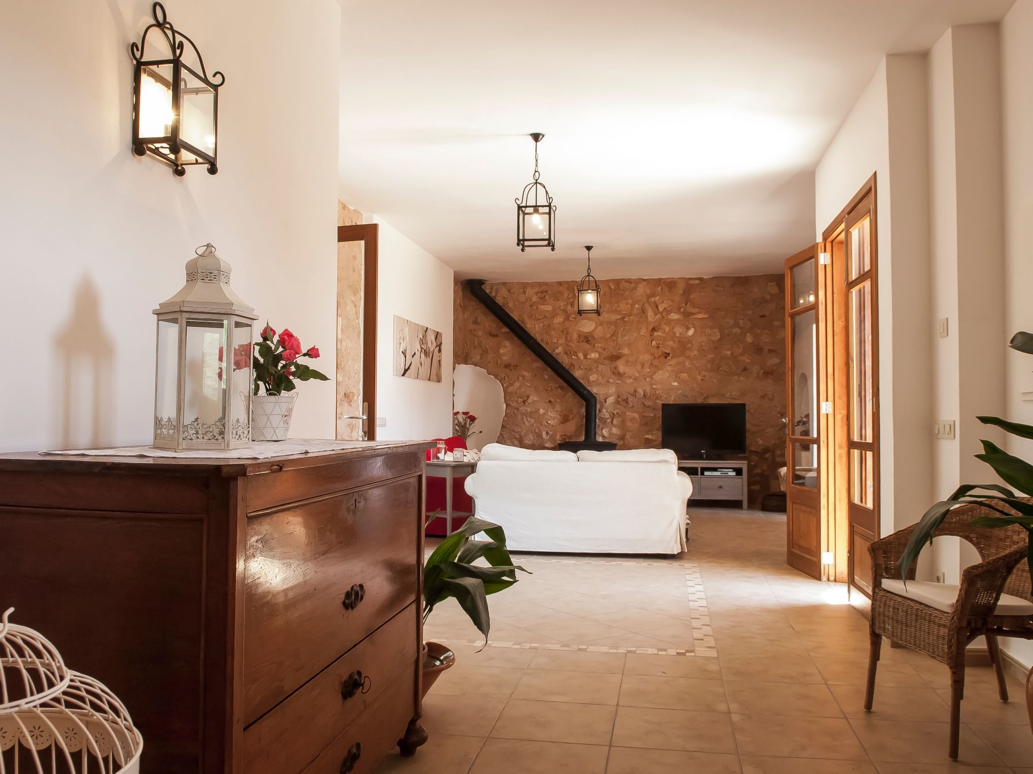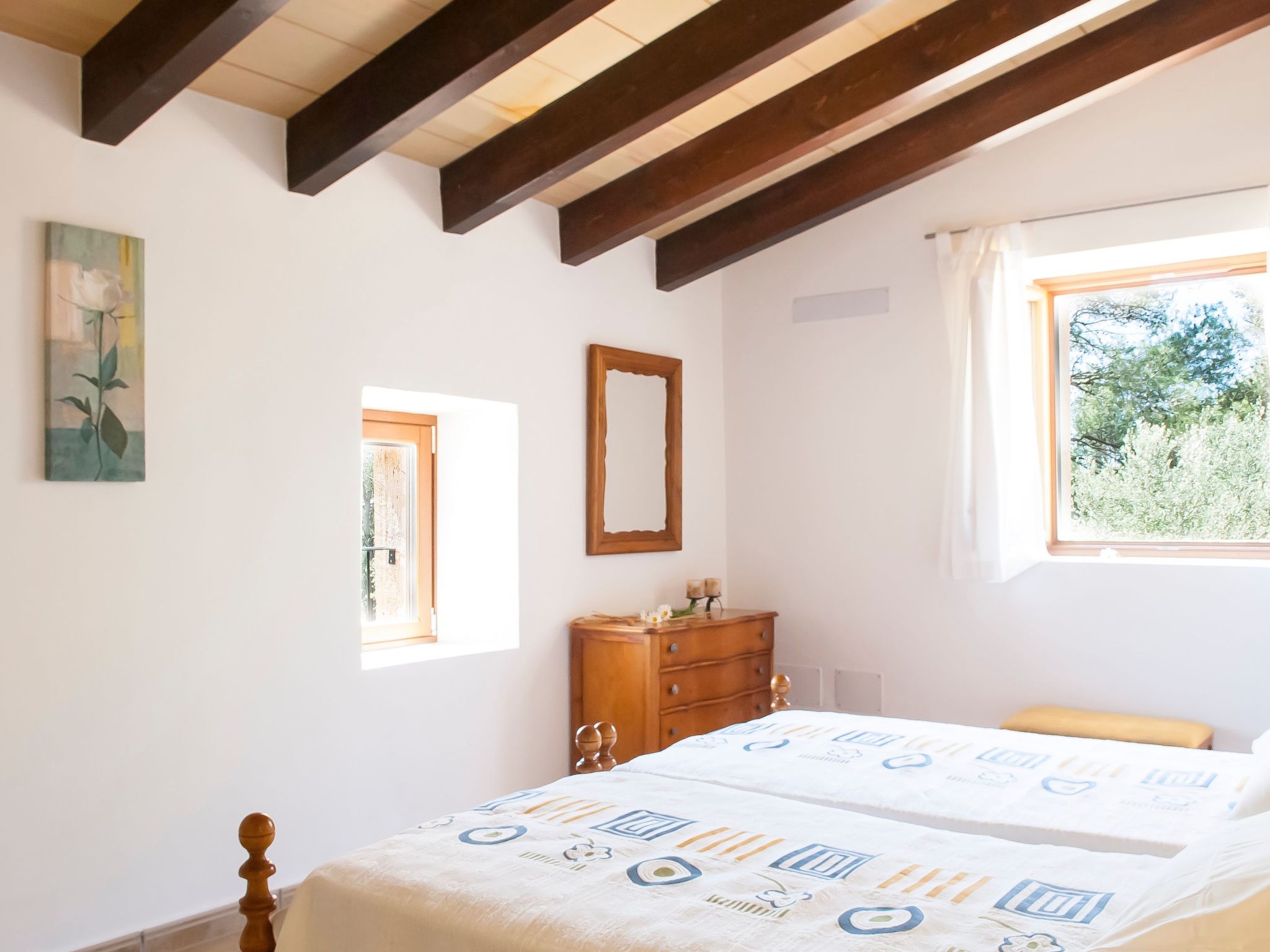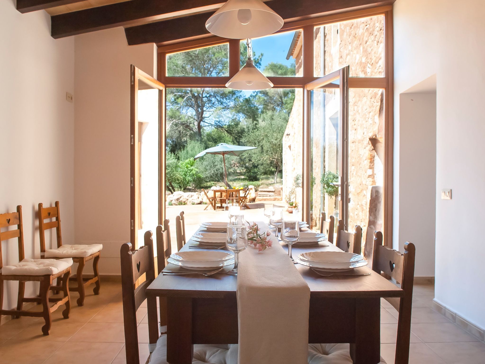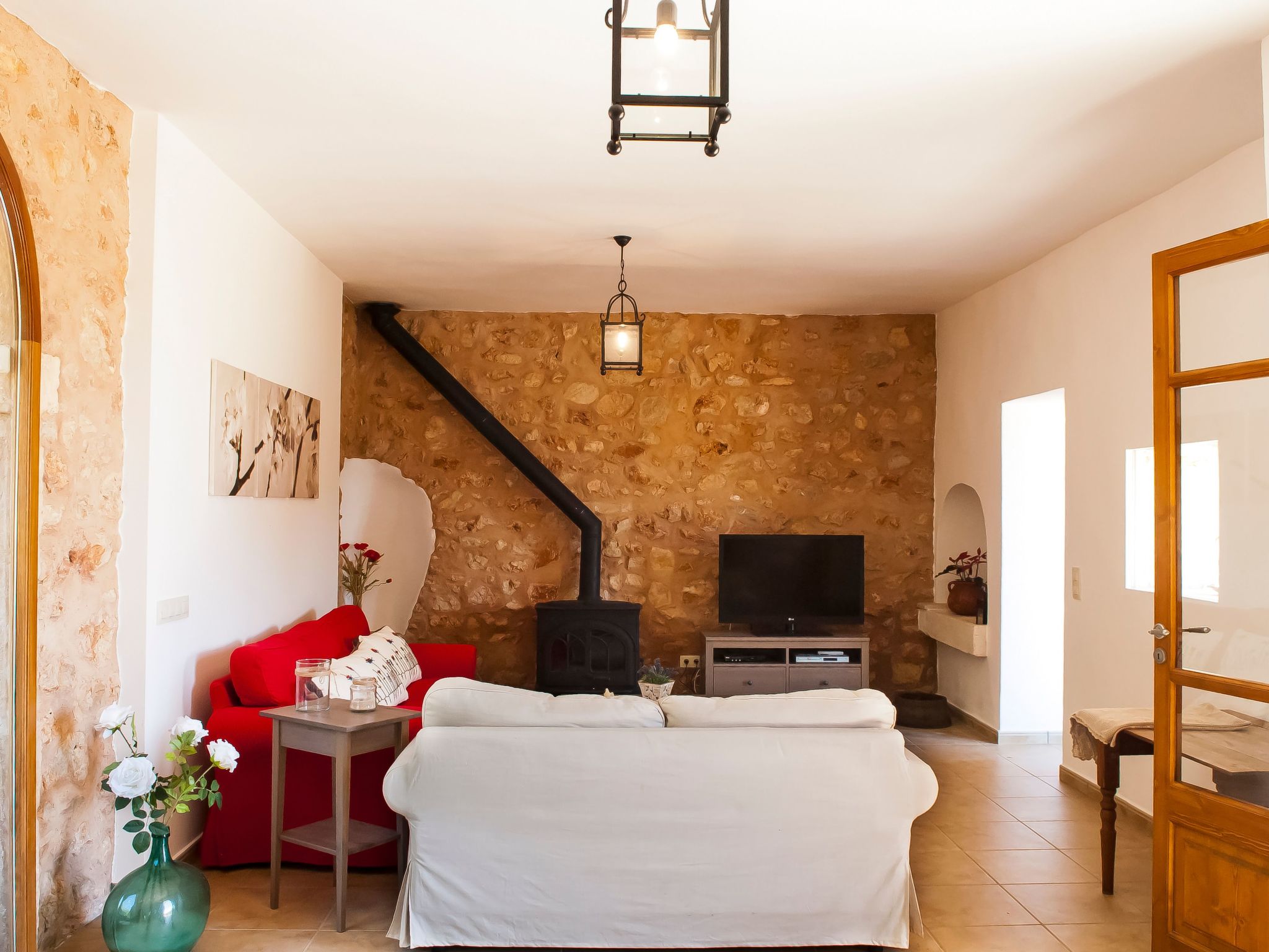 Salas Nou is a beautifully designed country house with plenty of natural light that has been completely renovated. The original house was built more than 100 years ago. It has the charm of the typical Mallorcan country house with a wonderful mix of rustic details such as natural stone walls, high ceilings with wooden beams combined with comfortable, modern furniture. From the entrance you enter directly into the living room with a wood-burning stove. The large, open-plan kitchen/dining area with a beautiful wooden dining table is spacious, light-flooded and well-equipped. From here, large glass doors lead out onto the terrace in front of the house. From the kitchen there is access to a double bedroom which has an en-suite bathroom with shower. On the other side of the house there is a bedroom with an en-suite shower room. A guest WC is located near the entrance. The upper floor has a double and a twin bedroom with views of the pool and the surrounding area. These two bedrooms share a bathroom with bath and separate shower.
