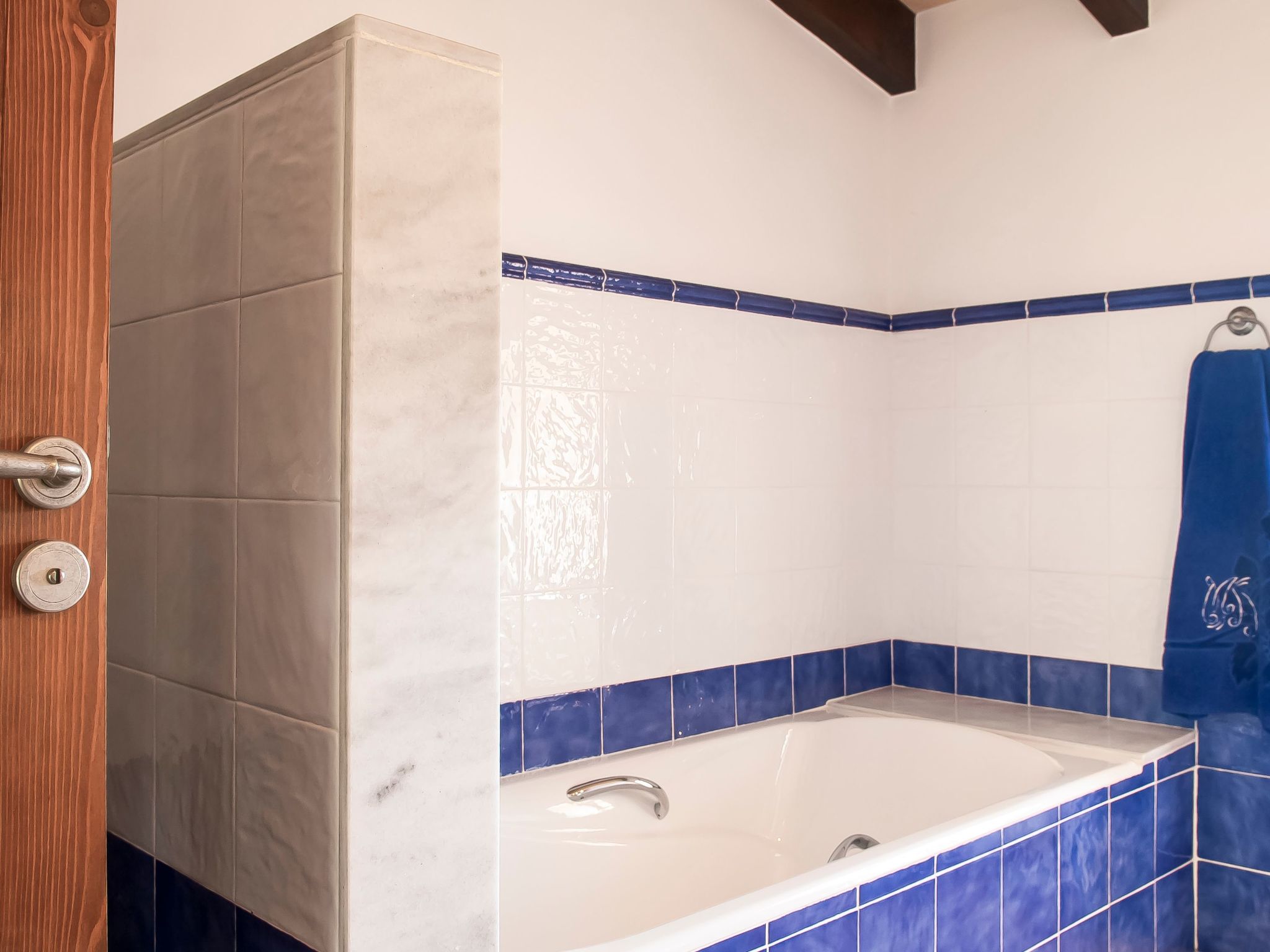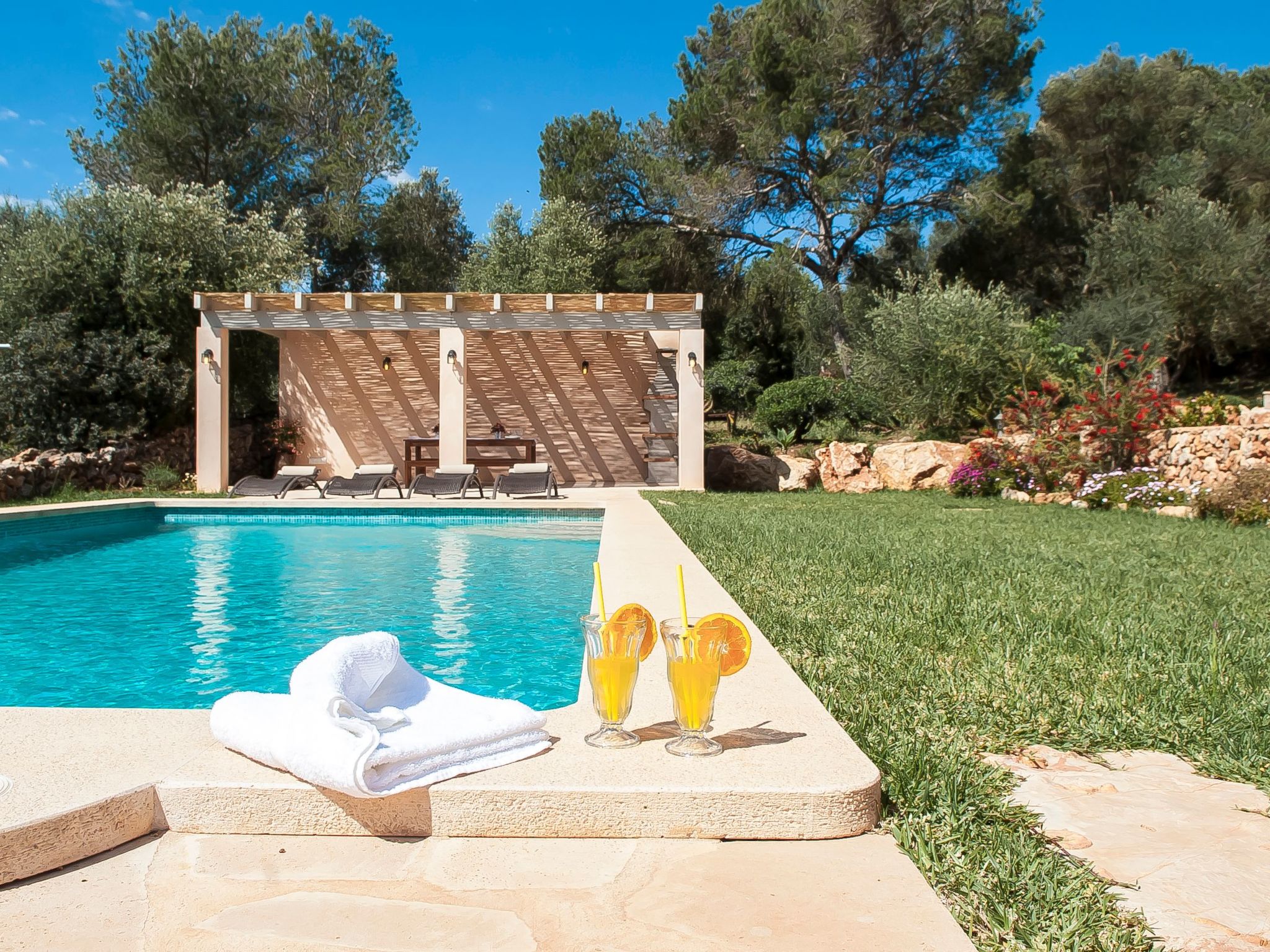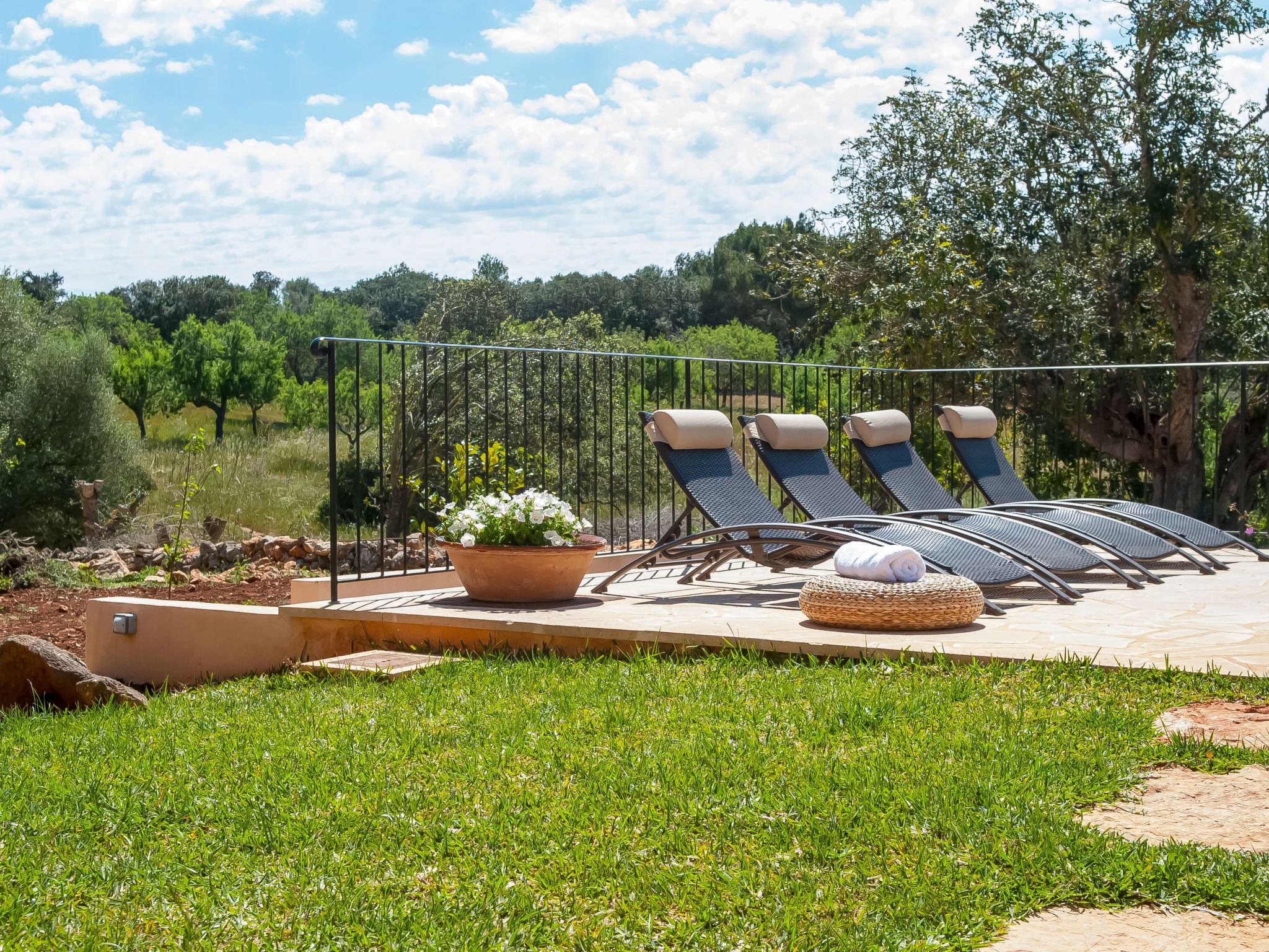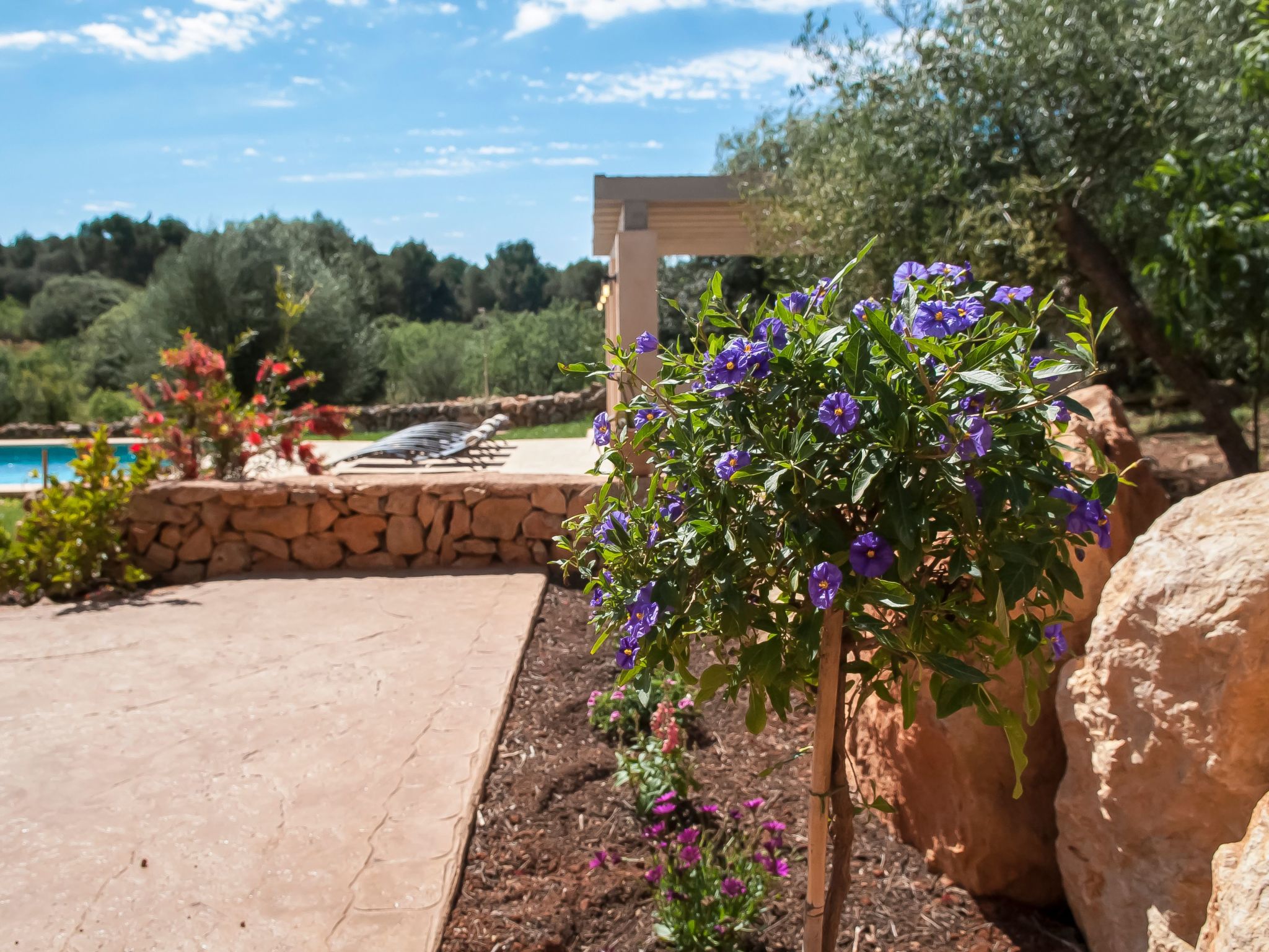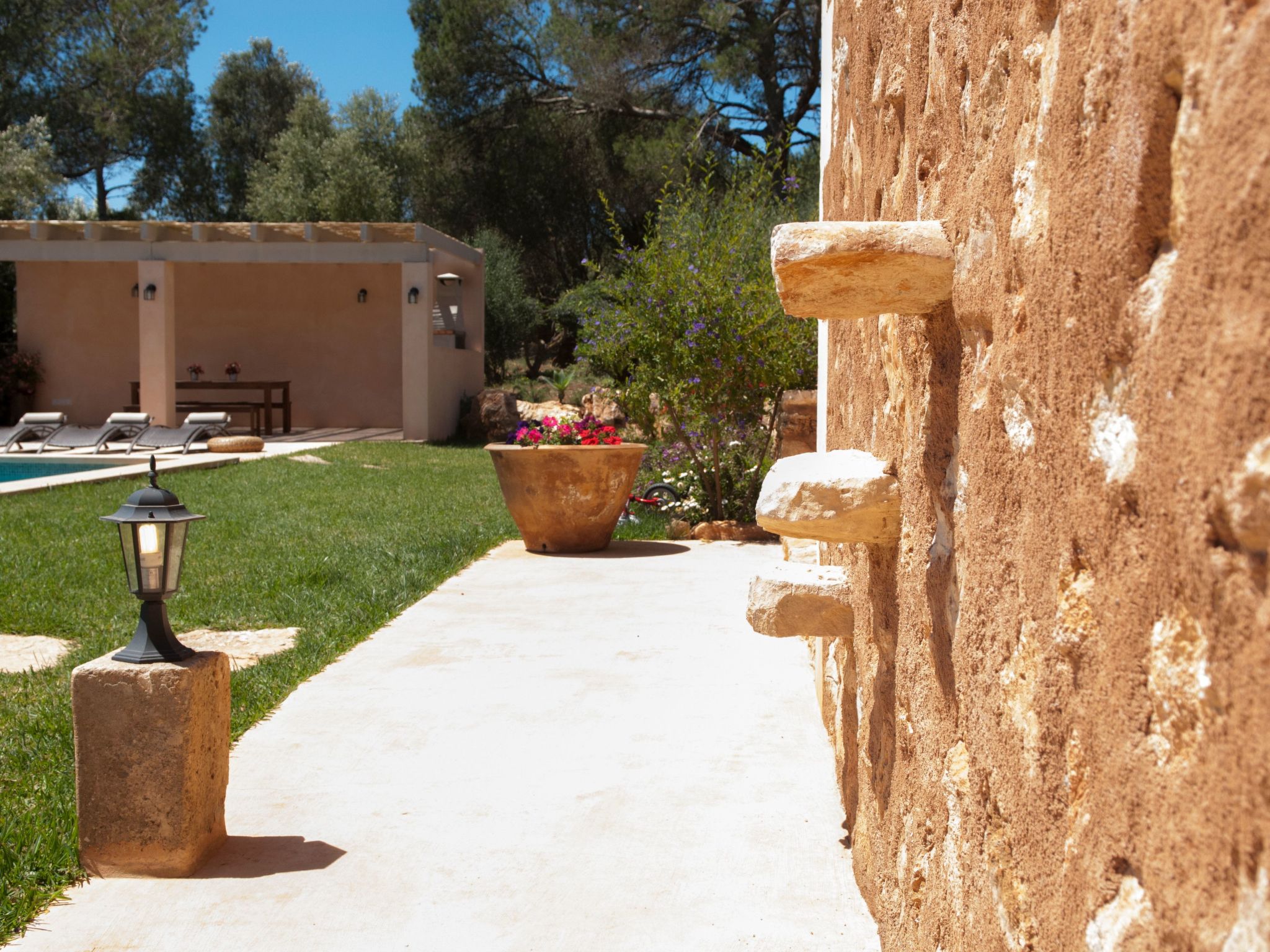There is no better place to enjoy peace and tranquillity. Salas Nou is located in a beautiful area surrounded by bushes, wild olive trees, pines and carob trees. Take a refreshing dip in the swimming pool (9m. x 4.5m depth min 0.90 - max 1.60) with Roman steps. By the pool there is a small terrace with comfortable sun loungers where you can relax and read your favourite book. There are lawned areas and a lovely covered terrace with barbecue, ideal for preparing 'al fresco' dinners on the brick barbecue and enjoying the balmy summer evenings. There is also a pizza oven which you are welcome to use.