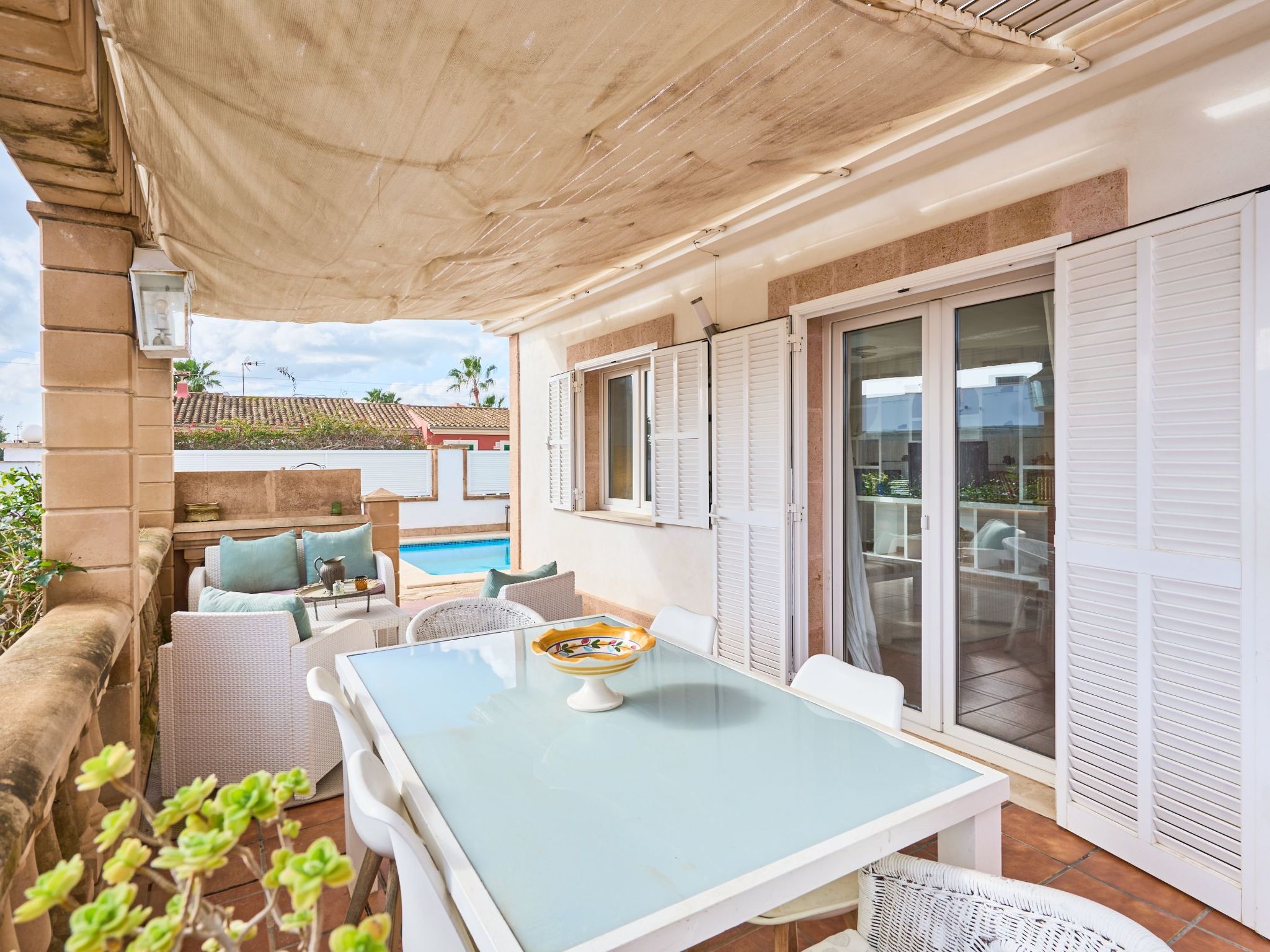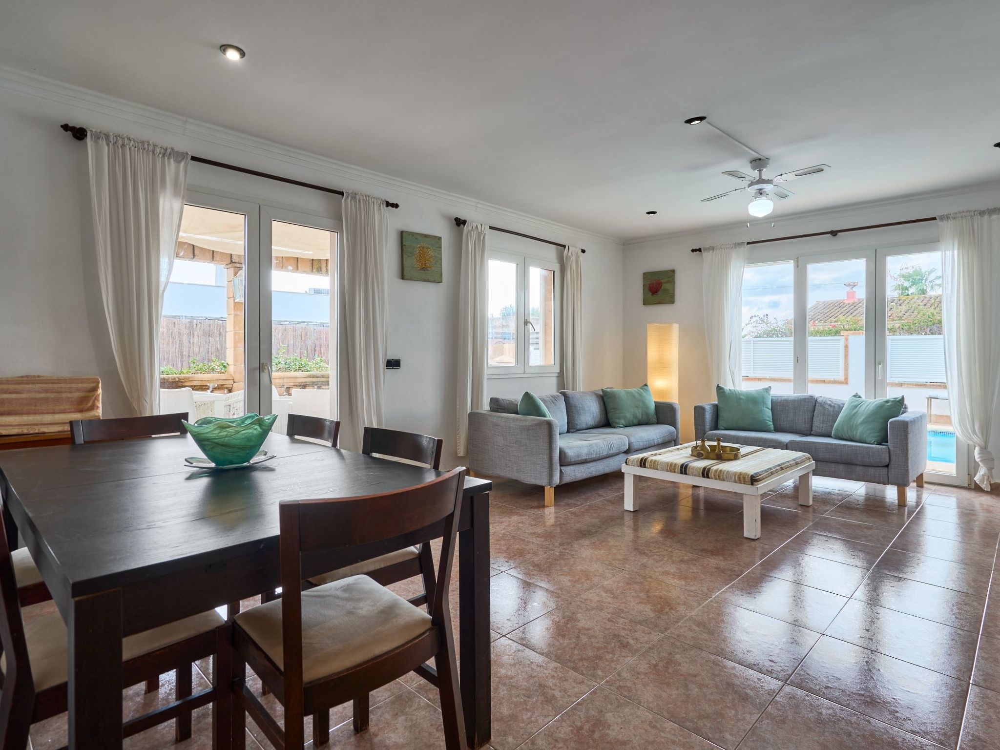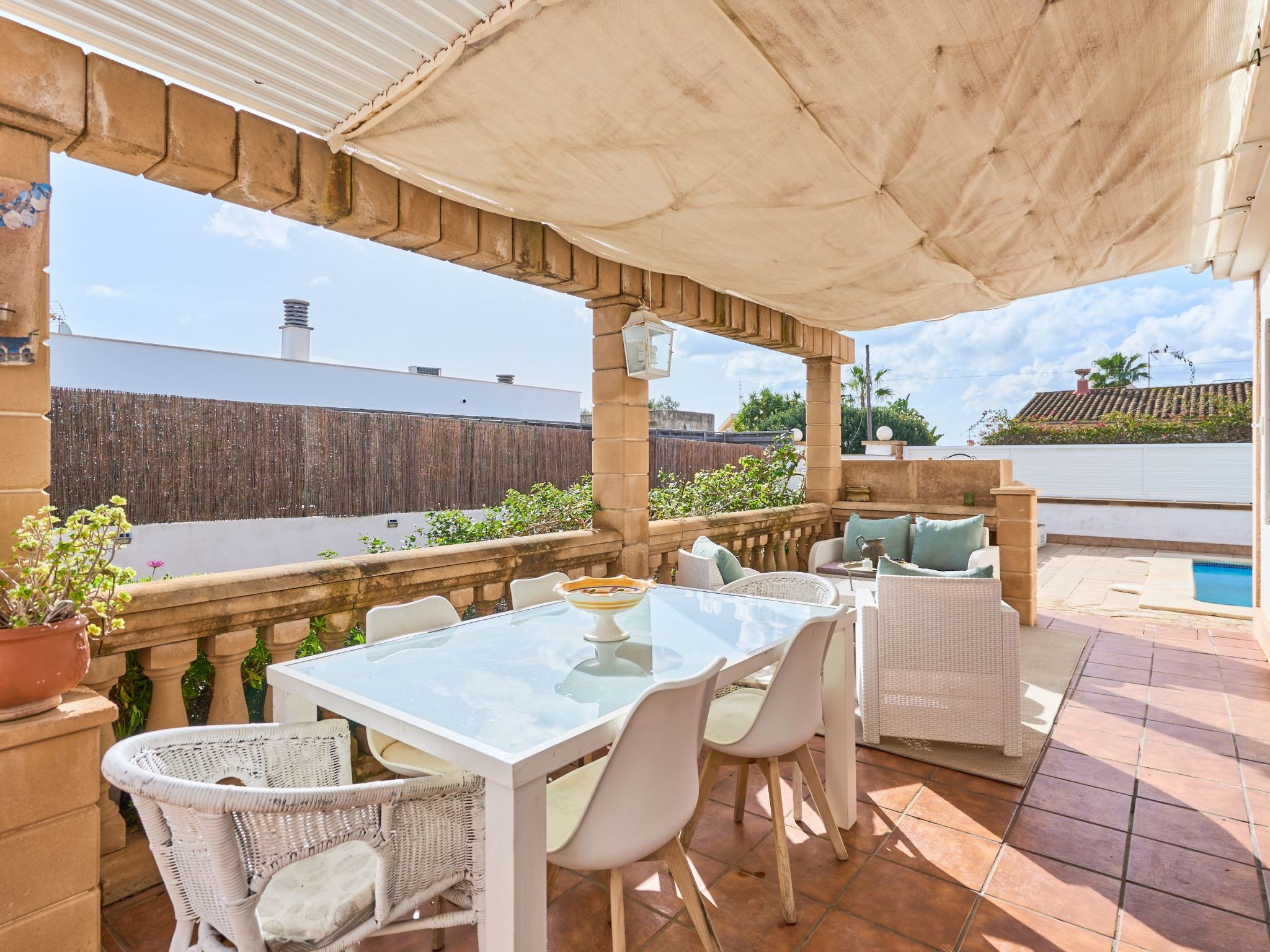 Maison de vacances Martín pour 6 personnes, à louer à Portocolom, Majorque. Elle se trouve au bout d'une impasse dans un quartier résidentiel du paisible village côtier de Porto Colom ; l'un des plus grands ports naturels de Majorque. Porto Colom a encore conservé d'un village de pêcheurs, où l'on peut encore voir des pêcheurs réparer leurs filets sur le quai. On y trouve également des supermarchés, des restaurants, des magasins et de magnifiques criques de sable.