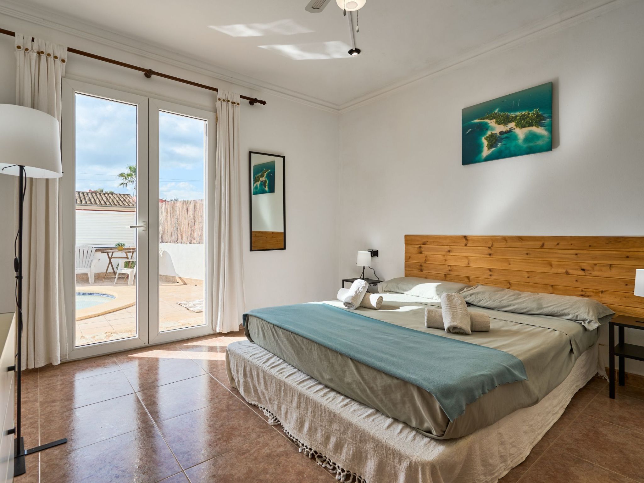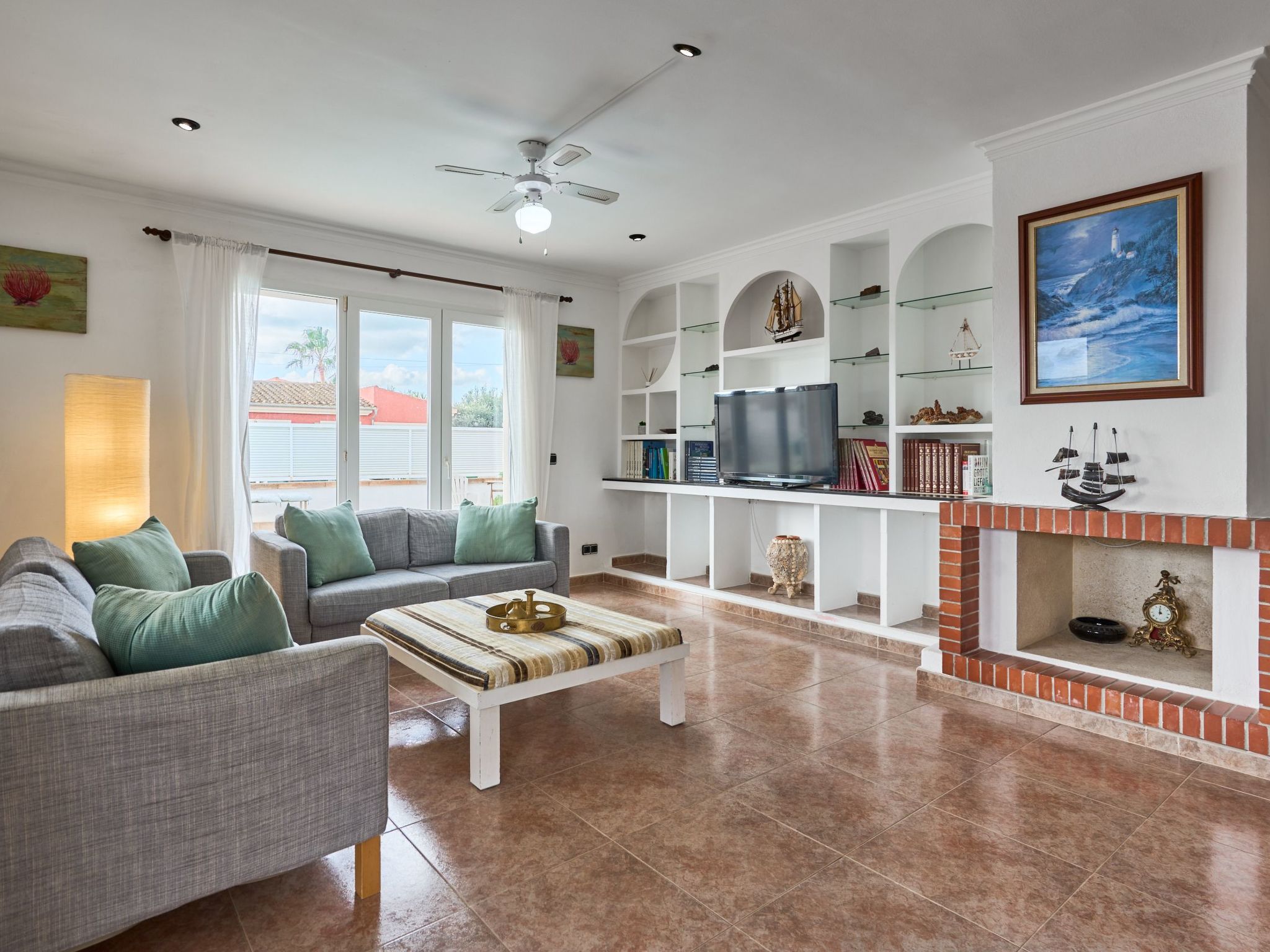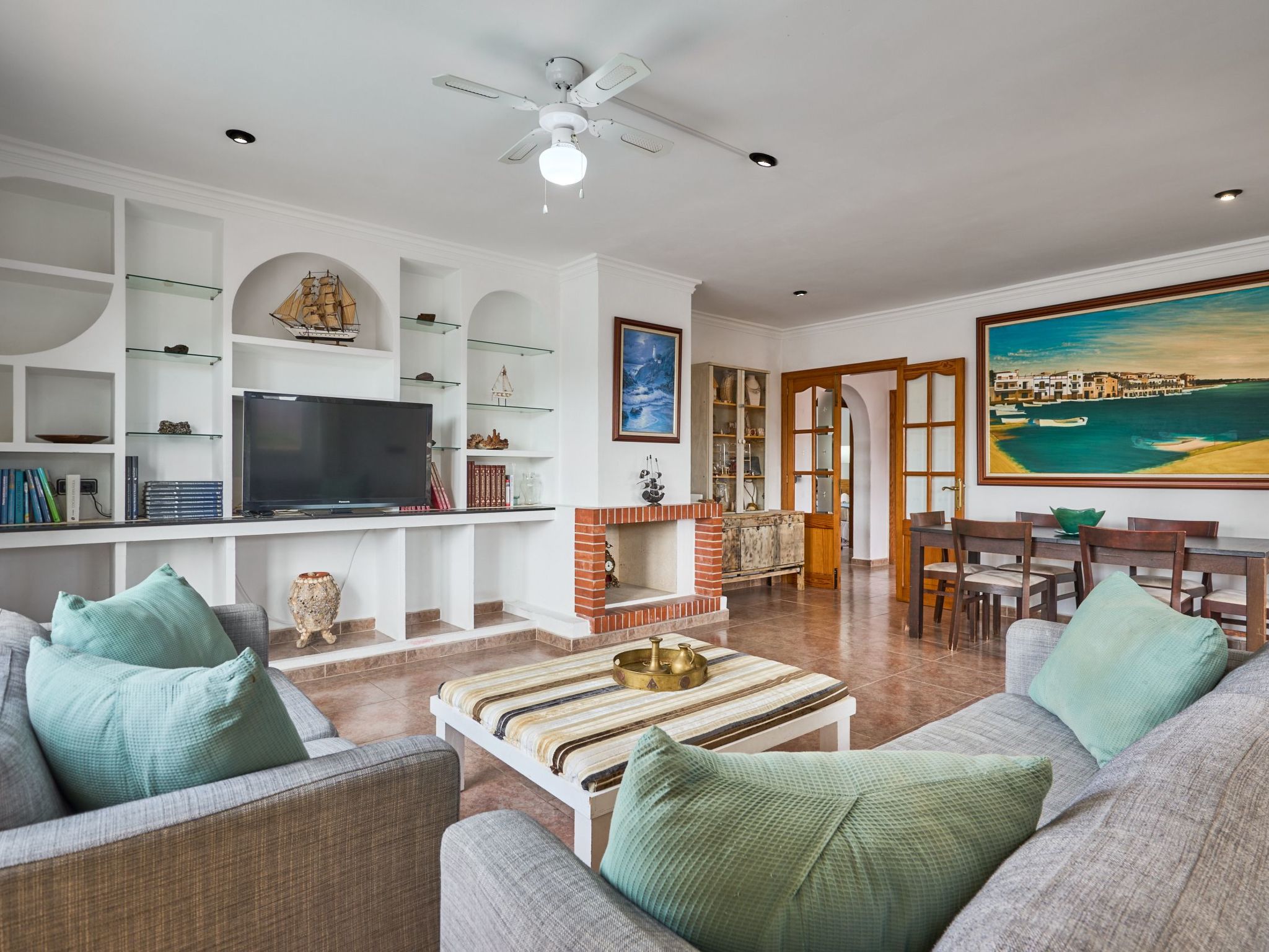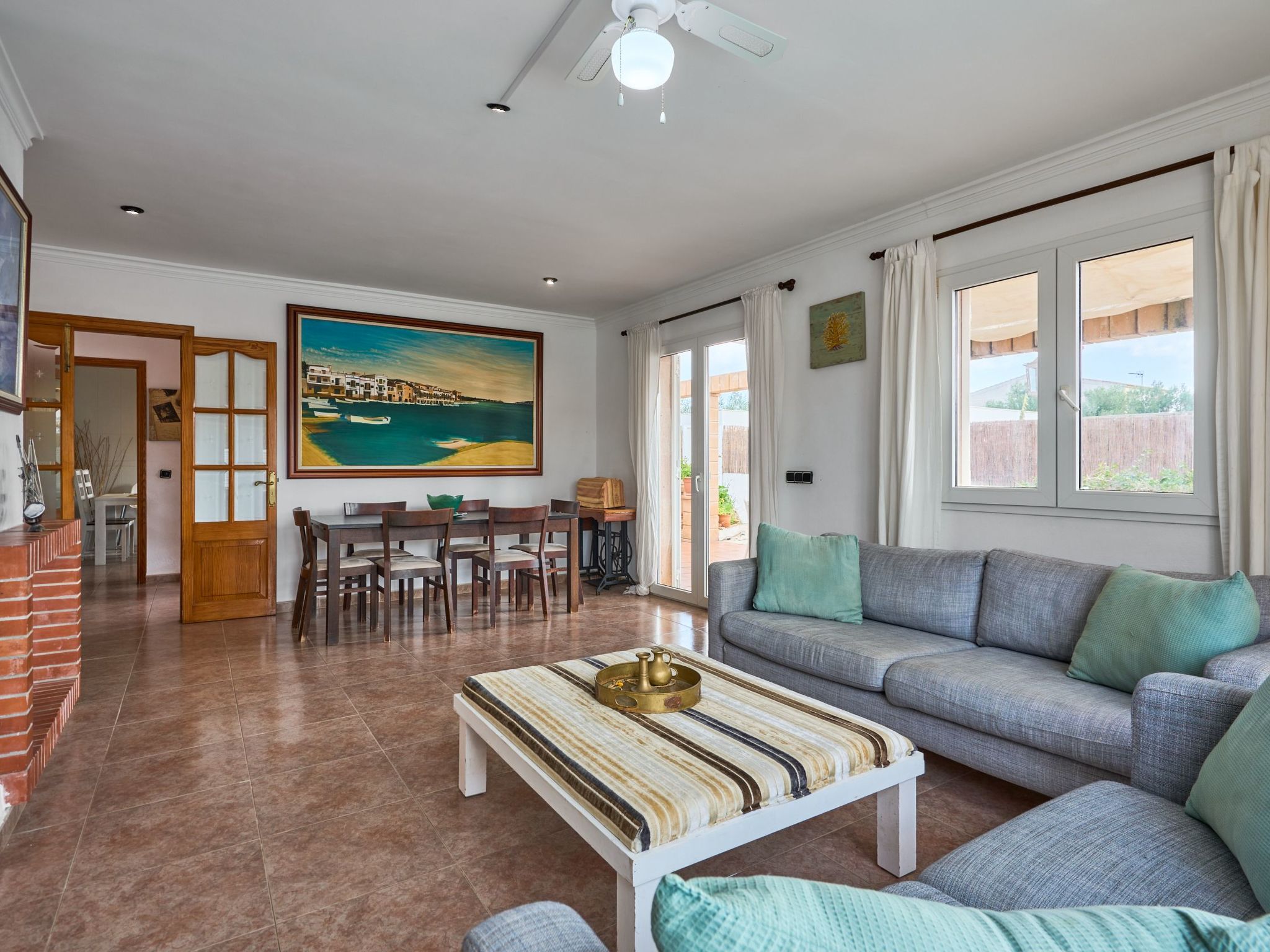 Des ventilateurs de plafond sont installés dans le salon et dans les chambres.