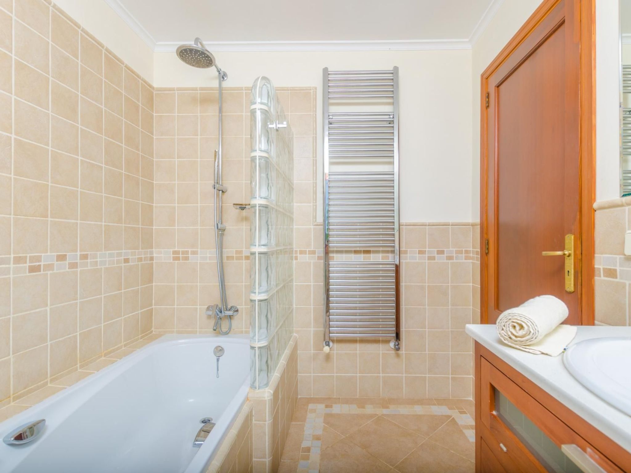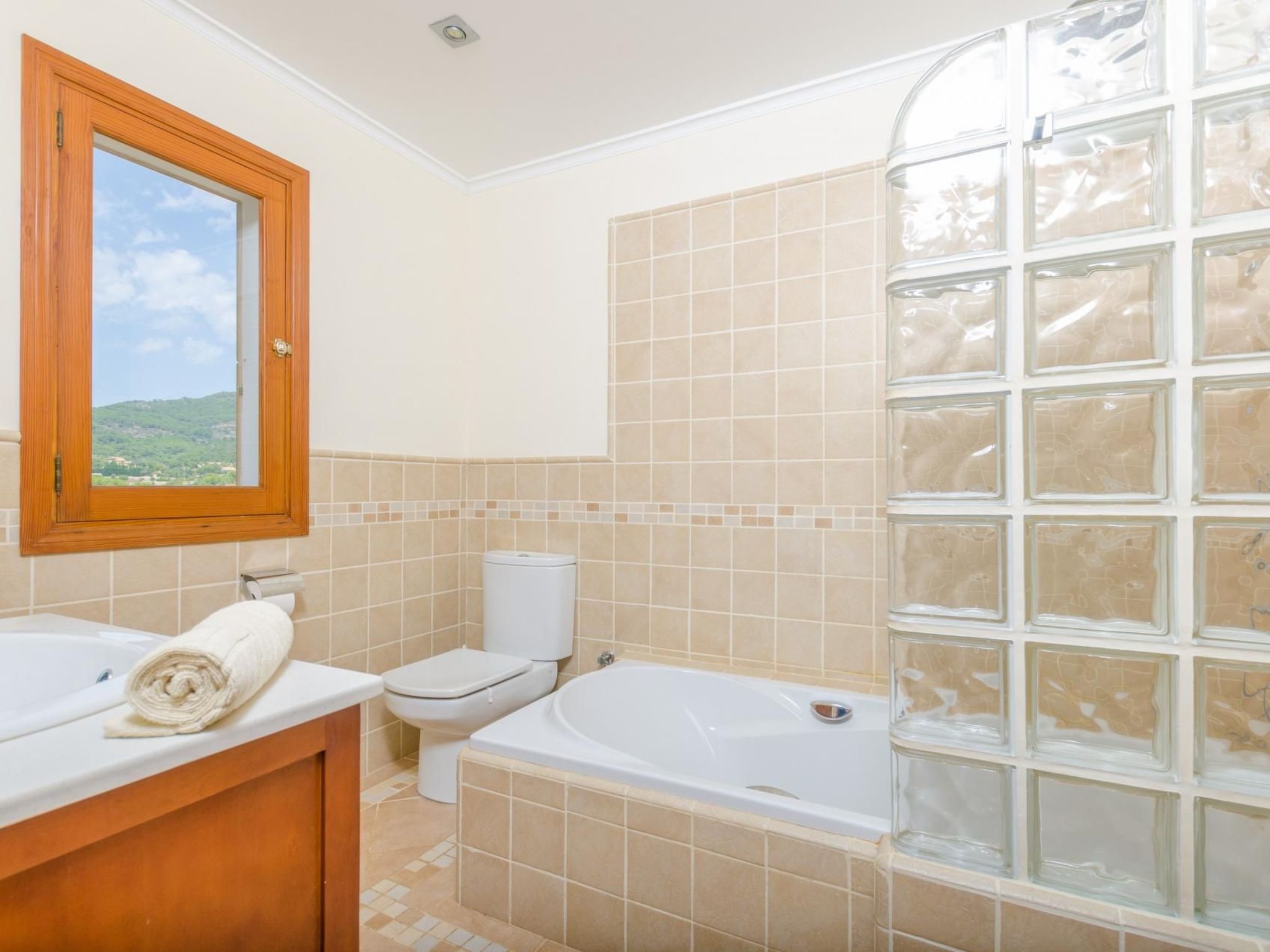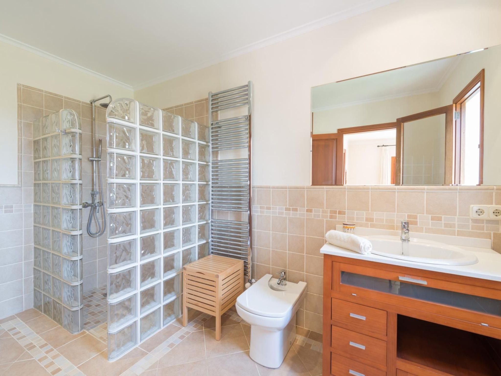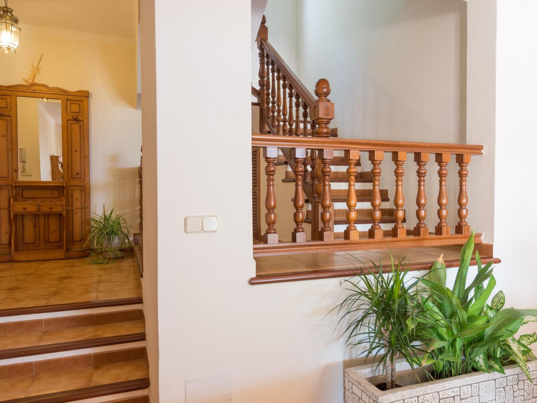 House distributed on 3 levels. On the ground floor is the living room, which is connected to the dining room by an arch and offers access to the covered porch and the pool area. The kitchen also has a door to the outside. A bedroom with double bed and en suite shower room complete the ground floor. Guest toilet. On the floor there are two further bedrooms, each with two single beds and access to a terrace. Both rooms share a bathroom with bathtub. On the lower level there are two bedrooms, each with two single beds, which share a shower room.