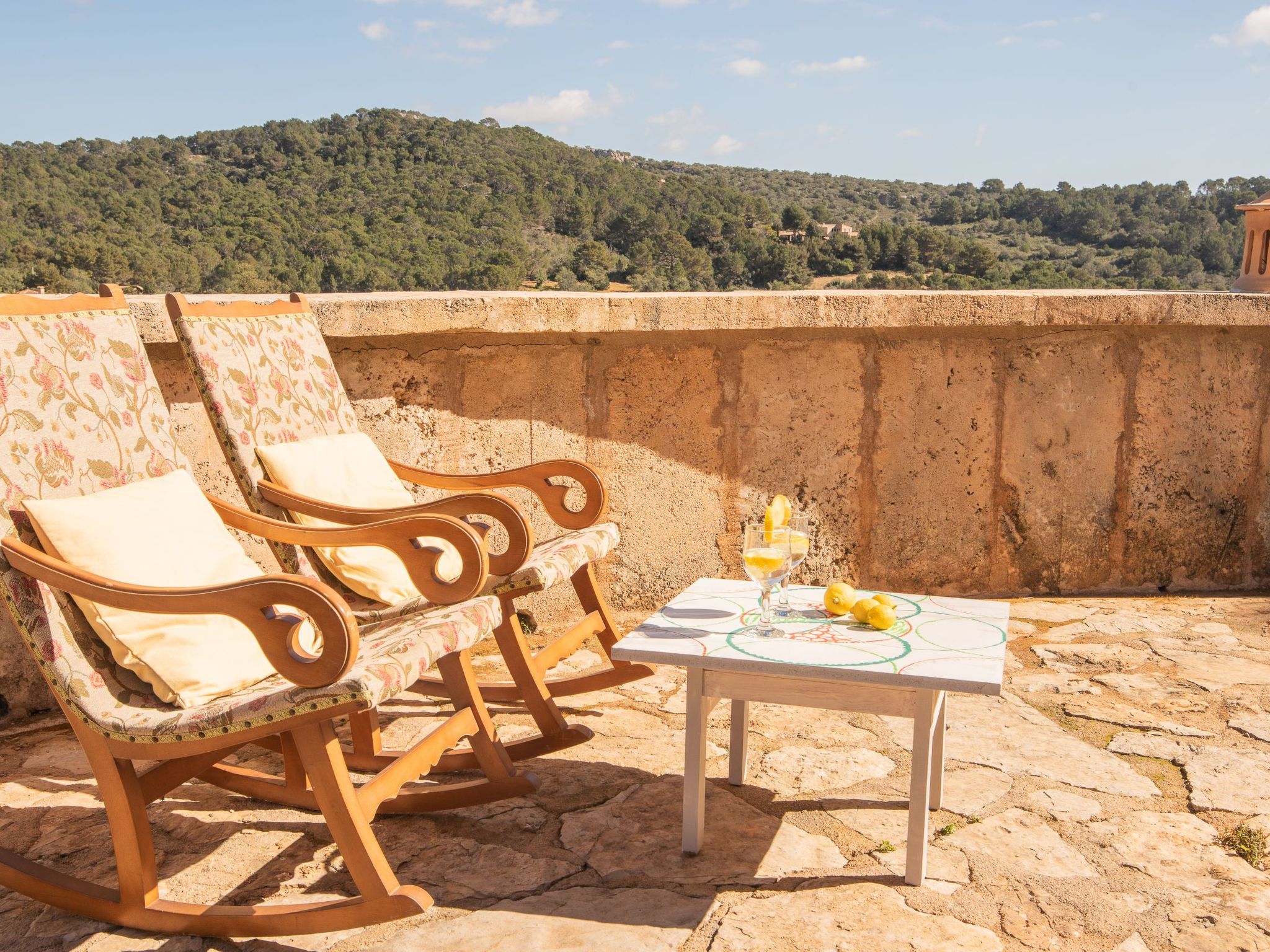 The beautiful natural stone finca Roca is situated on a hill and offers a breathtaking view of the charming landscape. From the front of the house you can enjoy a marvellous view of the coast in the distance. The rear of the house has wonderful uninterrupted views of the interior, with mountains in the background, the monastery of San Salvador and the ruins of Santueri Castle. Roca is only 1.5 km from the village of Es Carritxo and about 10 minutes by car from Felanitx, where you will find small shops, restaurants, cafés, handmade ceramics and a lively weekly market every Sunday morning. A 15 minute drive away is the coast of Cala D'Or with sandy coves, shops, cafés, an endless choice of restaurants and the exclusive marina. Cala D'Or offers various water sports or you can book a trip on a glass bottom boat and discover the beautiful south-east coast of Mallorca from the sea.
