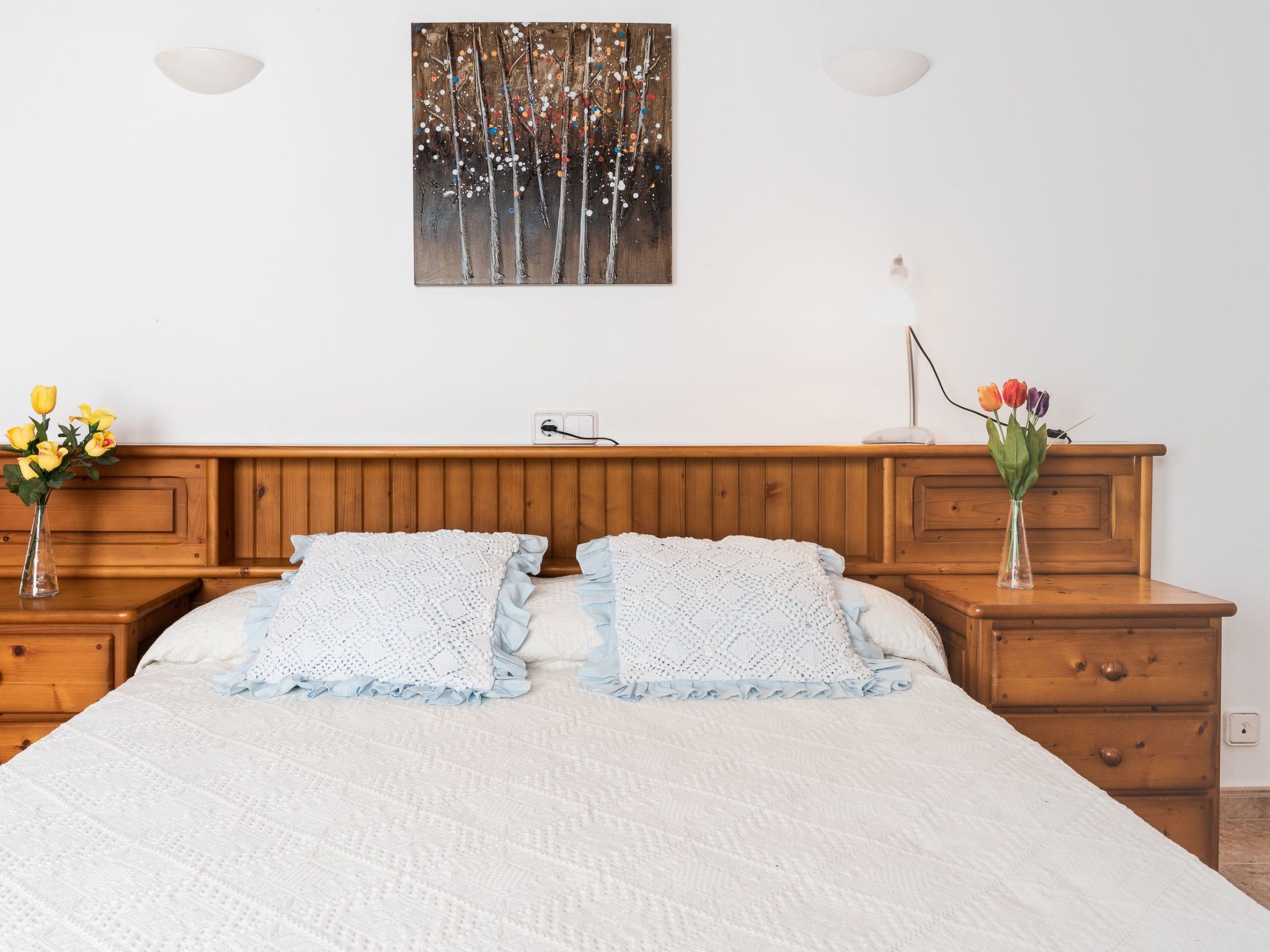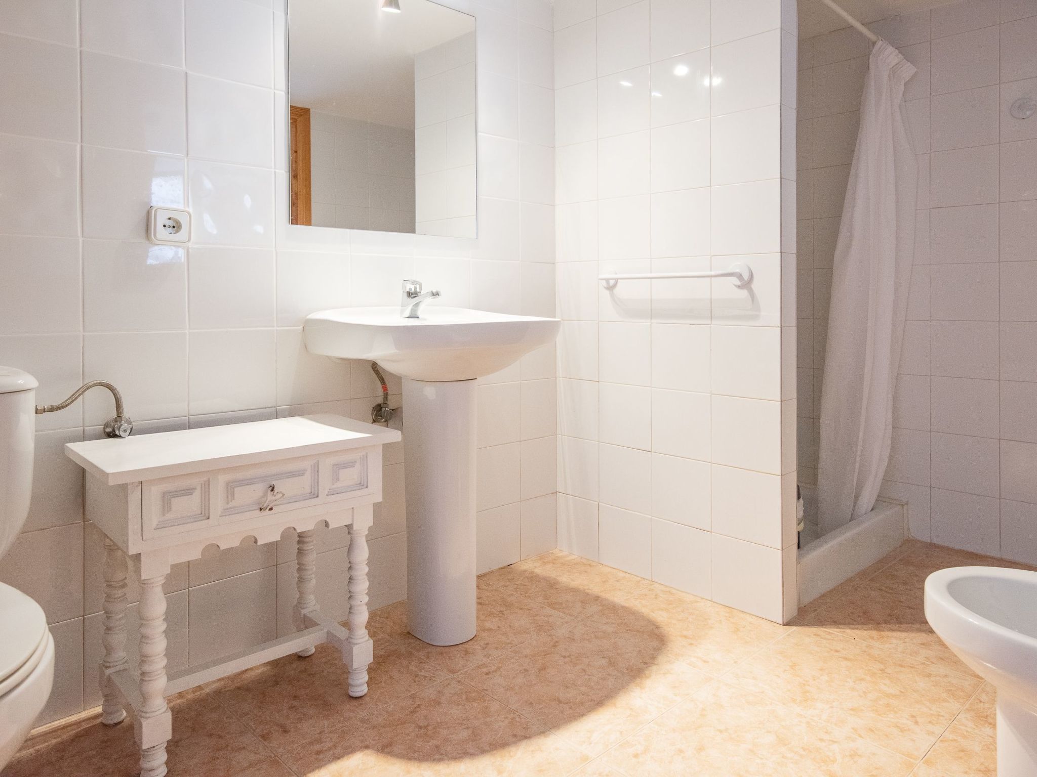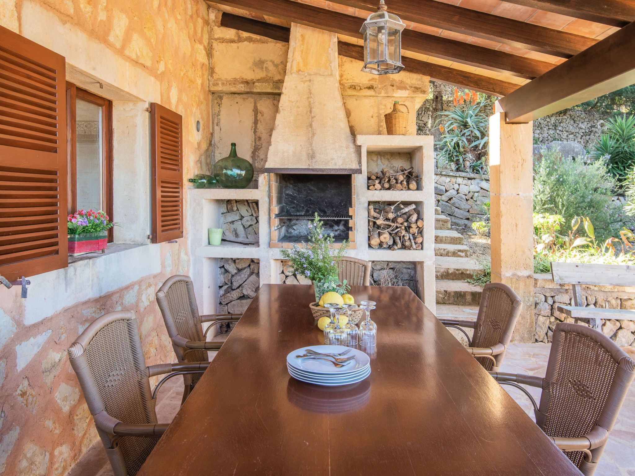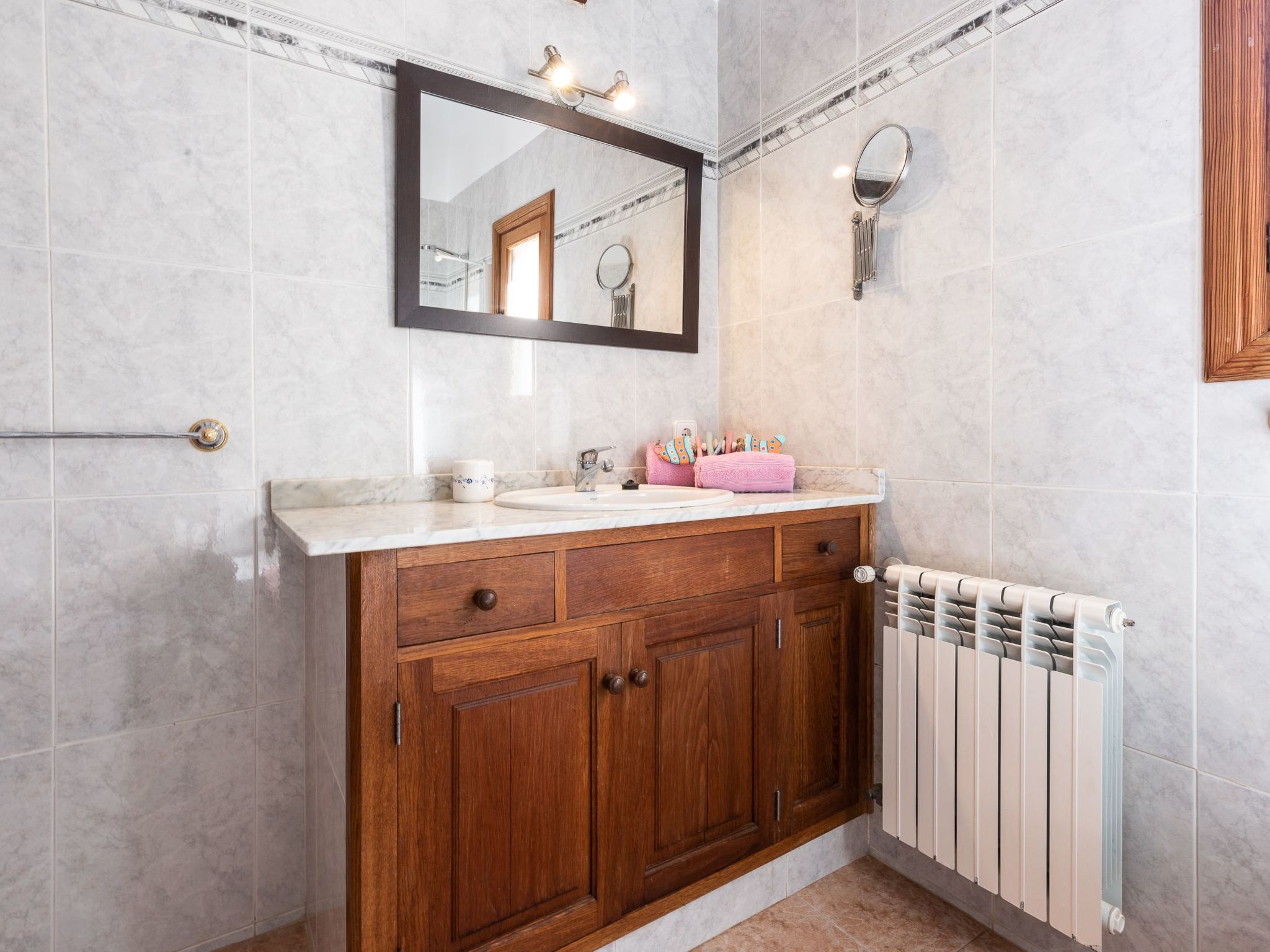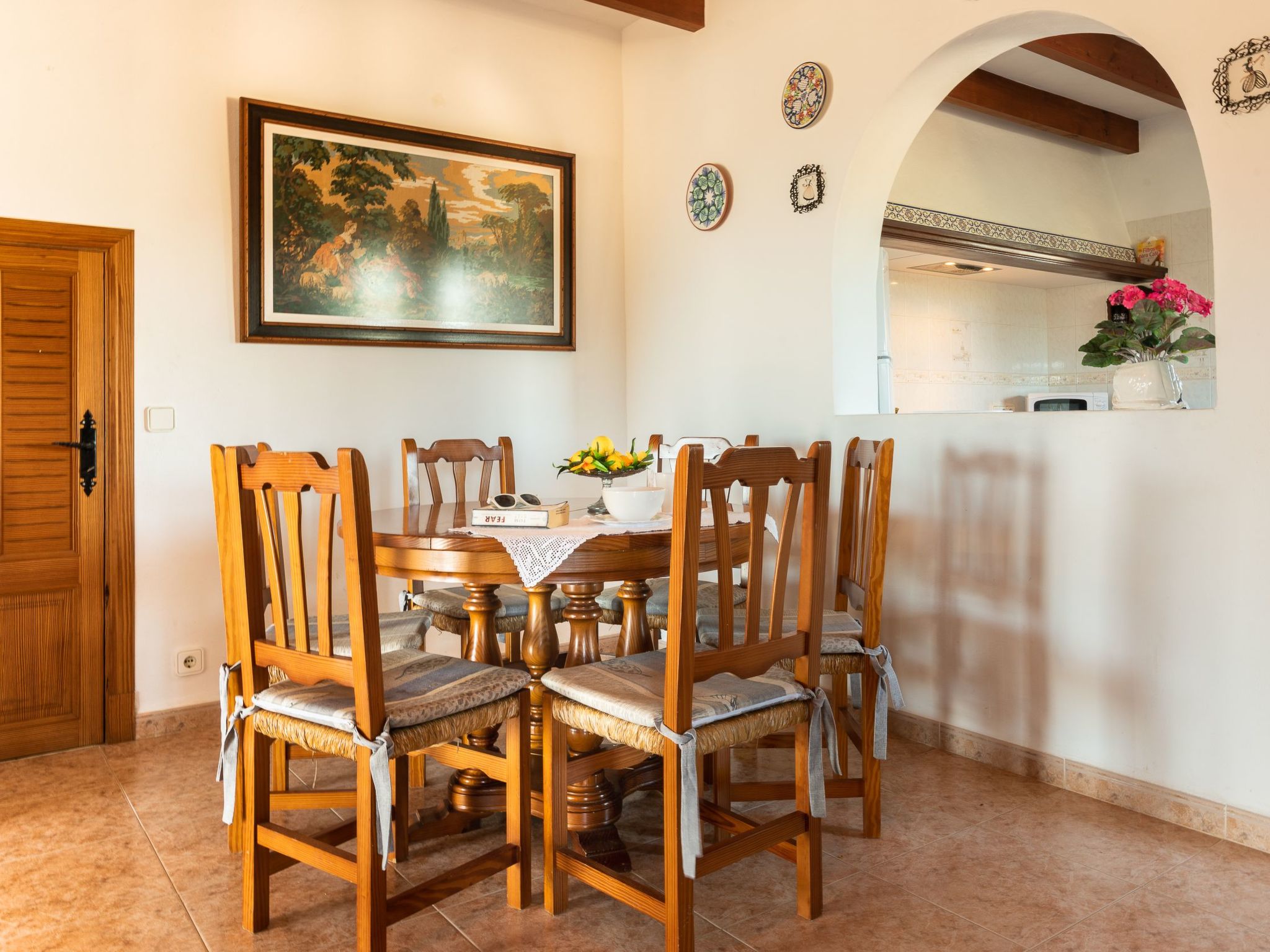 Roca is a beautiful holiday finca with a side tower. The house, whose exterior walls are clad in natural stone, is divided into three levels. On the ground floor there is a hallway with open passageways to 2 dining areas, one with a fireplace, the other with an archway to the spacious kitchen, which is well equipped and has direct access to the covered terrace with dining table. This floor has a shower room and a utility room with washing machine. A staircase leads to the floor, where there are two bedrooms. One bedroom with a single bed with a small, covered terrace with views of the surrounding area and a second bedroom with a double bed and balcony with beautiful views can be found here. These bedrooms share a bathroom. From here a few steps lead up to the middle floor where there is a twin bedroom with a small balcony overlooking the central plain of Mallorca. The lounge is in the tower and has glass doors that give access to the lovely terrace with views of the surrounding area with the coast in the distance. A few steps lead to the top floor where there is a double bedroom, a separate bathroom with shower and a terrace with marvellous views.