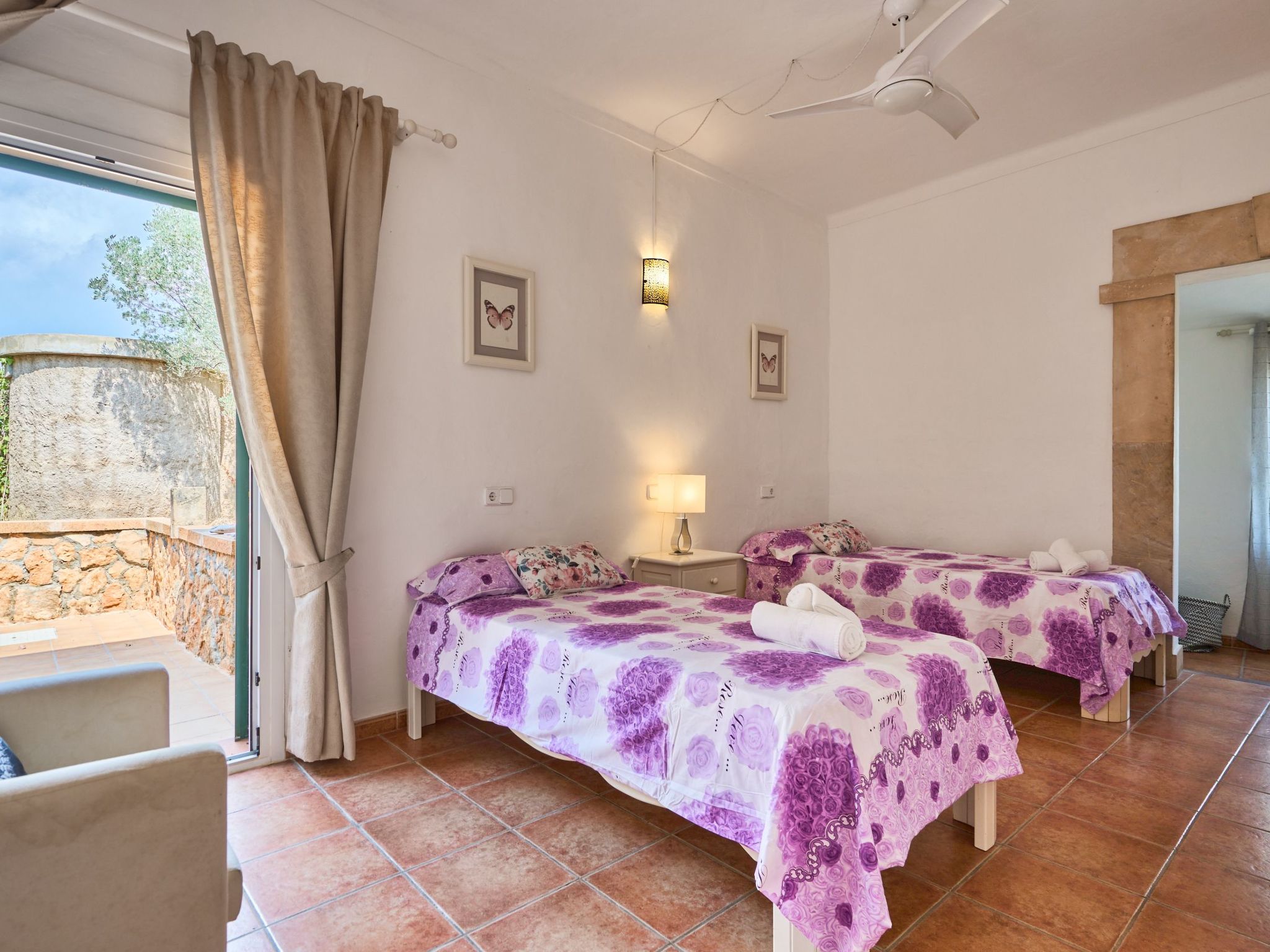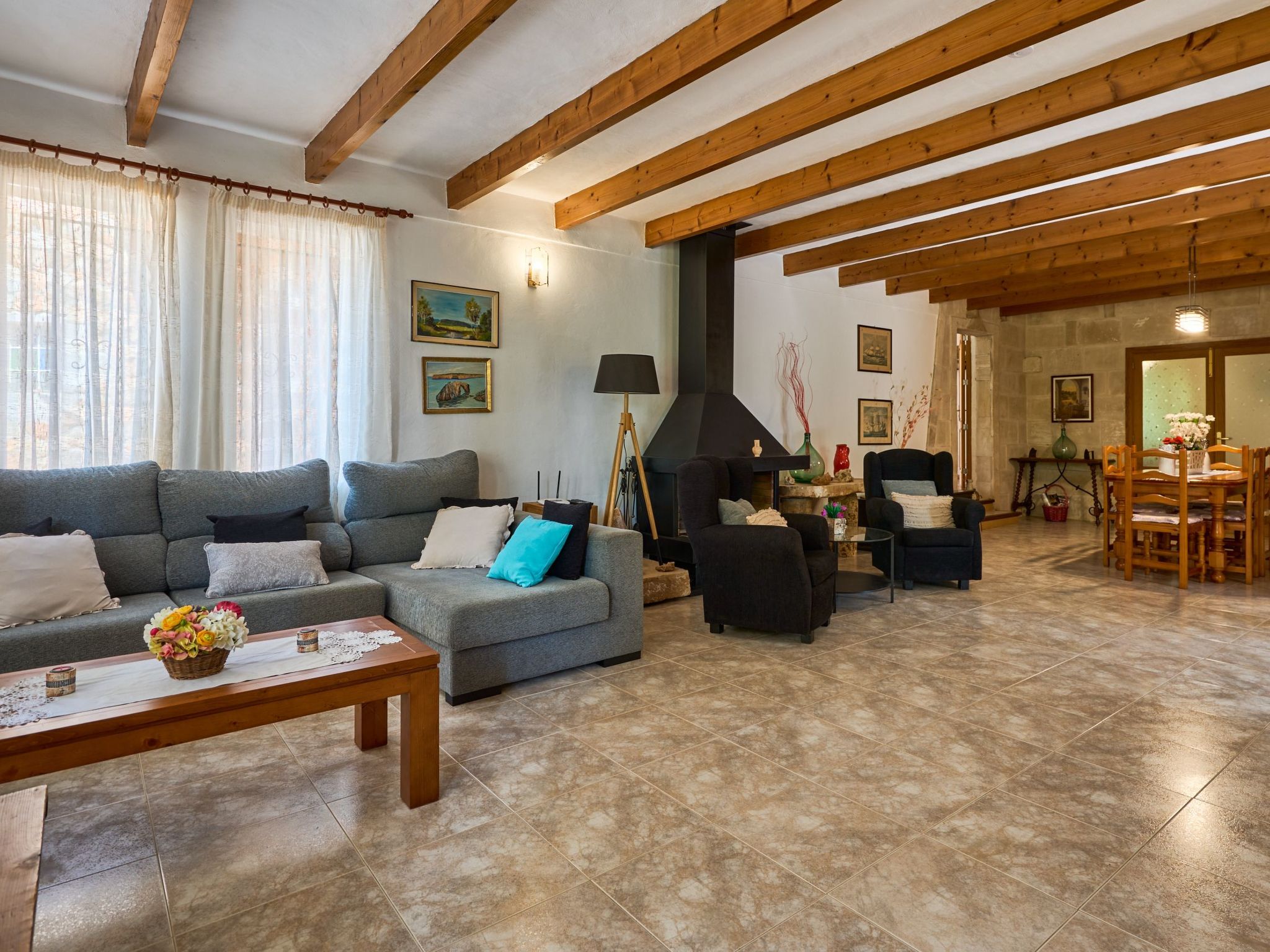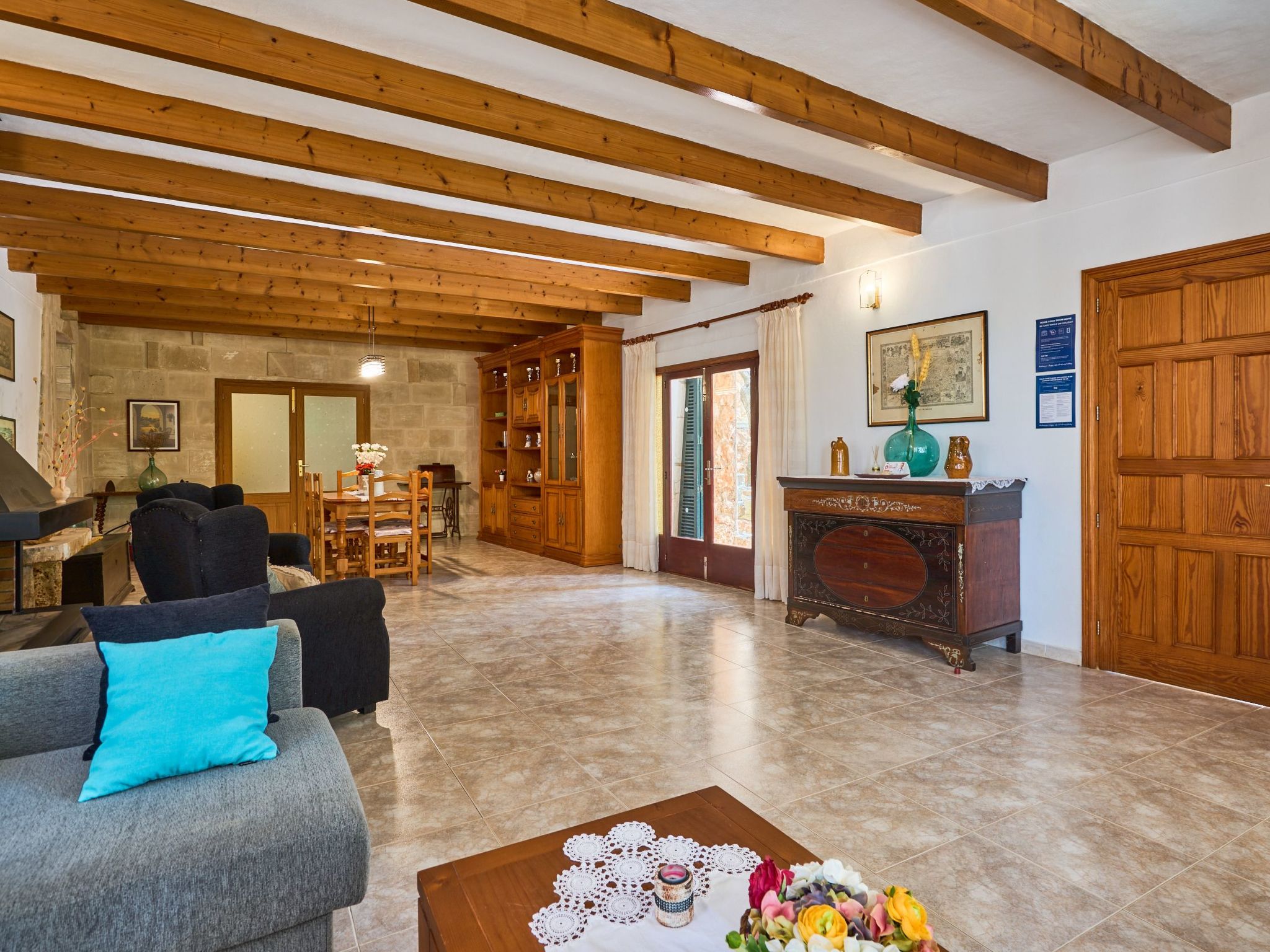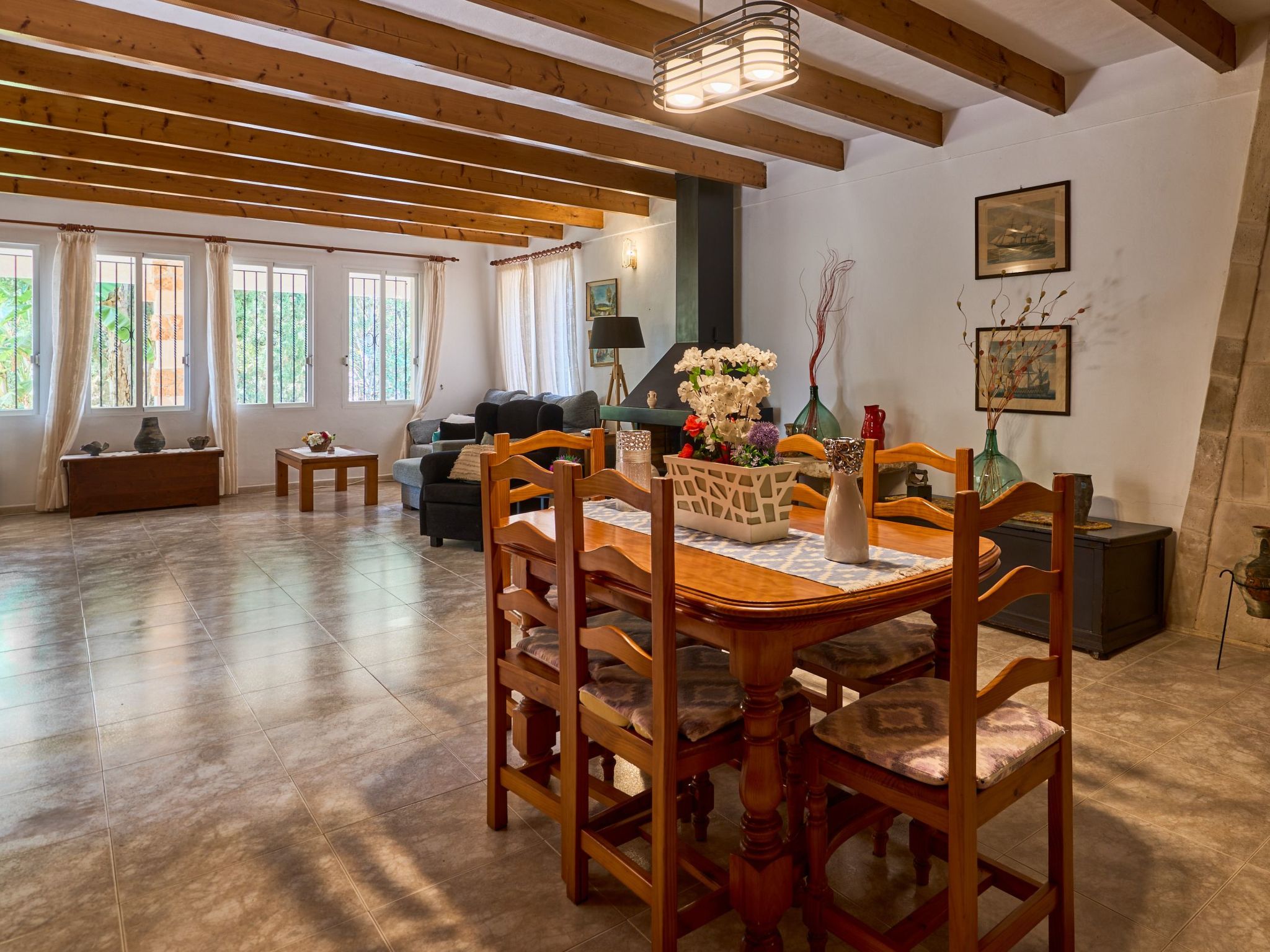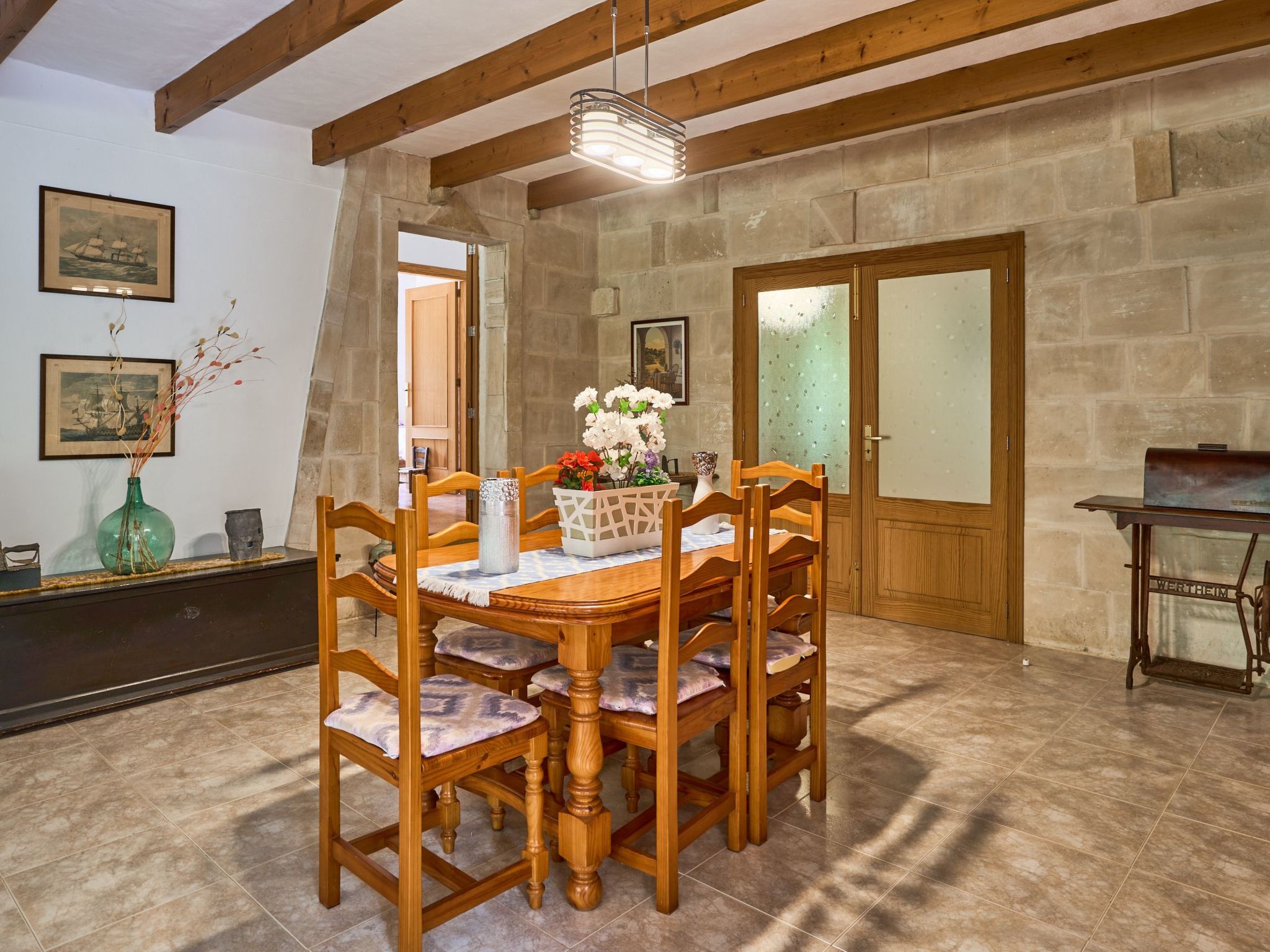 Beautiful single-storey stone finca with large living/dining area and adjoining spacious kitchen in a quiet location in the centre of Portocoloms. The finca offers 5 bedrooms, three with double beds, two with 2 single beds each. Two rooms share a full bathroom. The other three bedrooms each have an en suite shower room.